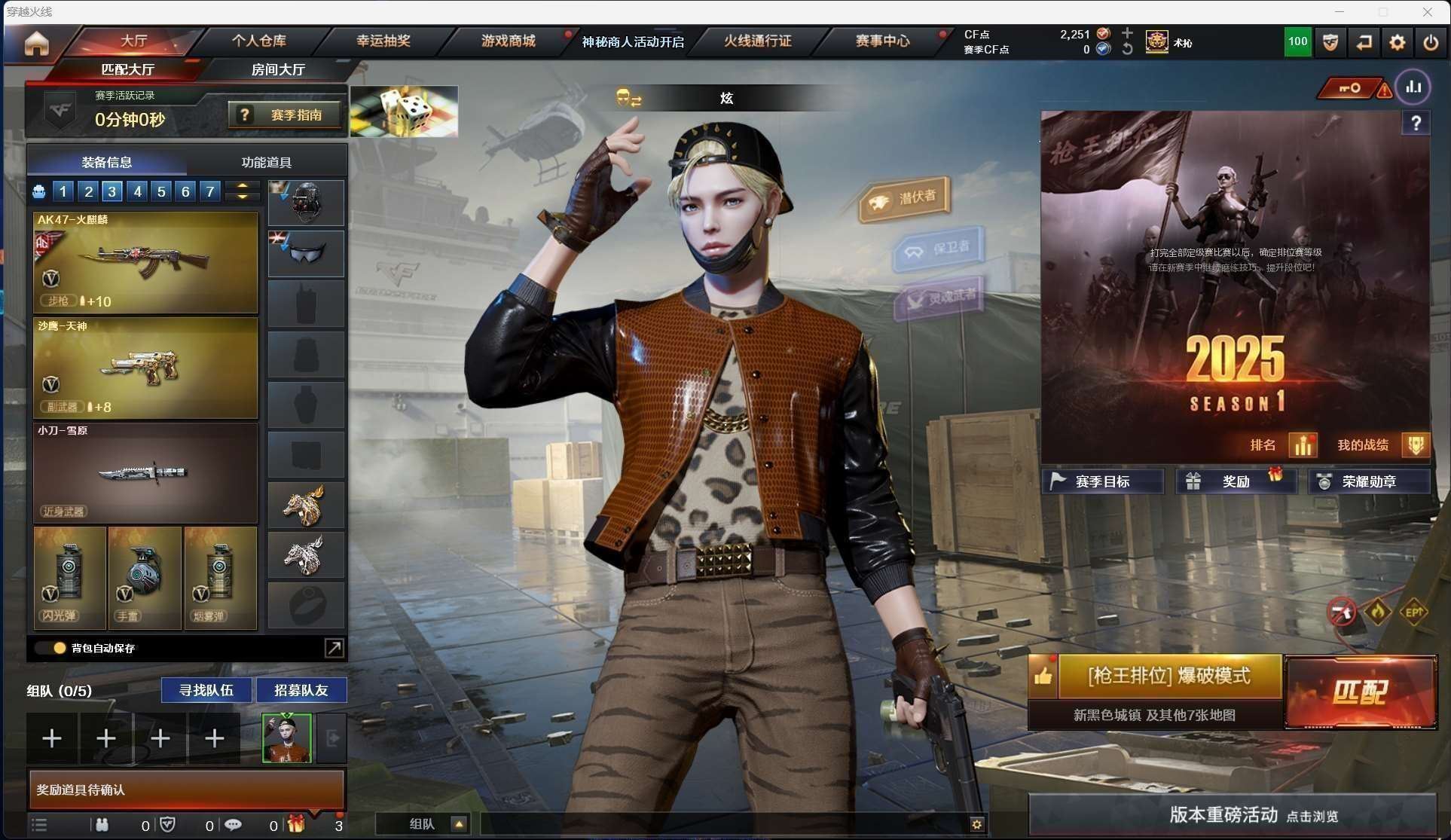 【道具】:CFS限定背包,云山科技背包,超级背包,救世主-黑桃战神,绿色巨人,灵魂忍者*2,变异宝贝,迷雾幽灵*2,生化弹匣,夺命之镰,防化服*2,金色流光-枪王排位,星辰流光-枪王排位,流光-再燃火线,枪王排位28赛季金色流光,语音特效-生化,动感闪耀表情,EP战队名片,EP战队喷图,防弹头盔*2,防弹衣*2,C4工具钳*2,手雷包*2