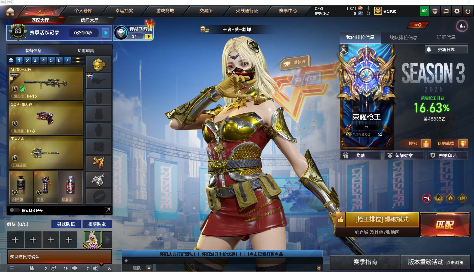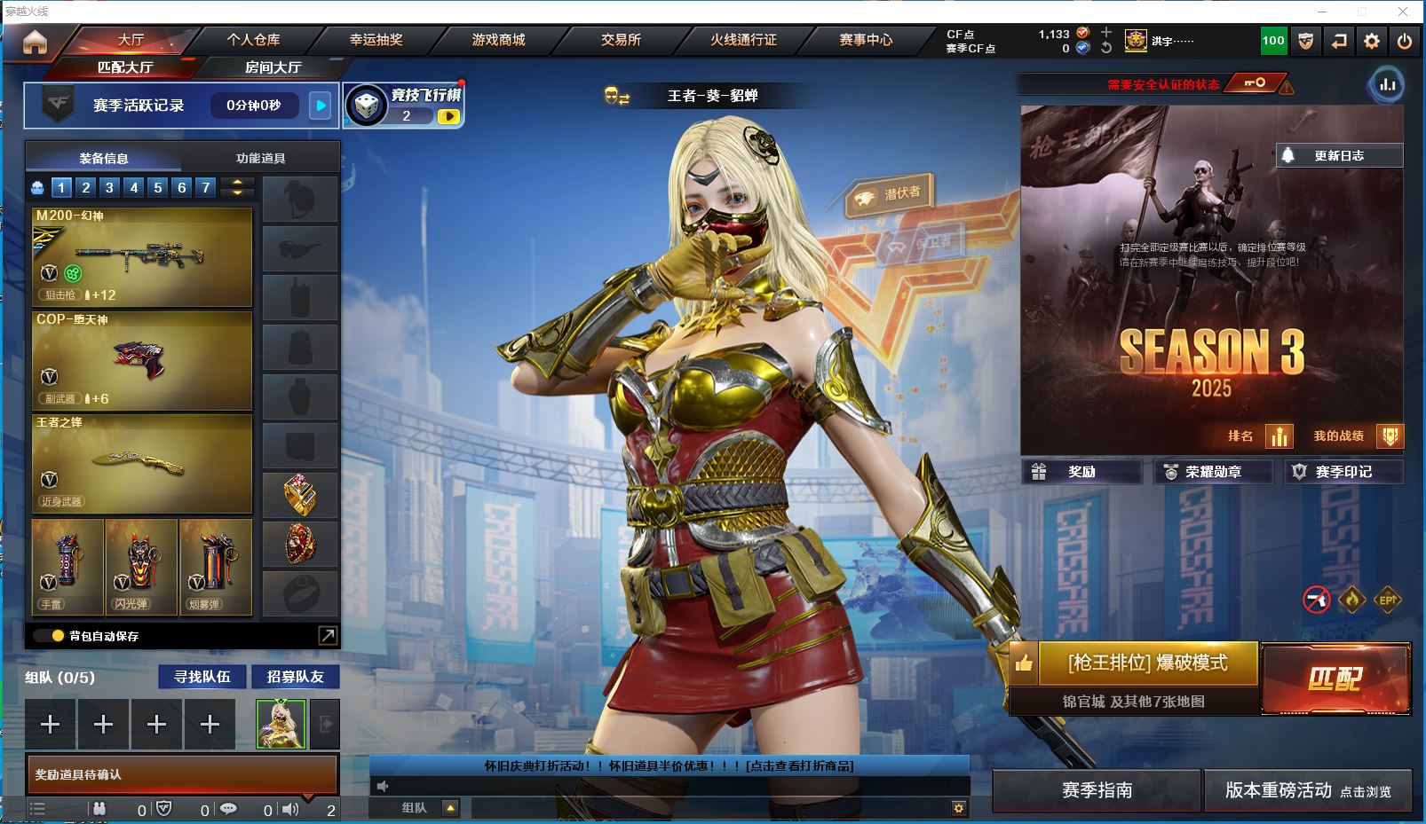 r47109 可二次 安徽一区 可排位VIP【44V】【传说圣灵】【M200-幻神+周瑜皮肤+M200-幻神音效卡】【QBZ03-金色蔷薇】【COP-堕天神/沙鹰-修罗(3)】【麒麟刺-堕天神(2)/龙啸-堕天神/王者之击(2)/斩神刀-雷暴】【QBZ-03-王者蔷薇】【王者涂鸦】【M4A1-雷神音效卡/AK47-火麒麟音效卡/Barrett-毁灭音效卡】【毁灭-星空/天龙-CFSTAR/火麒麟-CFSTAR/AK47-B-常胜将军-刘备/AK47-B-常胜将军-孙权/AK47-B-常胜将军-曹操/M4A1-千变-孔明皮肤/雷神-耀金皮肤/雷神-星空/黑龙-能量核心】【Barrett-毁灭/Barrett-暗月传说(2)/M4A1-雷神/M4A1-黑龙/黑骑士-海王/AK47-火麒麟/AK47-B-身先士卒/AK47-B-常胜将军/AK47-B-战士/9A91-烈火】《永久ac 永久工具钳 永久手雷包》各种道具详情看截图、低价出售找回包 赔、截图展示段位不带表实际段位,如赛季更新等不可抗拒因素发生变化、时限道具不保证所剩时间、标题未写送点券默认不送【卖号买号首选亿梦】