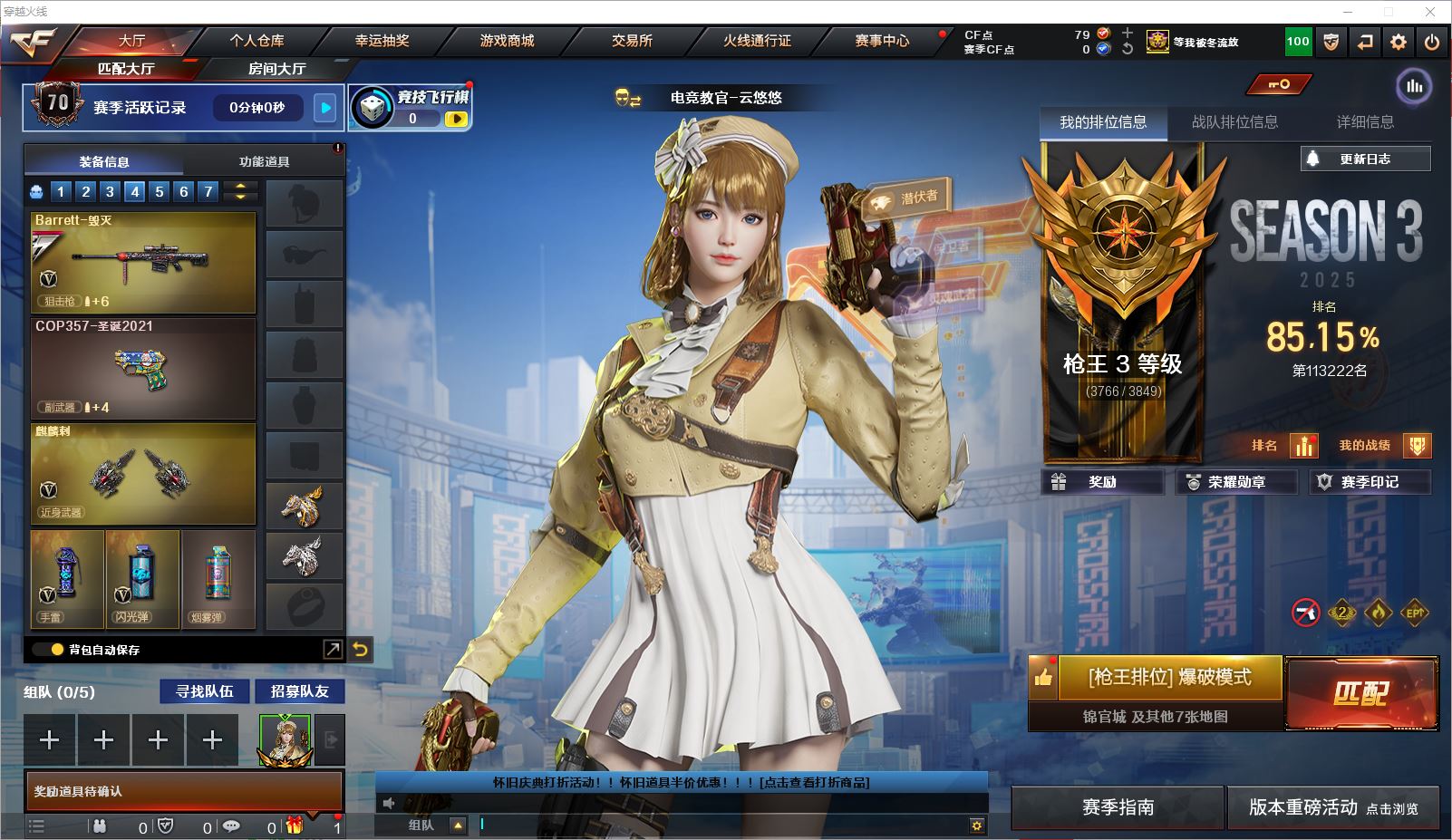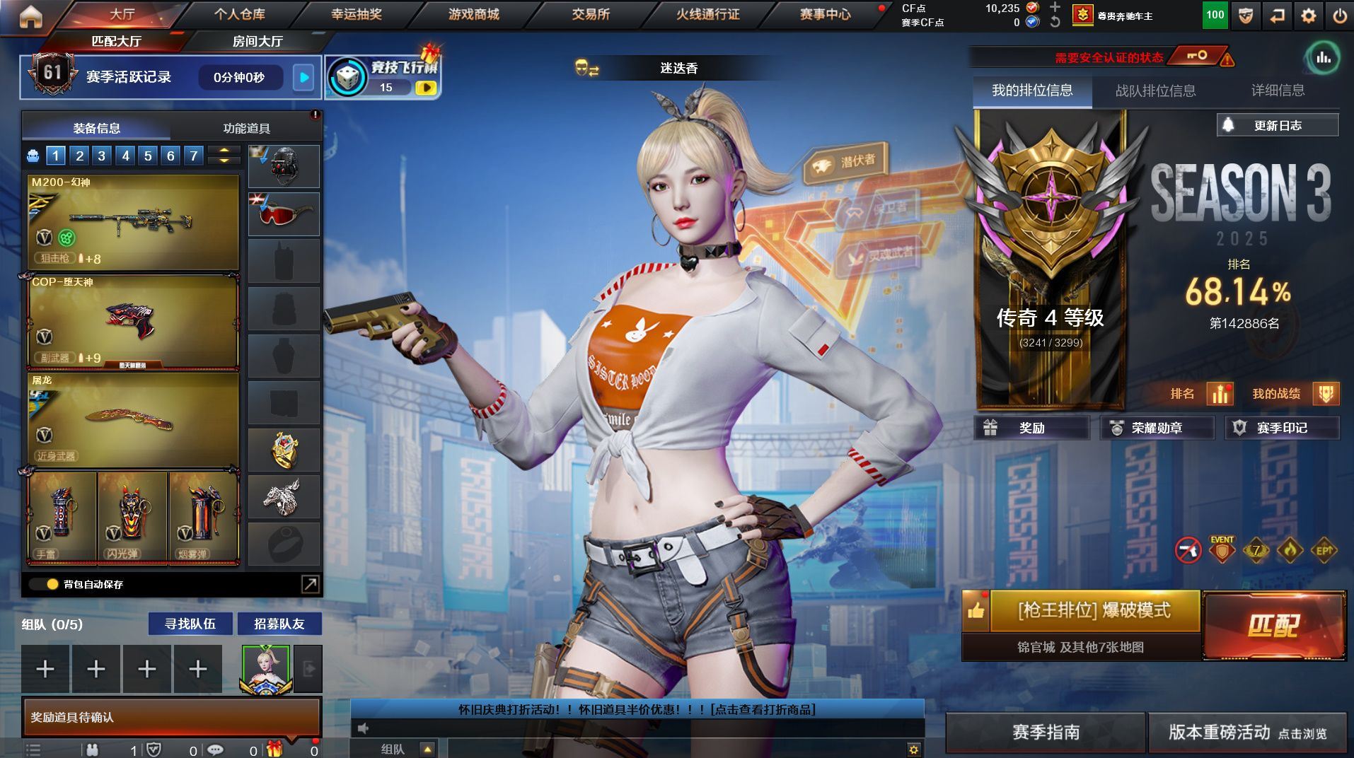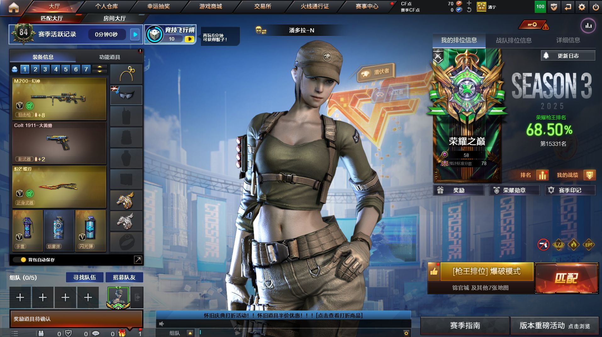 r46832 可二次 浙江一区 可排位【VIP5】【60V】【传说幽瞳】【传说辉光】【M200 - 幻神 + 幻神 - 电流骇客皮肤 + 幻神 - AG-CFPL S24 冠军皮肤】【AWM - 裁决 + 裁决 - 叶芒苍灵皮肤 + 裁决 - 流光秘银 + AWM - 裁决音效卡】【USP - 冥王 (2)】【QBZ03 - 金色蔷薇 + 金色蔷薇 - 量子蔷薇皮肤 + QBZ03 - 金色蔷薇音效卡】【VSK-94 - 金蚀】【M4A1 - 雷神 (2)+ 雷神 - 源计划 2.0 专属皮肤 + 雷神 - 白鲨皮肤 + 雷神 - 杨戬 + 雷神 - HeartShot 皮肤】【AK47 - 火麒麟 + 荣耀世冠 - 火麒麟 + 火麒麟 - CFSTAR + 火麒麟 - 枪娘凯特琳 + 火麒麟 - 盘古】【Barrett - 毁灭】【M4A1 - 黑骑士 + 黑骑士 - 电玩青兔皮肤 + M4A1 - 黑骑士音效卡】【电竞教官 - 云悠悠 / 枪娘樱 / 战地猎狐 / 玄豹 / 王者涂鸦 / 雪域霜狐 / 疾风 / 精英部队 - X / 夜玫瑰 - N / 幽】【Barrett - 暗月传说 / 王者火魄 - 觉醒版 / SCAR Light - 玄豹 / FAMAS G2 - 天戎 / QBZ03 - 独角 - III / 沙鹰 - 天神 (2)/ 擎天 (2)/ 擎天 - 竞技荣光 / Anaconda - 玄豹 / 丛林匕首 - 玄豹 (5)】【KAC 锯式机枪 - 黑桃战神】【AWM - 天龙 - CFSTAR】【Scar Light - 白虎 - 暗星】【沙鹰 - 修罗 - CFSTAR】【沙鹰 - 天神 - 春花弄影皮肤】【死神 - 雪域霜狐 - 怀旧音效卡】各种道具详情看截图、低价出售找回包 赔、截图展示段位不代 表实际段位,如赛季更新等不可抗拒因素发生变化、时限道具不保证所剩时间、标题未写送点劵默认不送【卖号买号首选亿梦】