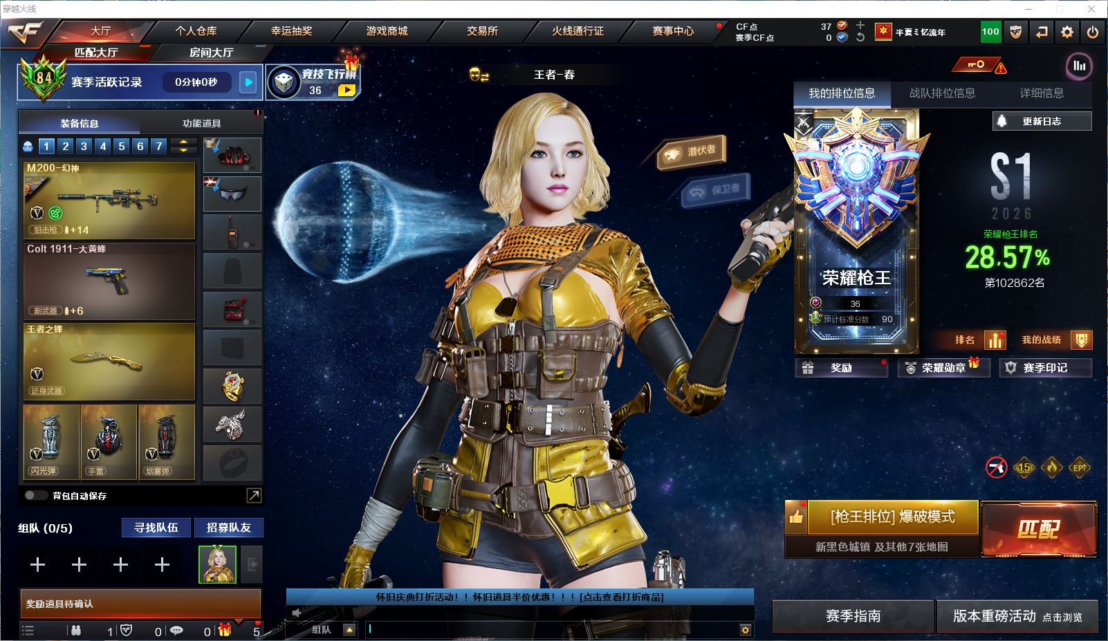 黑龙江区41V-6王者武器数-1炫金武器数