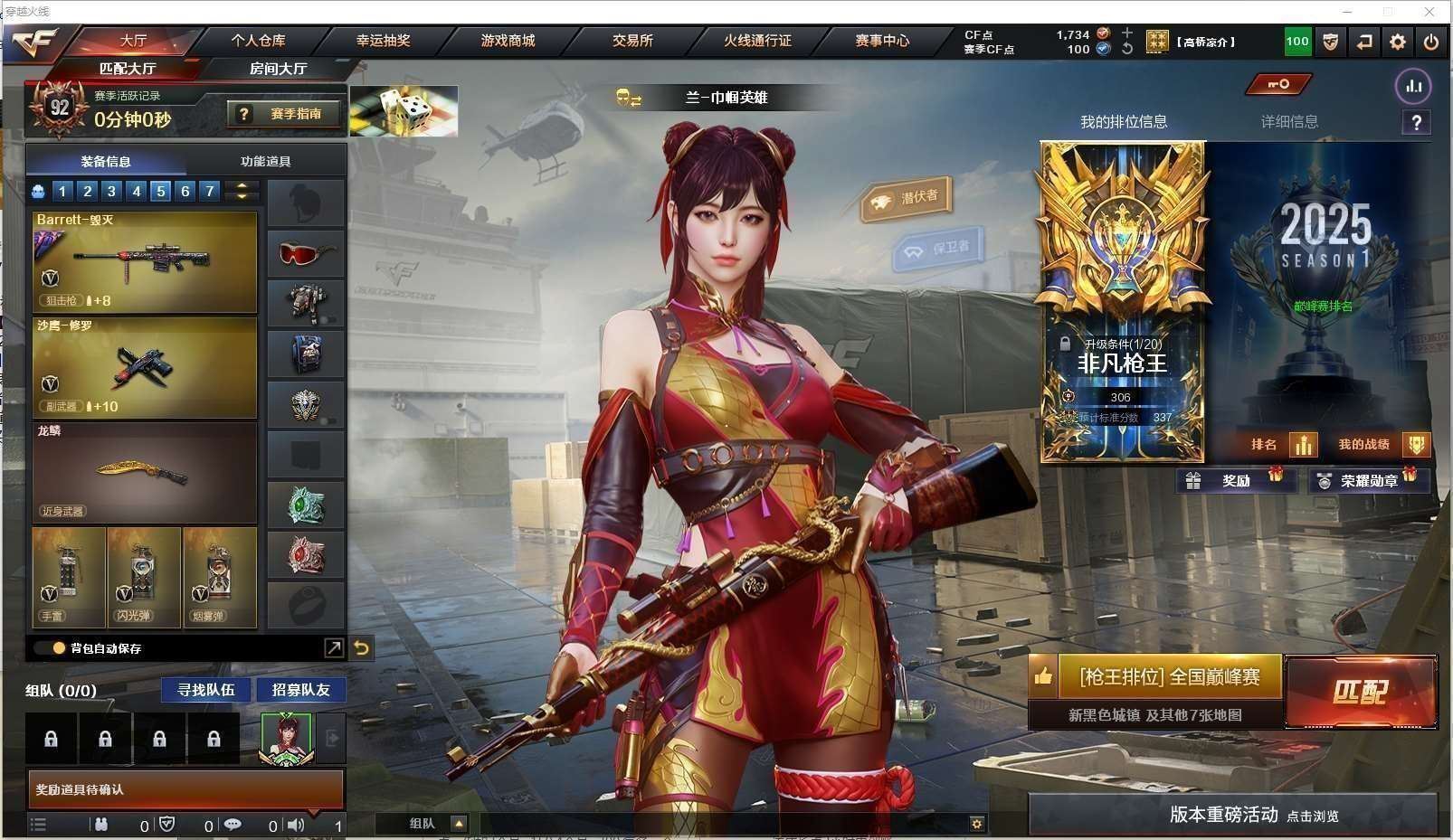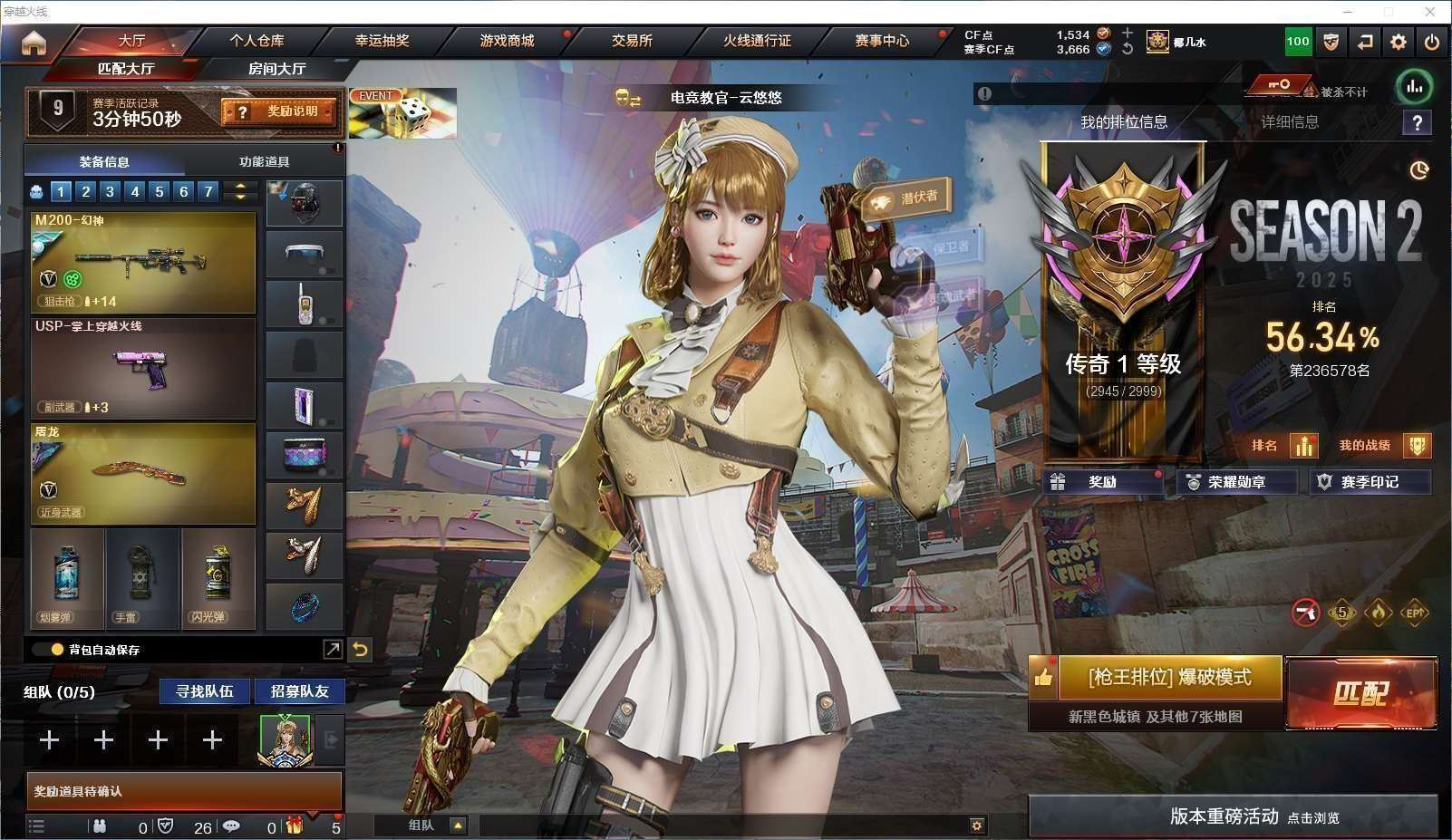 湖南一区62v【m200幻神+黄忠皮肤+usp雷暴】【m200竞技荣光套装+电竞教官云悠悠】【王者星神】【传说光耀 传说暗裔】【白虎+霓虹机甲皮肤】【qbz03金色蔷薇+金色蔷薇音效卡+qbz03王者蔷薇】【荣耀世冠雷神】【火麒麟+火麒麟音效卡+荣耀世冠ag皮肤】【雷神+雷神音效卡+宠儿皮肤+荣耀之魄皮肤】【毀灭+毁灭音效卡+呛娘皮肤】【王者雷怒 王者之决 王者之心】【黑鲨 机械迷城 黑龙 青龙 千变 黑武士黑武士锦绣游龙 烈龙*2 】——【热门武器/小人呛】【cat刀锋】--【usp雷暴 柯尔特竞技荣光 天神】——【幻灵之锋 龙啸 龙啸烈火龙威 麒麟刺 擎天 擎天竞技荣光 荣耀世冠龙啸 雷霆王者之锋】——【竞技荣光投掷武器套装*2+雷霆王者投掷武器套装】——【角色】【4防(鹰 王者潘多拉)】【电竞教官云悠悠 零 王者瞳闭月羞花】【截图展示段位不代表实际段位,如赛季更新等不可抗拒因素发生变化、时限道具不保证所剩时间、标题未写送cf点默认不送】更多武器角色道具详情看图 ⭐️买号看《无忧》 售后放心无忧⭐️