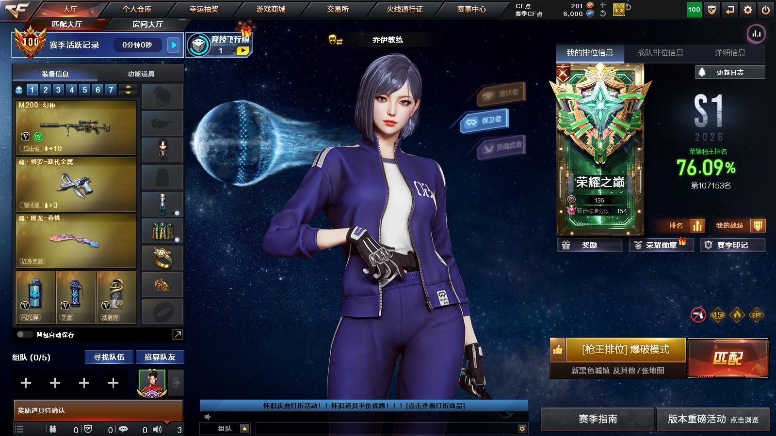 【角色】:迅捷虹喵,零·纪元,不败狙神,王者玲珑,乔伊教练,葵-阿尔法武装,幻面灵狐,斗烈龙骑,初恋灵狐,娟娟,卡塔琳娜,麻雀,潘多拉-甜心教官,青霞仙子,团团