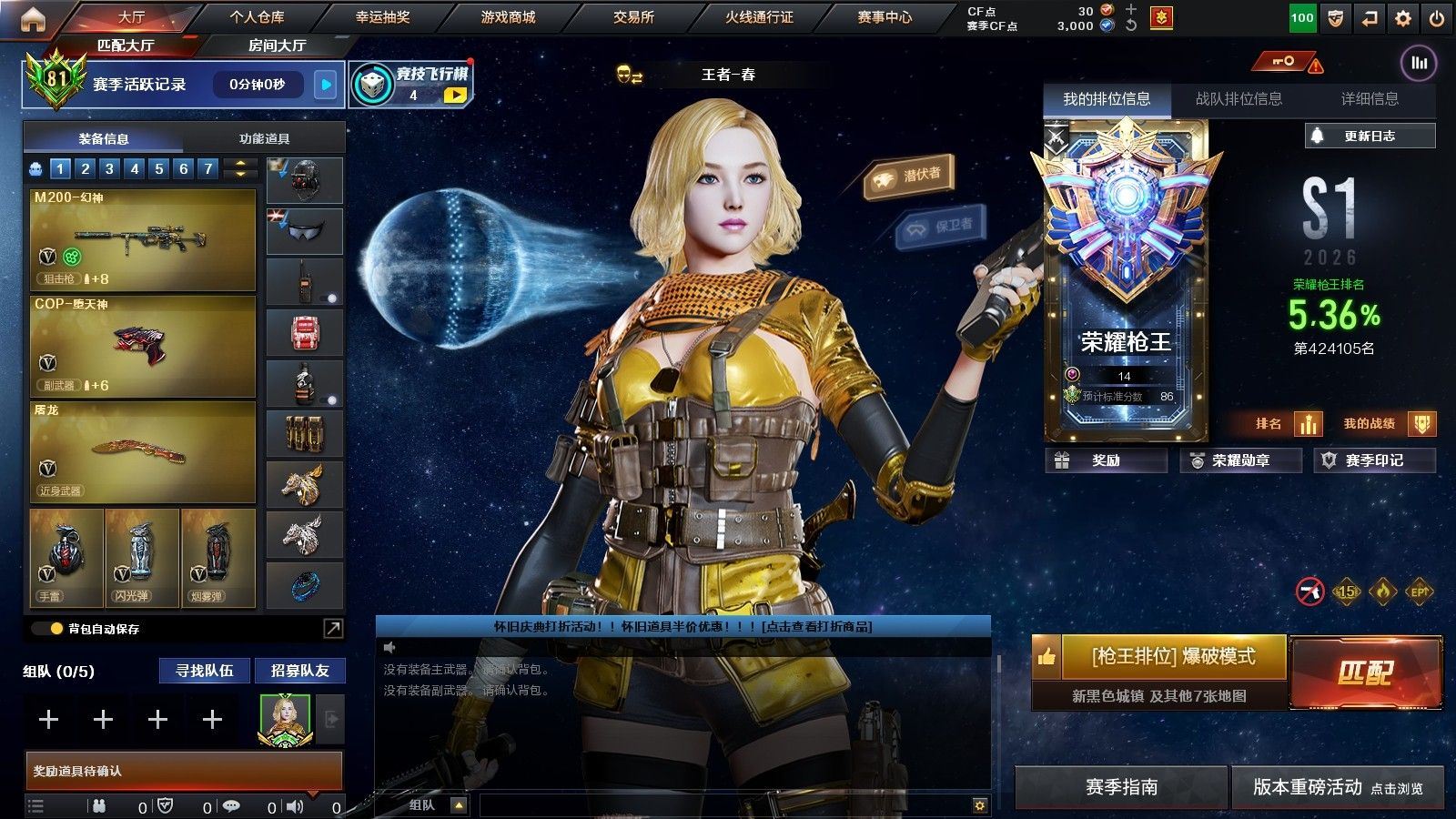 河南一区27V-2王者武器数-0炫金武器数