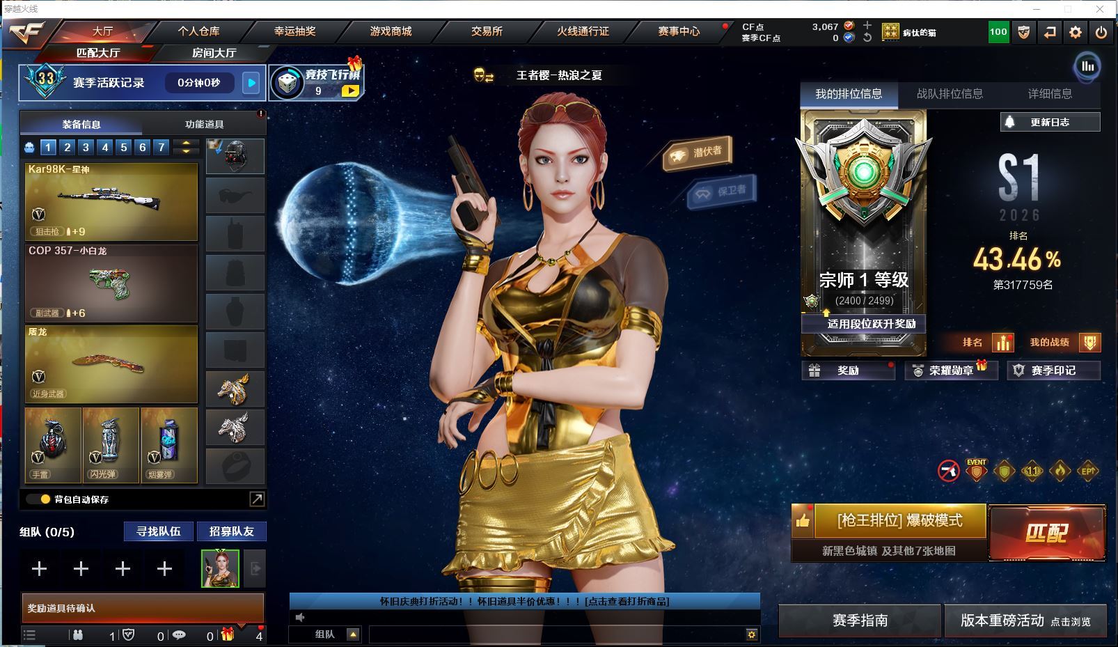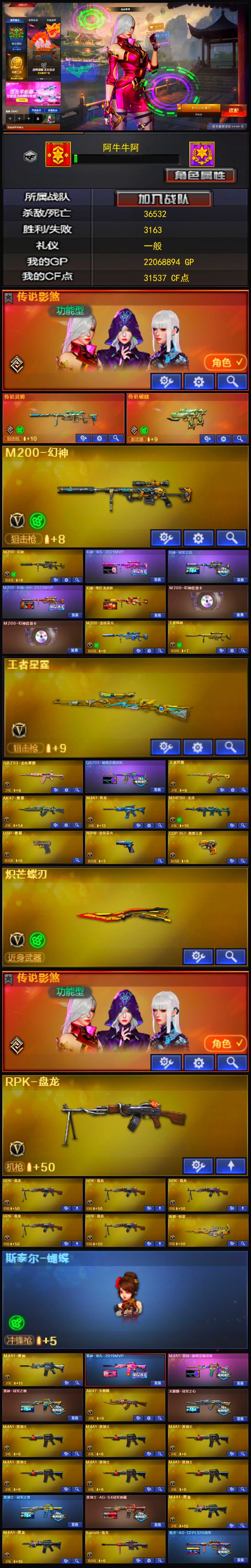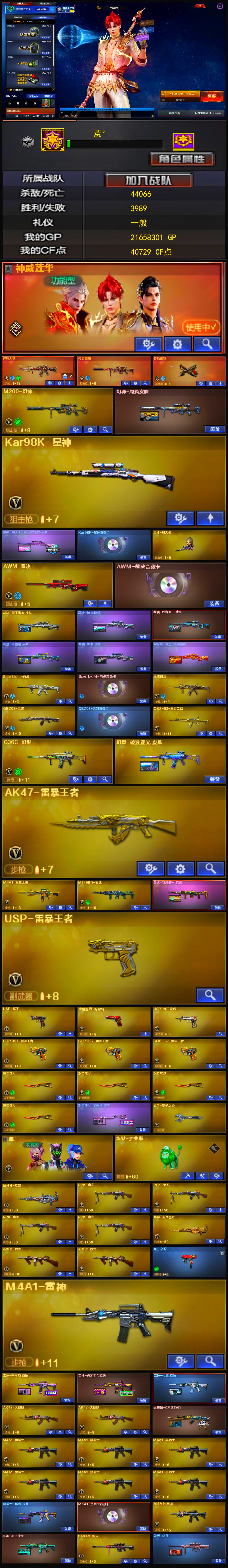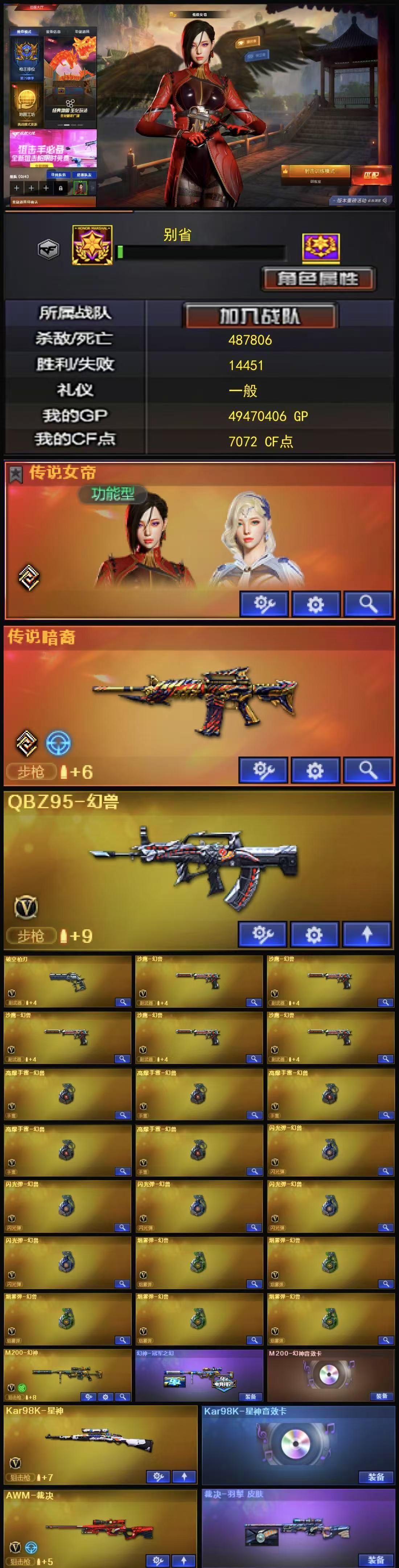 幻兽套+4防传说女帝+传说暗裔+冠军之幻幻神音效卡+星神音效卡+白虎拼搏电玩粉兔+裁决羽掣+N9金色蔷薇+天罚音效卡+朱雀+USP雷暴+2USP冥王+柯尔特无冕之王+2柯尔特荣耀世冠+破空枪刃+5沙鹰幻兽+COP极地霜雄+八面凌龙森林领主+炼狱酷酷小狮+6盘龙炼狱+7烈龙斯泰尔蝴蝶死亡之眼+3防生化背包变更-荆棘+3防雨裳+4防王者魅影+4防王者小乔+金狐全套+臻选次元全套+黄金套+9阶满攻击+全套挑战枪+哔哩哔哩名片【170v】 【可否排位】可排位 【账号状态】无封号 【区服】河南一区 【VIP】VIP6 【游戏段位】荣耀枪王152豆 【游戏等级】Lv.102 荣耀元帅 【段位排名】89497 【CF点】7072 【VVIP数量】170 【重要套装】幻兽套装/荣耀世冠套装/雷暴套装/臻选金狐套装 【重要角色】传说女帝/_葵/_樱/_蝴蝶_/魅影/雨棠/荆棘/战地猎狐/王者-魅影/王者玲珑-小乔/葵-阿尔法武装/龙儿-小淘气/代号:翼/铁扇公主/奇洋探员/夜玫瑰-N/虚空/乔伊教练/云海玲珑/铁骑荣耀/樱-青春偶像 【传说武器】传说暗裔 【英雄武器】_M200-幻神/Barrett-毁灭(2)/Barrett-极光/Barrett-暗月传说(2)/王者之怒-觉醒版/Kar98K-星神/AWM-天龙/AWM-裁决/M4A1-雷神/荣耀世冠-雷神/M4A1-黑龙/M4A1-龙血/M4A1-黑骑士(6)/黑骑士-海王(2)/M4A1-玫瑰精灵/王者之魄-觉醒版/王者之势-觉醒版/HK417-朱雀/_Scar Light-白虎/白虎-电玩蓝兔/QBZ95-幻兽/AK12-天启/AK47-火麒麟(3)/荣耀世冠-火麒麟/AK47-无影(6)/无影-神兵利器/AK47-雷暴/AK47-黑鲨/AK47-黑武士/AK-47-猩红传说(2)/AK47-B-身先士卒/AK47-B-常胜将军/AK47-B-战士/AN94-超新星/QBZ03-天罚/QBZ03-金色蔷薇/王者之心-觉醒版/9A91-烈火(2)/RPK-盘龙(6)/汤姆逊-烈龙(7)/AA-12-雷霆/加特林-炼狱(2)/天神-动感闪耀/沙鹰-天神(3)/沙鹰-修罗(5)/沙鹰-幻兽(5)/_破空枪刃_/荣耀世冠-柯尔特(2)/USP-雷暴/麒麟刺/龙啸(3)/荣耀世冠-龙啸/王者之啸-觉醒版/擎天/王者之击-觉醒版/屠龙(3)/雷霆之锋/女皇利刃-幻兽/斩神刀-雷暴(2)/手雷-动感闪耀/高爆手雷-幻兽(5)/高爆手雷-雷暴(6)/高爆手雷-雷霆(2)/烟雾弹-幻兽(5)/烟雾弹-雷暴(6)/烟雾弹-雷霆(2)/闪光弹-幻兽(5)/闪光弹-雷暴(6)/闪光弹-雷霆(2)/天罚-斗烈龙驹/机械迷城-穹宇/八面凌龙/金色蔷薇-古蛇迷踪/超新星-热带奇洋/黑武士-锦绣游龙/柯尔特-无冕之王/USP-冥王(2)/修罗-古蛇迷踪/屠龙-斗烈龙驹/麒麟刺-百战金芒/龙啸-热带奇洋/唐刀-古蛇迷踪/手雷-热带奇洋/烟雾弹-古蛇迷踪/高爆手雷-古蛇迷踪 【王者武器】王者霜心/王者之影 【小人枪】M4A1-雷神-精英刀锋/HK417-朱雀-蛇隐宗/M4A1-刀锋/Cat-刀锋/AWM-灵狐-15周年嘉年华/炼狱-酷酷小狮/KAC锯式机枪-黑桃战神/斯泰尔-蝴蝶/COP357-太空指挥官/COP-旗袍/夺魂(2)/迷你深渊冰龙(3)/迷你曼提柯尔(4)/迷你火种(3)/迷你波特博士(4)/迷你白狐(4)/迷你裂空之翼/迷你牛牛/Mini沃特X/魔能飞环-曼陀罗/冰火魔兽 【其他重要武器】炫金黑龙/M4A1-再燃火线/火麒麟-暗月/集束激光-超越MAX(4)/腐蚀激光-超越MAX/M4A1-十二生肖·龙-雷神/M4A1-仙界-黑骑士(2)/黑骑士-摸金校尉/M4A1-英雄-能量核心/黑武士-能量核心/激光毁灭者I/冰龙粉碎者-白马银枪(2)/激光毁灭者III(2)/机甲撕裂者III(2)/激光毁灭者III-白马银枪/末日审判者III/激光毁灭者-赤炎 III/AK47-冰龙粉碎者/AK47-泰坦破坏者III/AK47-牛魔王(3)/M4A1-牛魔王(2)/黄金AK-47(2)/纯金AK-47/9A-91翡翠/百城M4A1/AK-47-红龙/AK47-破空冰刃/M4A1-圣诞2021/M4A1-紫炎/M14EBR-CFS 2020/AK103-神秘黑洞/M4A1-SS-枪王排位/M4A1-S-火种/M4A1-樱落/M4A1-C-海浪/M4A1-水枪-机甲核心/AK47-苍龙/AK47-齐天大圣/AK-47-二次元/QBZ03-烛龙/M4A1-齐天大圣/QBZ03-锋芒破茧/AK47-绚樱/AN94-青花瓷/百城AK47/AK47-狂欢-CFS/AK47-朋克/AK-47-A-波特博士/AK47-雷蛇/M4C