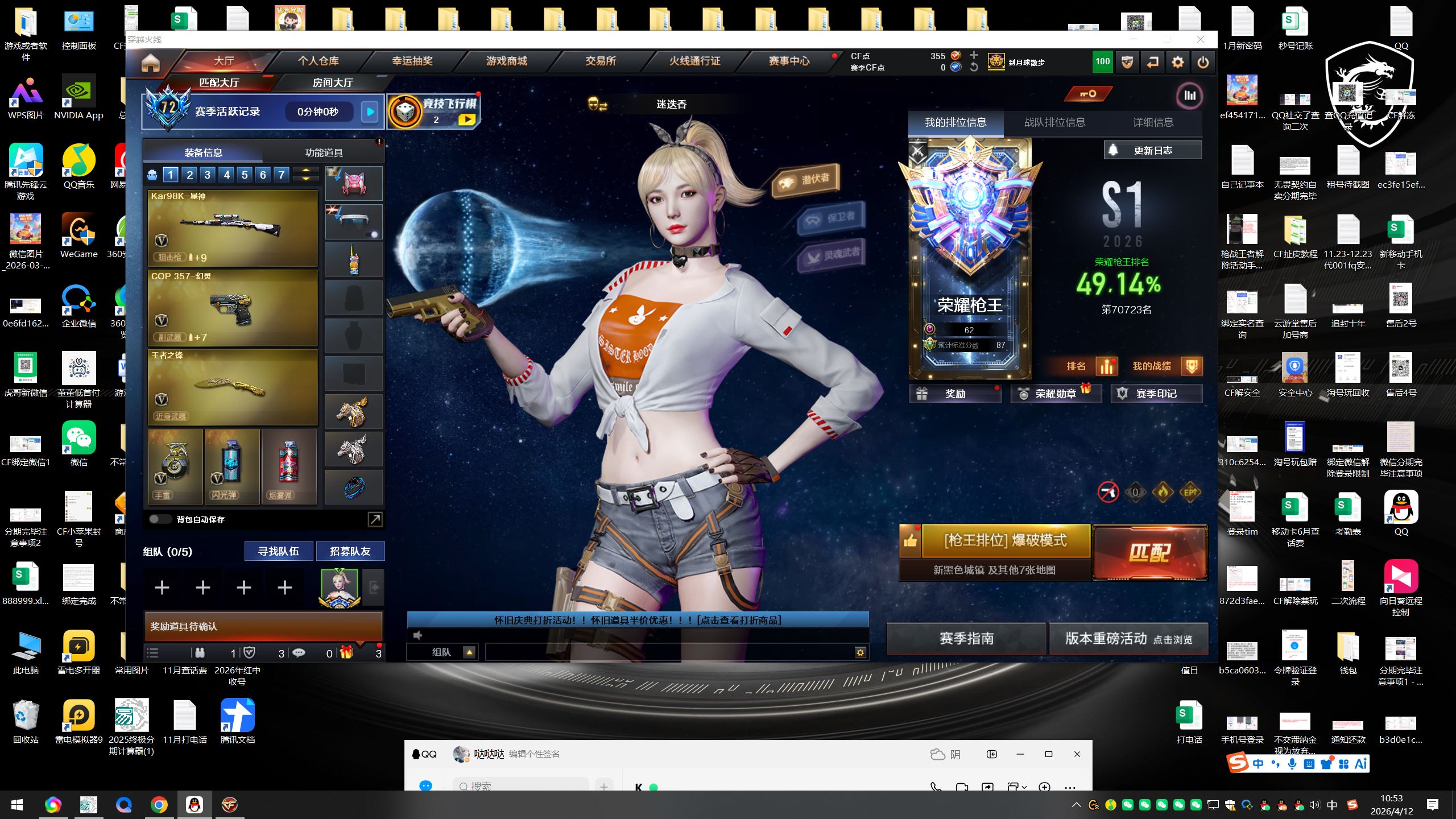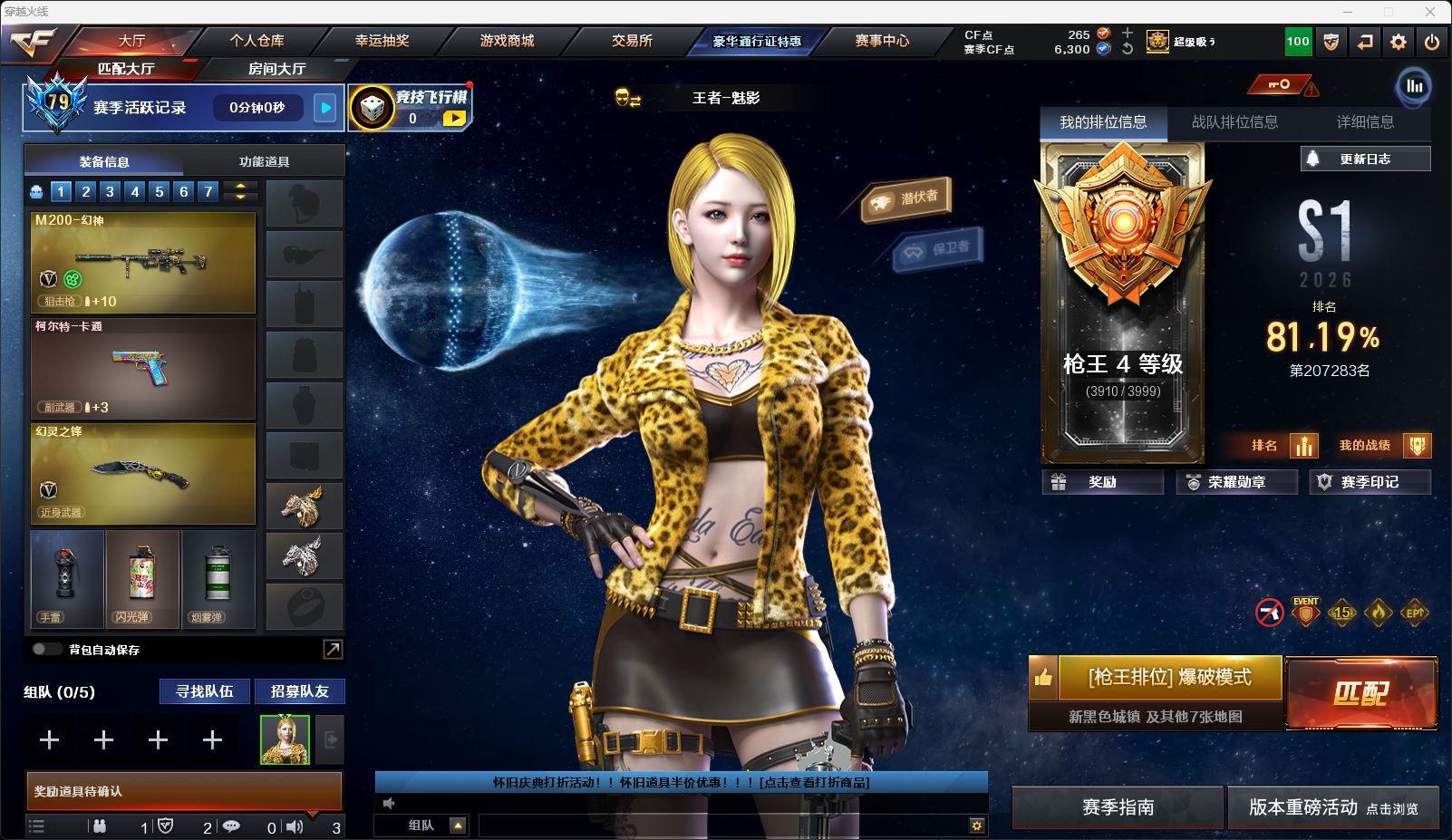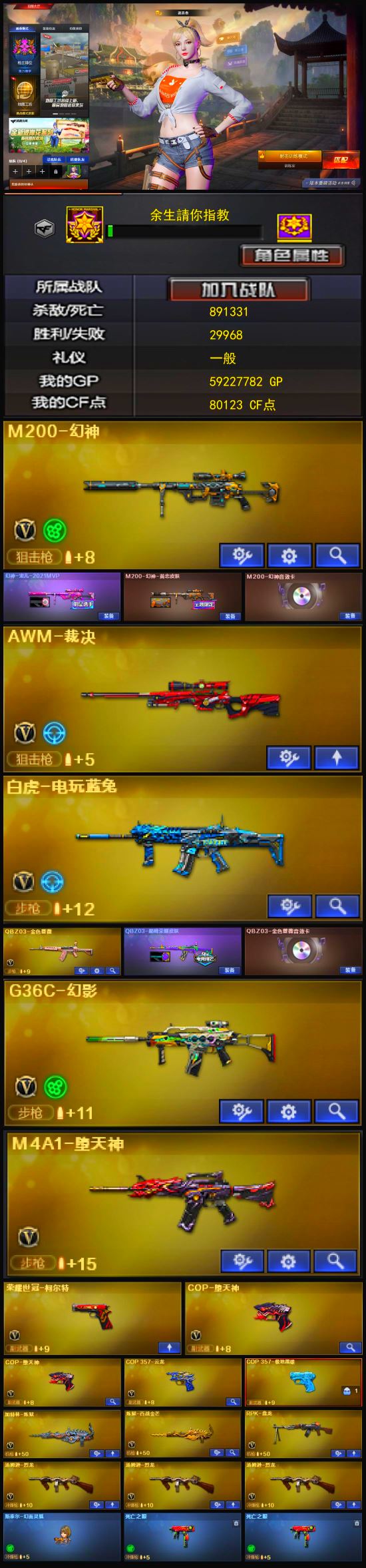 西部四川一区:16599【CFVIP6 两年会员 113V 可排位】【火麒麟/黑龙/雷神/黑骑士/死神/超新星/HK朱雀/白虎/QBZ金色蔷薇/9A91烈火/荣耀世冠雷神】【M200幻神/98K星神/裁决/毁灭/天龙】【USP雷暴/COP幻灵/三把沙鹰修罗/COP白鲨】【屠龙/擎天/麒麟刺/幻灵之锋/王者之锋/王者之击】【四套雷暴投掷】【电竞教官云悠悠/影豹/王者迷迭香/王者瞳闭月羞花/王者魅影】【音效卡:毁灭+黑骑士+黑龙+雷神+极光+火麒麟+幻神+QBZ金色蔷薇】【火麒麟巅峰荣耀+雷神LGD+毁灭SV+毁灭AG+雷神宠儿+雷神赵云+黑骑士冠军之势+裁决百城天津+毁灭CFS2020+雷神虎将+雷神白鲨+雷神荣耀之魄+雷神虎牙+雷神CFS2019+雷神冠军之魄】【截图展示段位不代表实际段位,如赛季更新等不可抗拒因素发生变化、时限道具不保证所剩时间】