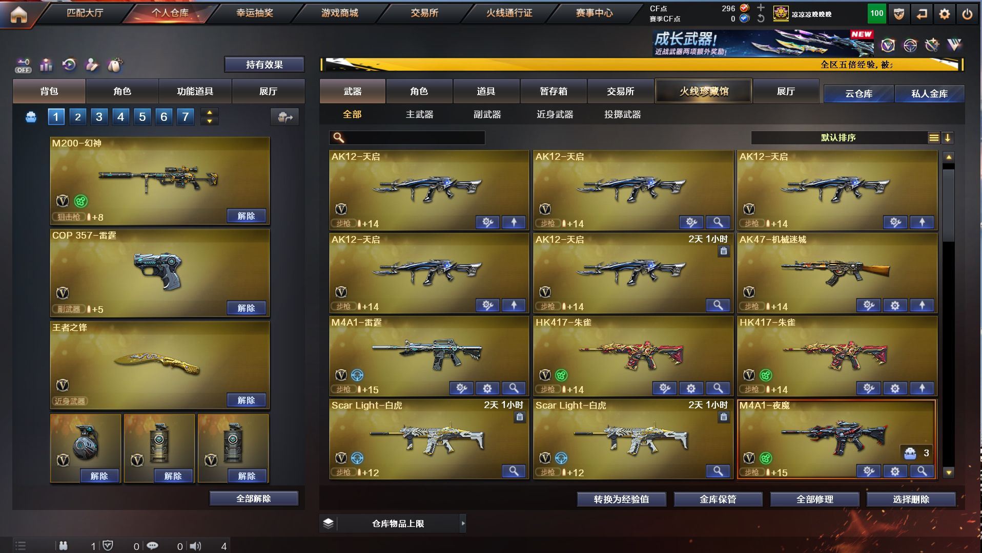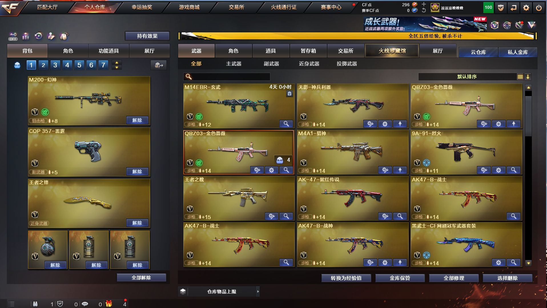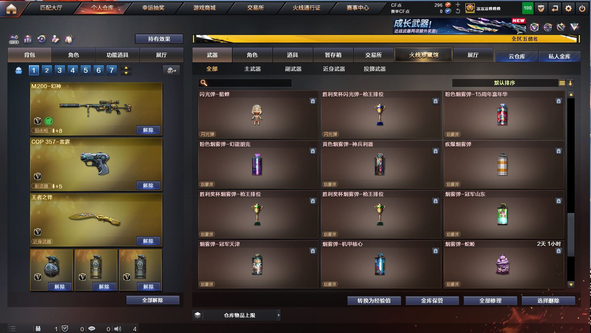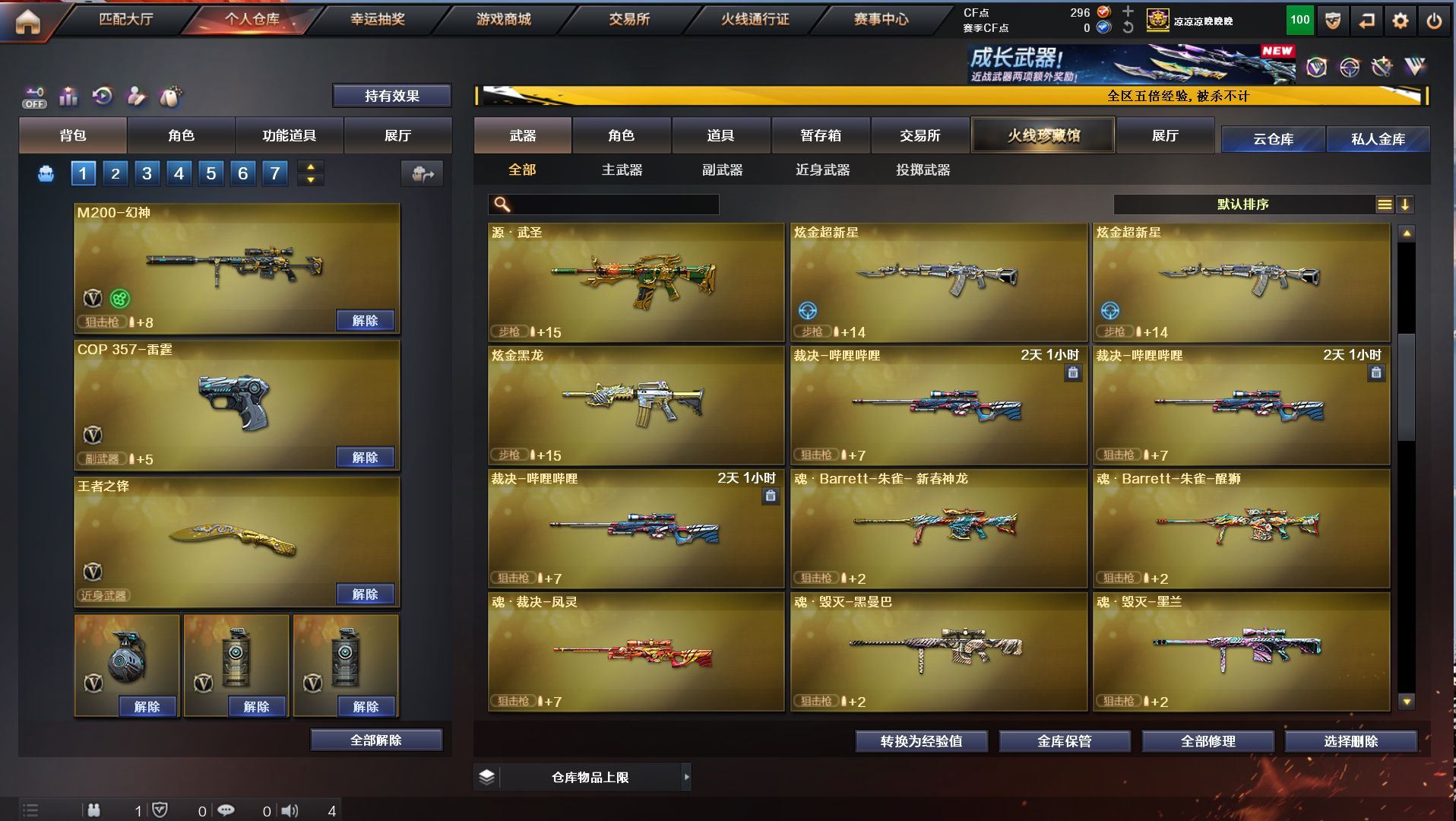 h2292【东部安徽一区可排位】【152v10王者5炫金】【m200幻神+幻神音效卡+cop雷霆】【觉醒王者幻神】【qbz03金色蔷薇+金色蔷薇音效卡】【白虎蓝兔】【5烈龙1盘龙+1炼狱+3联系阅蓝+6修罗2天神+12刀】角色:凌霄/炫/迷迭香/樱/孤影/王者救世主/王者玲珑/暗夜x/幻神音效卡/金色蔷薇音效卡/毁灭音效卡/雷神音效卡/黑骑士音效卡/火麒麟音效卡/皮肤/火麒麟2018/主流武器/火麒麟/黑龙/雷神/7黑骑士/m4雷霆/m4夜魔/毁灭/极光/awm裁决/2破空枪刃夜魔/7套夜魔/7套雷霆/【各种道具详情看截图、低价出售截图展示段位不代表实际段位,如赛季更新等不可抗拒因素发生变化、时限道具不保证所剩时间、标题未写送点券默认不送】【老虎哥专业售后】cfvip6
