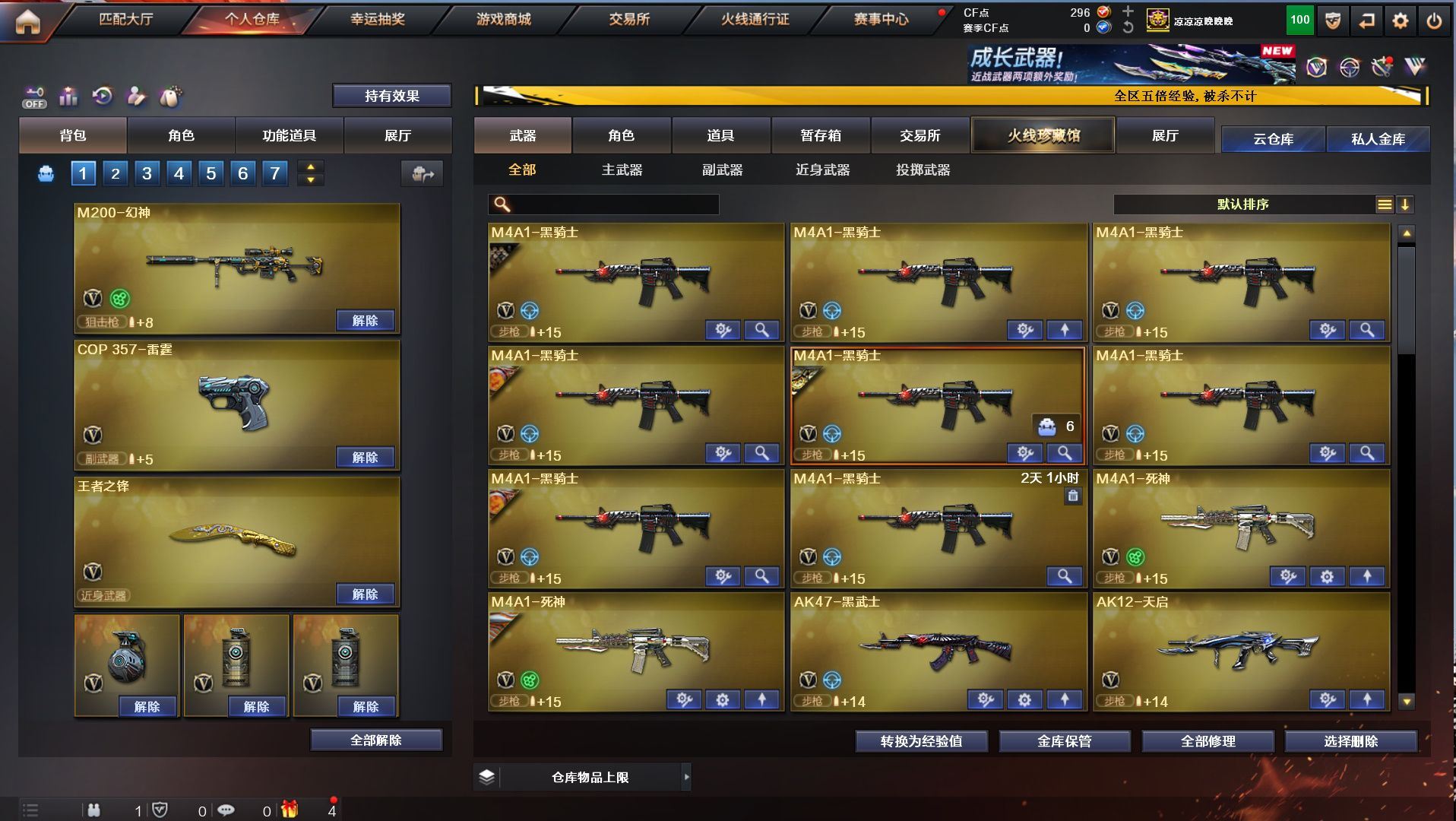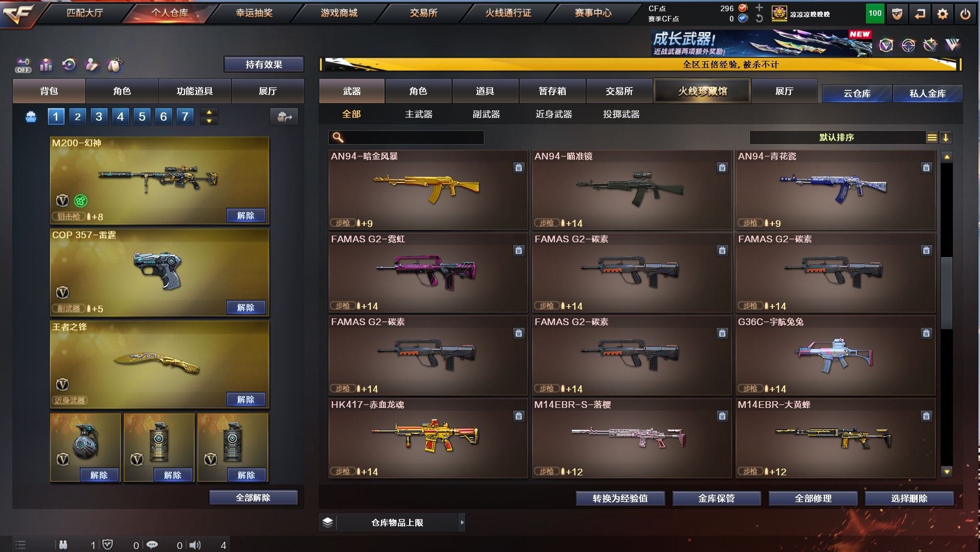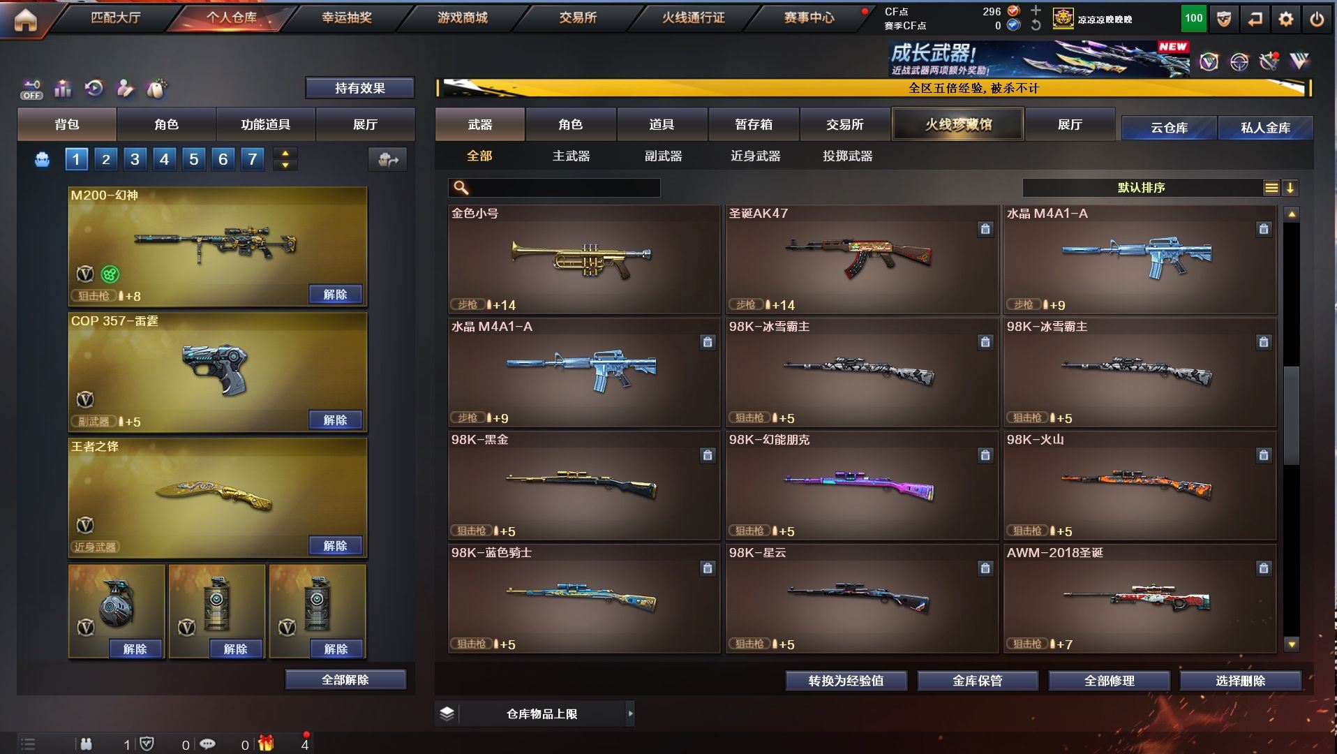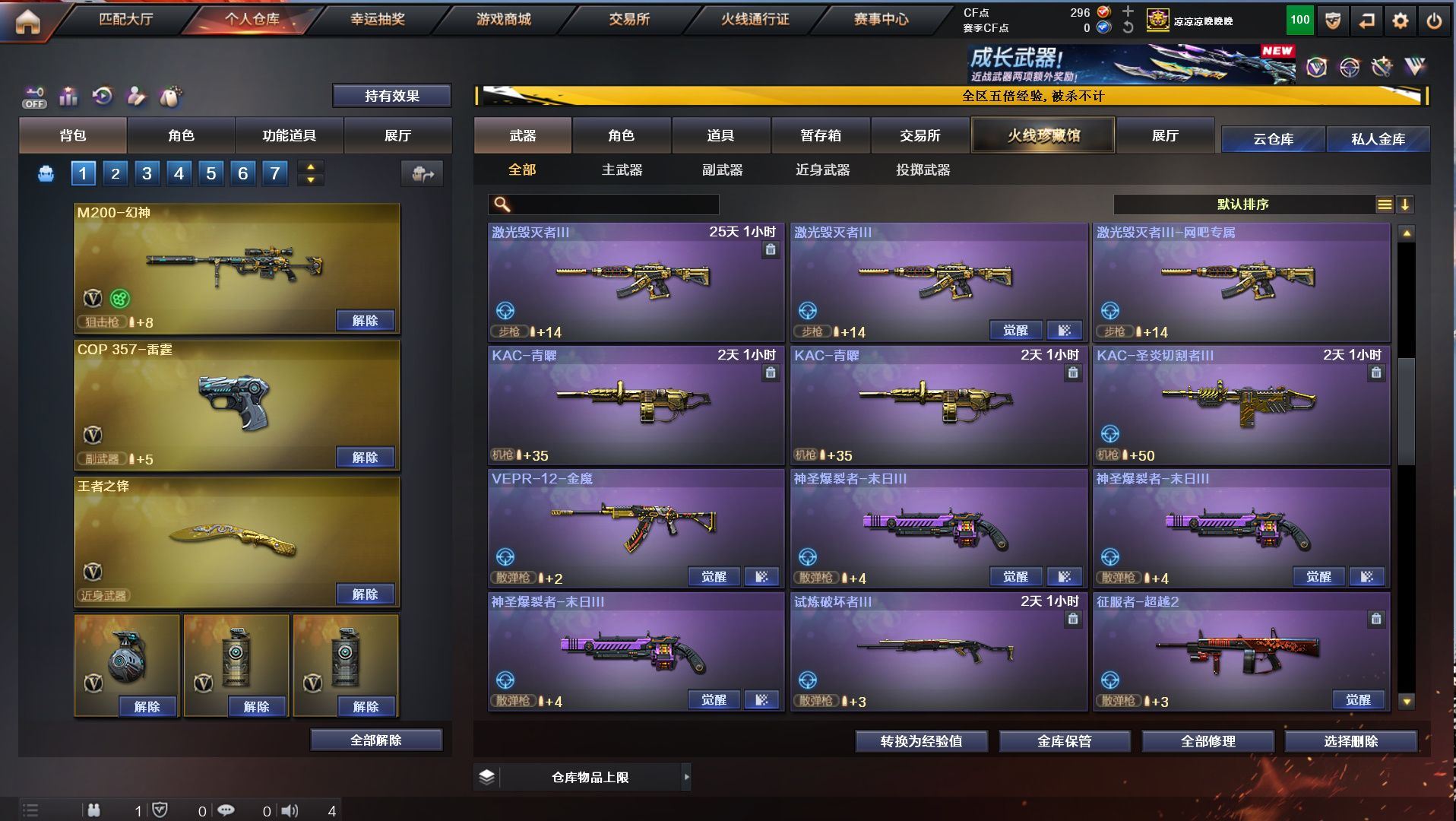 h2292【东部安徽一区可排位】【152v10王者5炫金】【m200幻神+幻神音效卡+cop雷霆】【觉醒王者幻神】【qbz03金色蔷薇+金色蔷薇音效卡】【白虎蓝兔】【5烈龙1盘龙+1炼狱+3联系阅蓝+6修罗2天神+12刀】角色:凌霄/炫/迷迭香/樱/孤影/王者救世主/王者玲珑/暗夜x/幻神音效卡/金色蔷薇音效卡/毁灭音效卡/雷神音效卡/黑骑士音效卡/火麒麟音效卡/皮肤/火麒麟2018/主流武器/火麒麟/黑龙/雷神/7黑骑士/m4雷霆/m4夜魔/毁灭/极光/awm裁决/2破空枪刃夜魔/7套夜魔/7套雷霆/【各种道具详情看截图、低价出售截图展示段位不代表实际段位,如赛季更新等不可抗拒因素发生变化、时限道具不保证所剩时间、标题未写送点券默认不送】【老虎哥专业售后】cfvip6