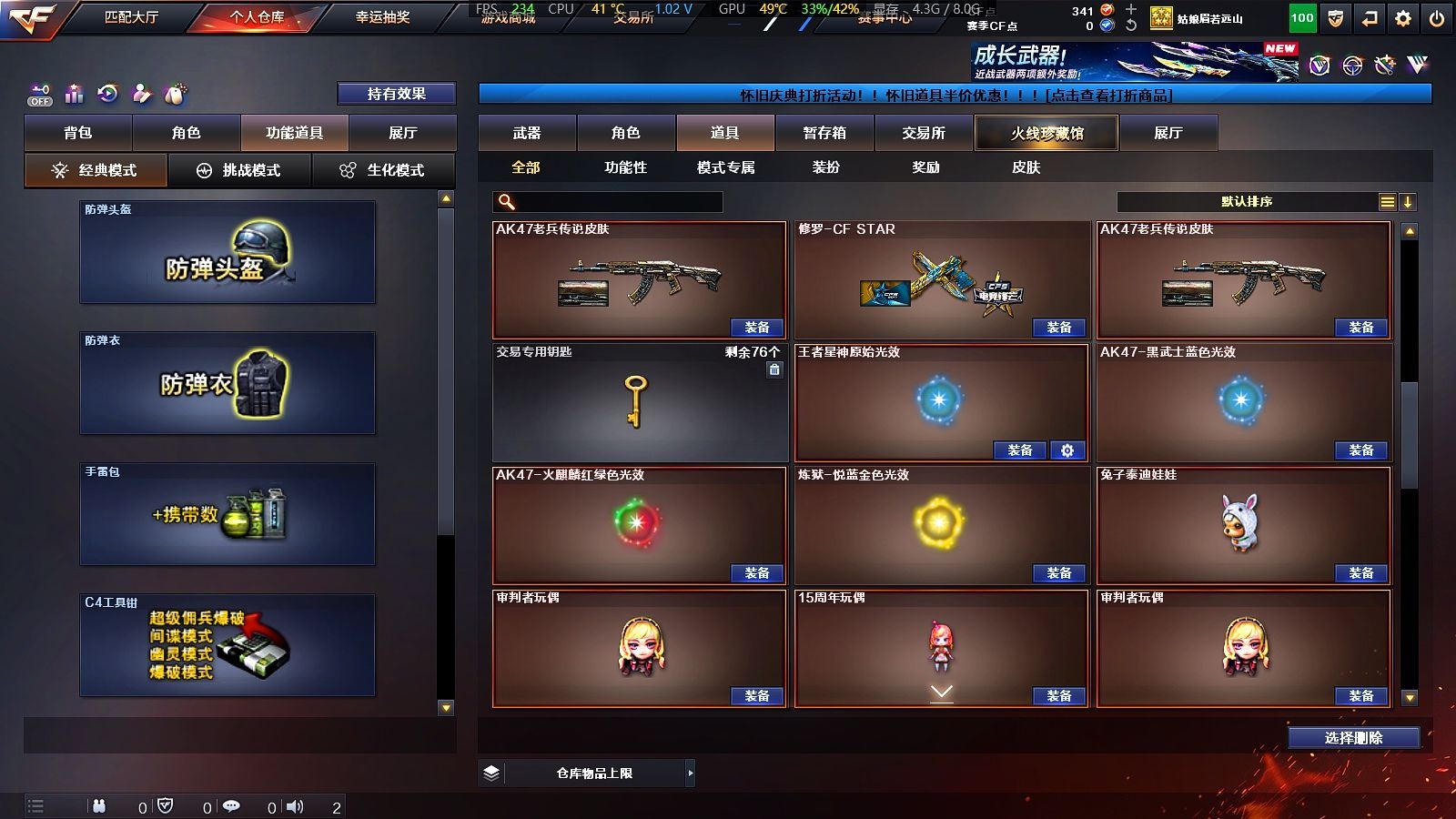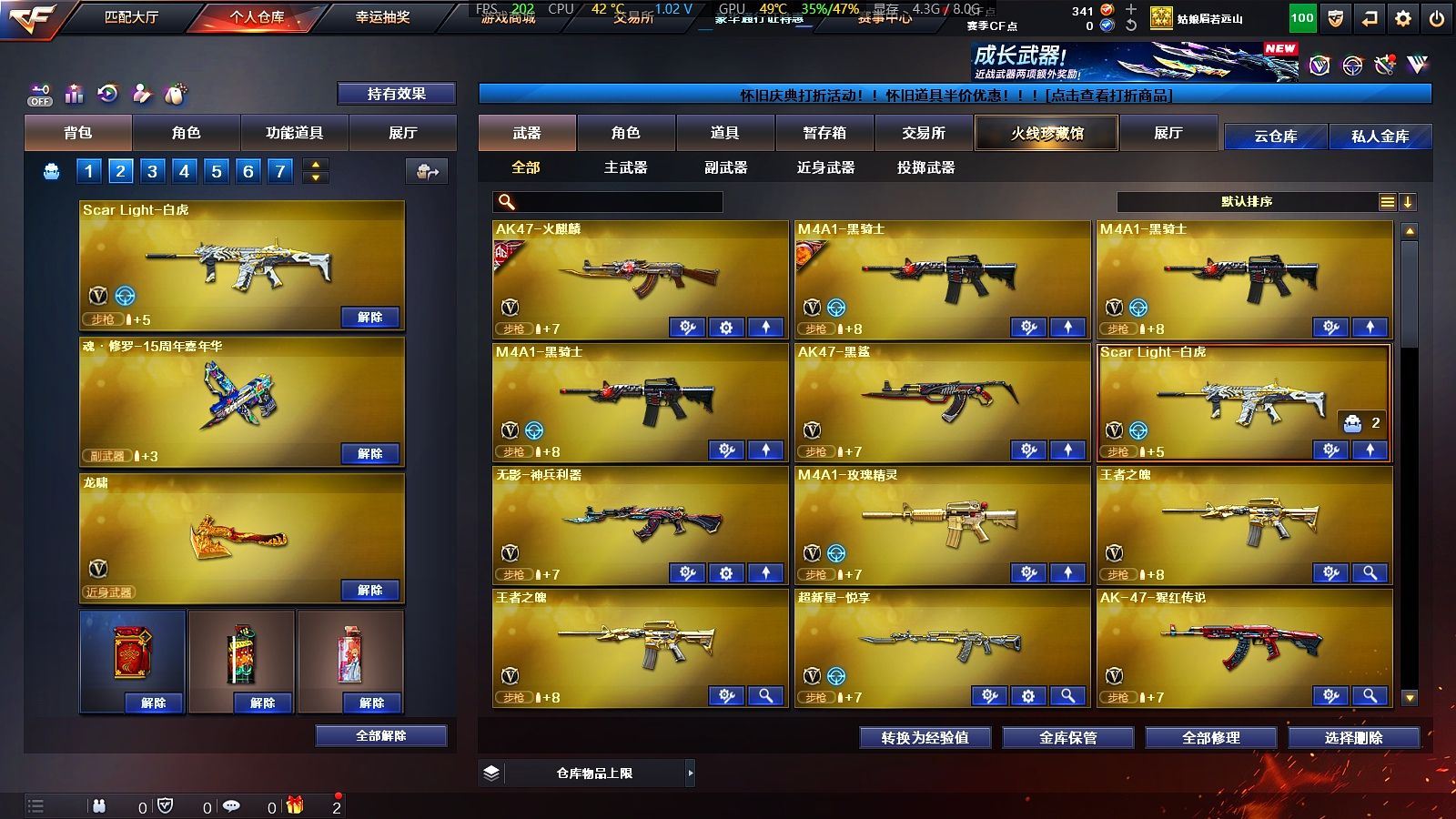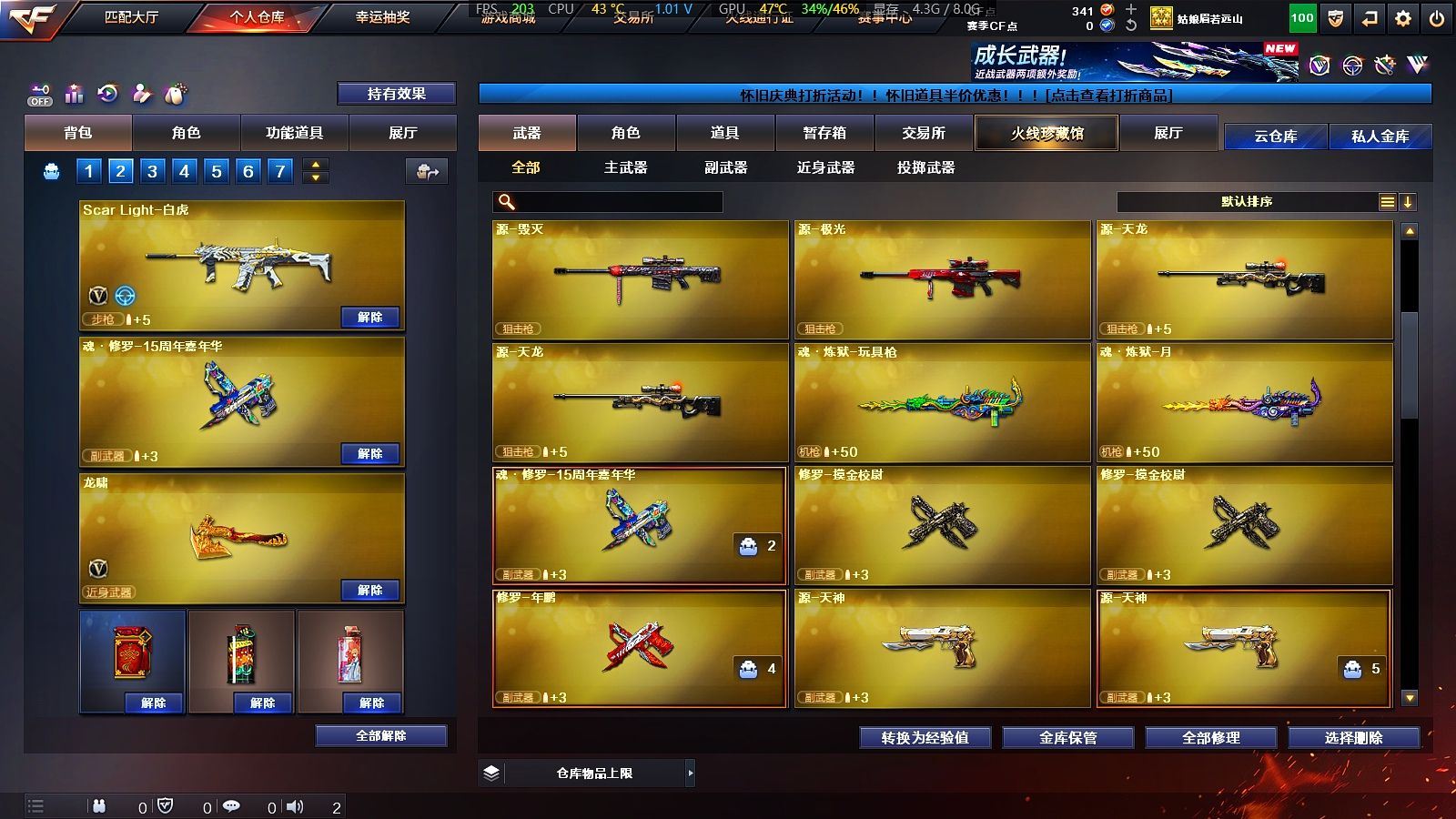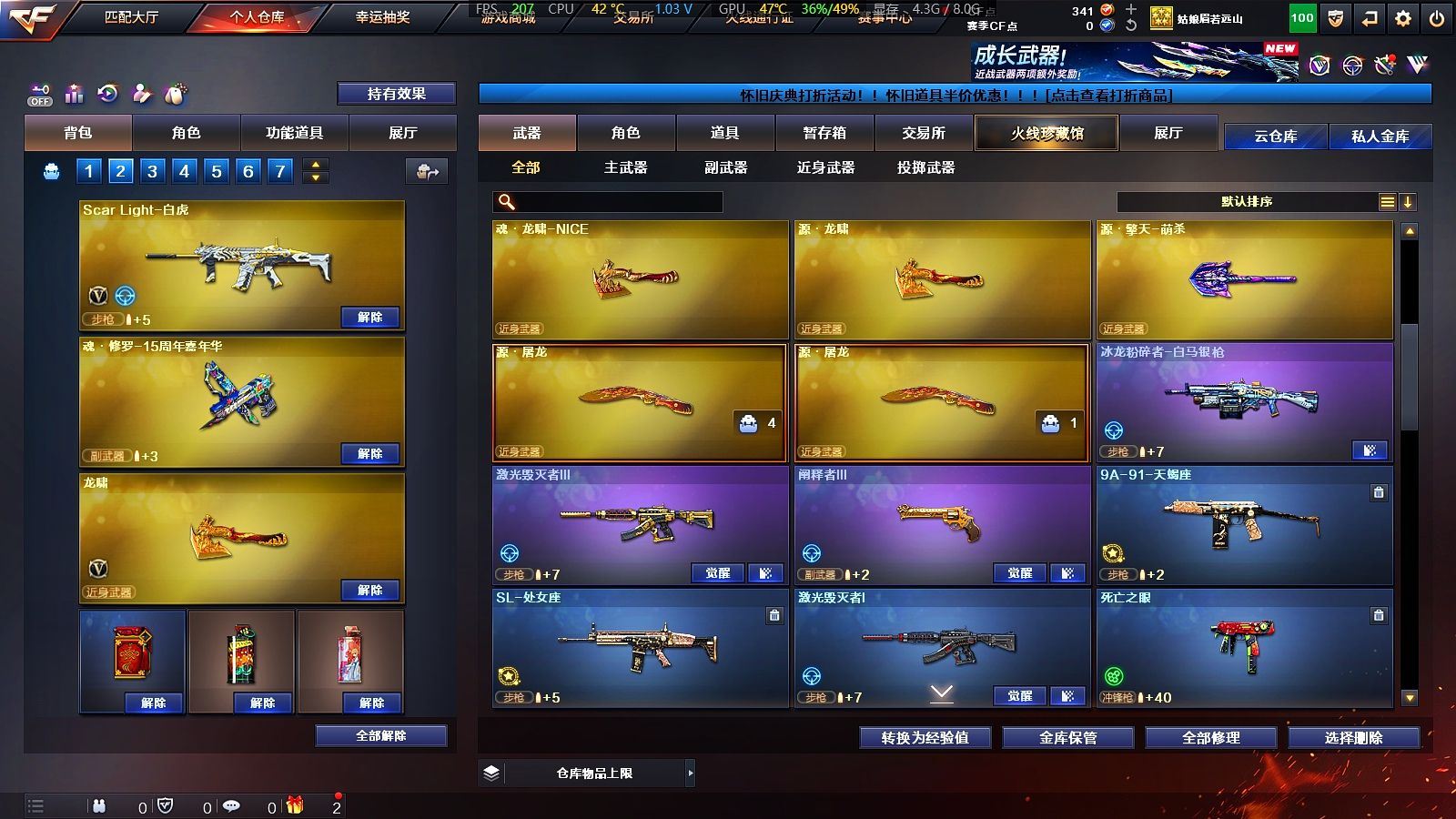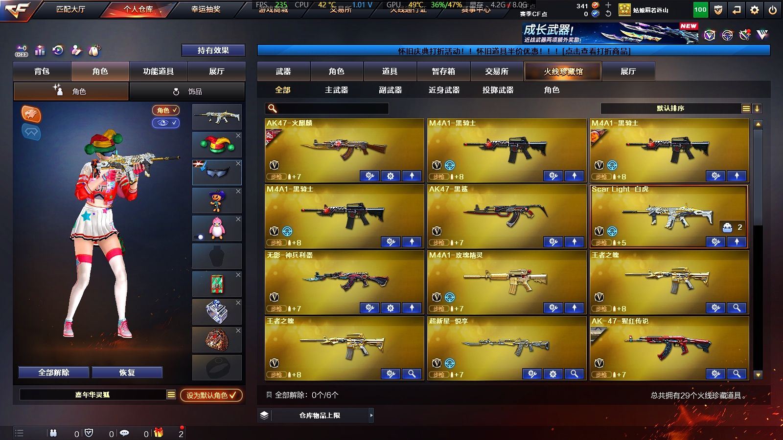25V✨6烈生化道具齐全✨王者星神+白虎✨基础V齐全✨【广东一区/25V/vip1】【6烈龙】【王者星神】【Scar Light-白虎】【AK47-火麒麟/火麒麟-百城/火麒麟-CFSTAR】【M4A1-黑骑士*3】【无影-神兵利器】【AWM-裁决】【汤姆逊-烈龙*6】【死亡之眼】【修罗-CFSTAR】【龙啸】【暗夜-X/兰-新年限定/雪莉杨/蜀雪/娟娟/救世主-X/幻影/堕天使】【M4A1-玫瑰精灵】【AK47-B-战士/AK47-B-战神/AK-47-猩红传说*6】【AA-12-雷霆/AK47-黑鲨】【超新星-悦享】【新USP-枪王排位奖励】【激光毁灭者III/冰龙粉碎者-白马银枪/阐释者III】【斯泰尔-巧克力/轻型军用手斧-镜*2】【M4A1-雷神-精英刀锋/火麒麟-灵狐/迷你裂空之翼】【王者之魄/王者之光】【炫金火麒麟/炫金骑士】【闪光护目镜/超级背包/炫彩背包/防弹头盔*7/防弹衣*7/C4工具钳*5/手雷包*5/防化服】