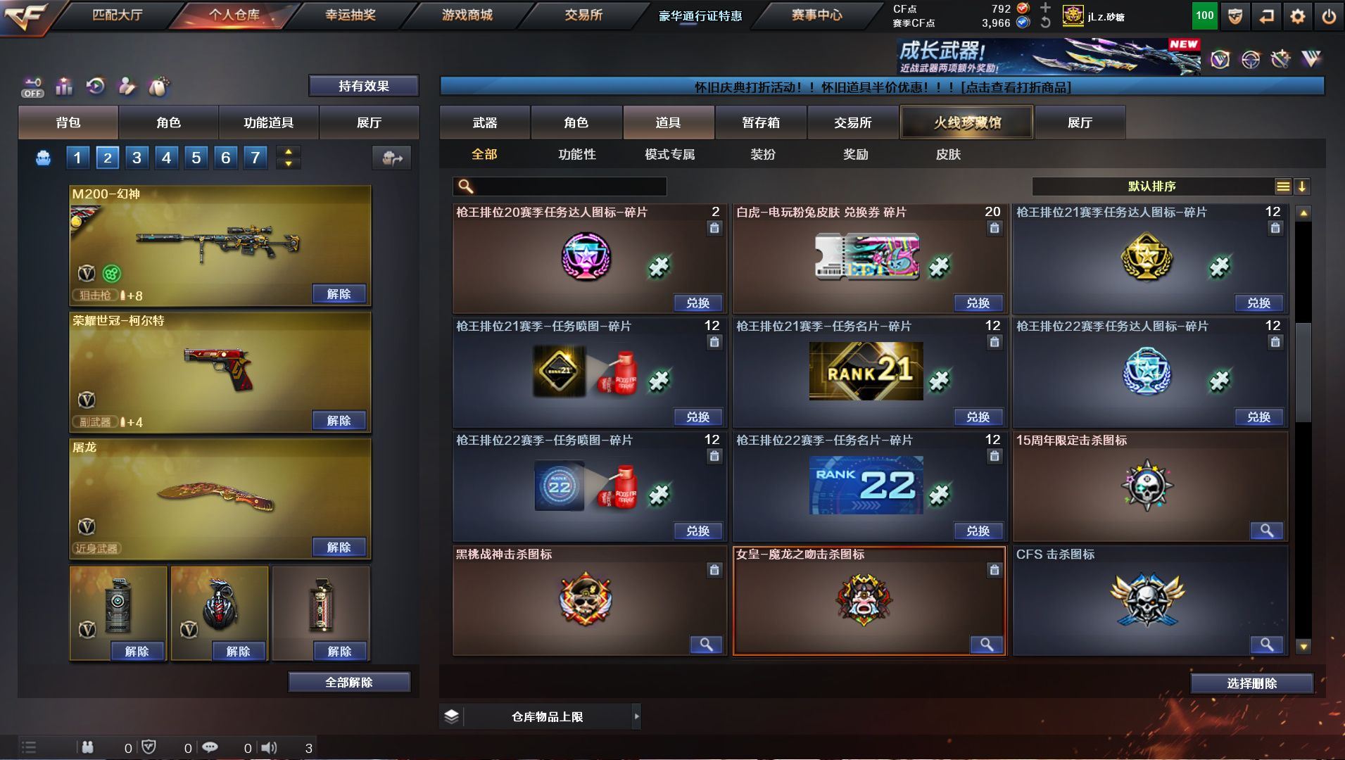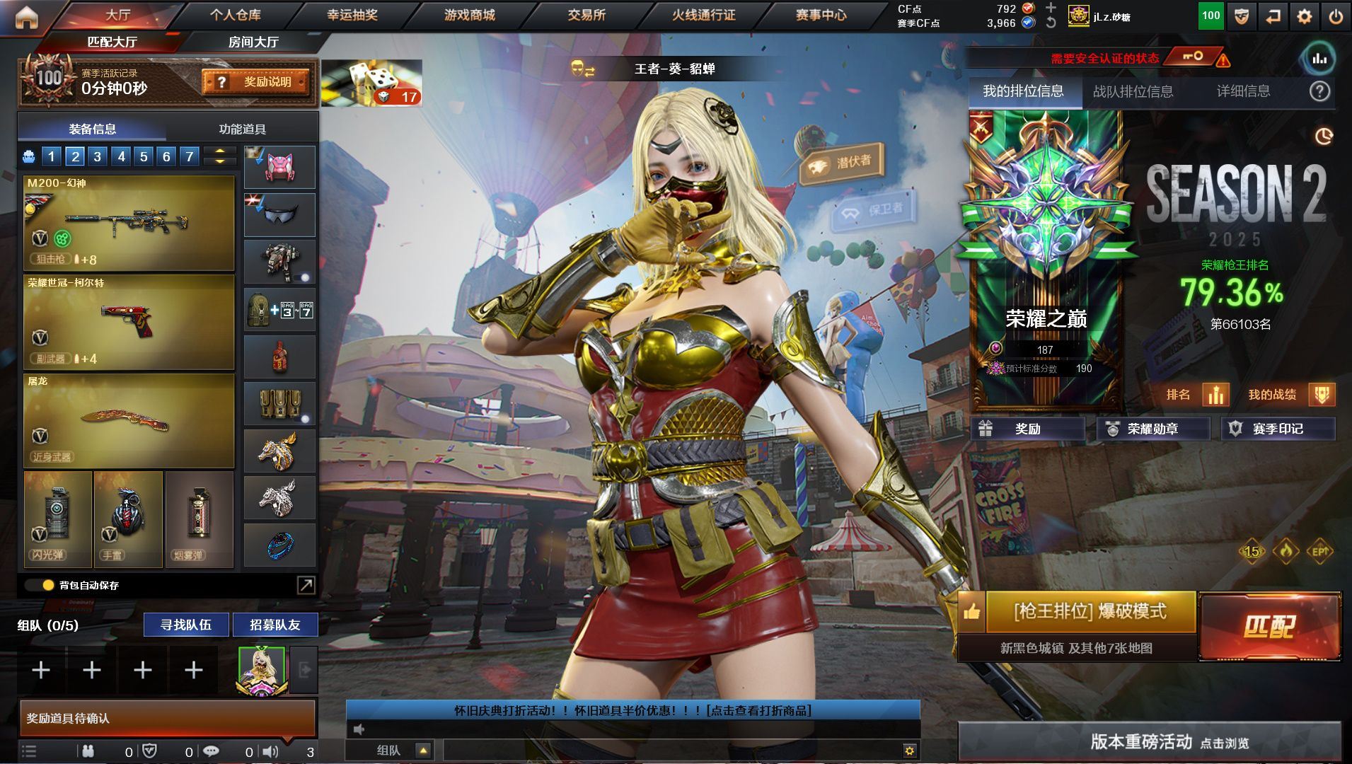 h2318【南部广东一区可排位】【87v5王者】【m200幻神+幻神冠军AG皮肤+幻神动感闪耀皮肤】【荣耀世冠柯尔特】【白虎电玩】【qbz03金色蔷薇+qbz03冠军之薇皮肤】【盘龙:3烈龙:死亡之眼:黑桃战神】角色:四防王者葵貂蝉:四防王者魅影:雪域霜狐:暗夜x:主流武器:火麒麟:雷神:黑龙:黑骑士:天启:黑鲨:龙血:朱雀:金色蔷薇古蛇迷踪:天龙:毁灭:14刀:音效卡:火麒麟音效卡:黑骑士音效卡:碧霄极光音效卡:雷神音效卡:毁灭音效卡:皮肤:幻神s17冠军AG皮肤:幻神动感闪耀皮肤:qbz03金色蔷薇冠军之薇皮肤:毁灭星空皮肤:黑骑士冠军之势皮肤:火麒麟冠军之心皮肤:火麒麟平天大圣皮肤:黑龙墨子皮肤:雷神冠军之魄皮肤:毁灭CFs2020皮肤:毁灭荣耀之怒皮肤:AWM天龙传奇白鲨:【各种道具详情看截图、低价出售、永久售后、截图展示段位不代表实际段位,如赛季更新等不可抗拒因素发生变化、时限道具不保证所剩时间、标题未写送点劵默认不送】【老虎哥专业售后】vip6