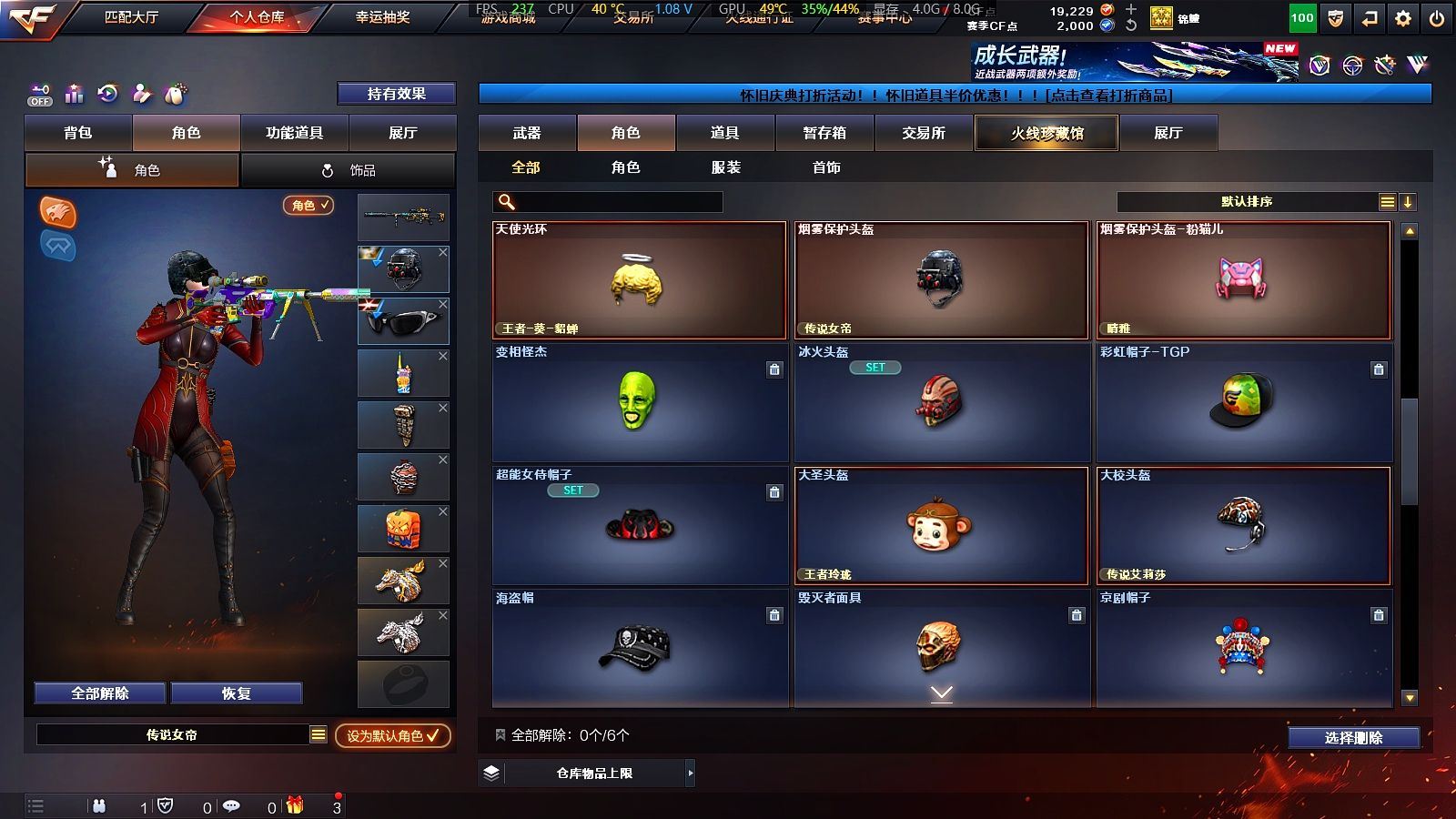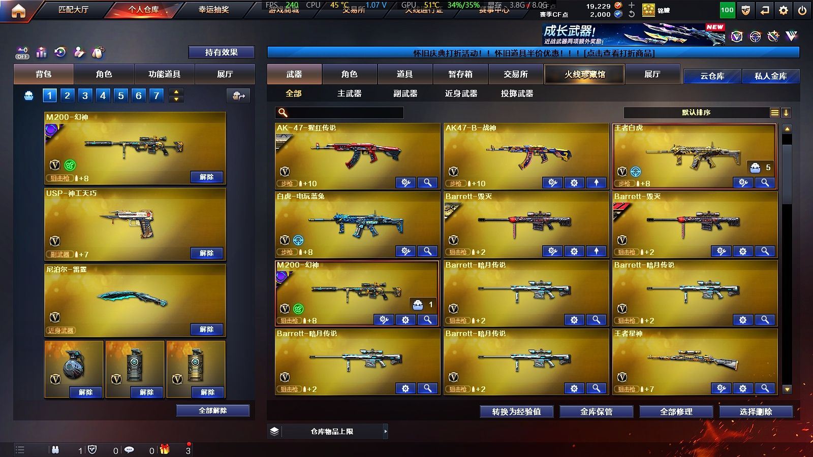 80V✨传说女帝艾莉莎✨幻神巅峰荣耀-黄忠✨2把usp神工✨王者星神-qbz蔷薇✨王者白虎+白虎电玩✨双面神毒蜂3炼狱生化道具齐全✨4防传说女帝+4防王者葵貂蝉+4防王者零国色天香✨【上海一区/74V/vip1/2传说】【传说女帝/传说艾莉莎】【M200-幻神/幻神-巅峰荣耀/M200-幻神-黄忠皮肤】【王者星神/王者白虎】【USP-神工天巧*2】【QBZ03-金色蔷薇*2】【QBZ03-天罚】【M4A1-雷神*2/雷神-荣耀之魄/M4A1-战神赵云/雷神-宇航兔皮肤/雷神-暗月】【Barrett-毁灭*2/毁灭-荣耀之怒/毁灭-战神张飞/毁灭耀金皮肤】【AK47-火麒麟*2/火麒麟-百城/火麒麟-CFSTAR*3/火麒麟-轻羽皮肤/火麒麟-心动糖果/火麒麟-华夏之心/火麒麟-战神关羽/火麒麟-雷神】【M4A1-黑骑士/黑骑士-战神马超】【AK47-无影/无影-神兵利器/无影-能量核心】【AK47-黑武士*3/黑武士-锦绣游龙】【天龙-CFSTAR】【M4A1-死神*5/M4A1-千变】【加特林-炼狱*3】【KAC-狂怒咆哮】【沙鹰-修罗*3/修罗-CFSTAR/修罗-冠军之魂】【沙鹰-天神*2】【麒麟刺*5】【擎天*2】【屠龙*4】【龙啸】【职业选手/新海豹突击队/晴雅/王者玲珑/王者-葵-貂蝉/王者-零-国色天香/龙儿/龙儿-小淘气/樱-青春偶像/卡塔琳娜/木兰/兔囡囡/灵狐者-黄金海岸/妲己/蜀雪/娟娟/潘多拉-X/斯沃特-X/影武者-X/堕天使/复仇者】【M4A1-玫瑰精灵/M4A1-龙血*4/M4A1-猎神】【白虎-电玩/AK47-B-战神/AK-47-猩红传说*2】【AK47-机械迷城/AK12-天启】【AN94-超新星*4】【Barrett-暗月传说*4】【Colt 1911-大黄蜂/柯尔特-萌杀/新USP-枪王排位奖励*3】【斩神刀/金刚伞-电玩红兔】【神圣爆裂者-末日III/巨龙咆哮-深渊金】【黑龙吞噬者/斯泰尔-巧克力】【M4A1-小黄鸡/COP-旗袍/M37-葵/黄金迷你深渊冰龙/夺魂】【王者森决/王者森决/王者之魄】【烟雾弹-竞技荣光】【高爆手雷-雷霆/闪光弹-雷霆/烟雾弹-雷霆】【透明头盔/烟雾保护头盔/闪光护目镜/运动护目镜/超级对讲机/超级背包/防弹头盔*5/防弹衣*5/C4工具钳*5/手雷包*5/防化服】