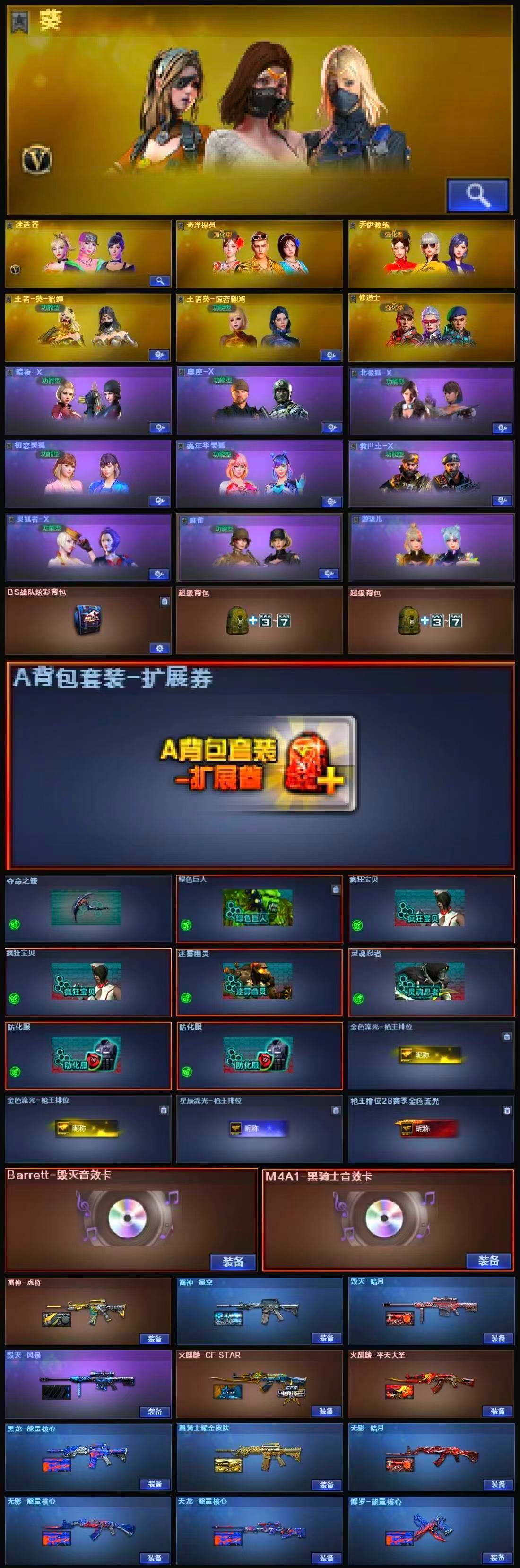 幻神+2堕天神COP+1盘龙2炼狱悦蓝+1烈龙死亡之眼+风暴毁灭音效卡+耀金黑骑士音效卡+精品基础v+4防王者貂蝉【69v】 【实名情况】可二次实名 【可否排位】可排位 【账号状态】无封号 【区服】陕西一区 【VIP】VIP6 【游戏段位】荣耀之巅219豆 【游戏等级】Lv.100 元首 【段位排名】32365 【CF点】700 【VVIP数量】69 【重要套装】堕天神套装 【重要角色】_葵/_迷迭香/王者-葵-貂蝉/王者葵-惊若翩鸿/修道士/奇洋探员/虚空/乔伊教练 【传说武器】 【英雄武器】_M200-幻神/Barrett-毁灭(2)/barrett-金色蔷薇(2)/Barrett-暗月传说/AWM-天龙/M4A1-堕天神/M4A1-雷神(2)/M4A1-黑龙(2)/M4A1-千变/M4A1-黑骑士/M4A1-玫瑰精灵/王者之魄-觉醒版/AK47-火麒麟/AK47-无影(2)/AK47-黑武士/AK-47-猩红传说/AK47-B-身先士卒/AK47-B-常胜将军/AK47-B-战士(2)/AK47-B-战神/QBZ03-金色蔷薇(2)/9A91-烈火/RPK-盘龙/汤姆逊-烈龙/加特林-炼狱/炼狱-悦蓝-觉醒版/COP-堕天神(2)/沙鹰-天神/沙鹰-修罗(3)/麒麟刺/麒麟刺-堕天神/龙啸-堕天神/擎天/屠龙/高爆手雷-堕天神(6)/烟雾弹-堕天神(6)/闪光弹-堕天神(6)/机械迷城-穹宇/超新星-热带奇洋/龙啸-热带奇洋/龙啸-烈火龙威/手雷-热带奇洋 【王者武器】王者之啸/烟雾弹-雷霆王者 【小人枪】火麒麟-灵狐/QBZ03-斯沃特/AWM-灵狐-15周年嘉年华/巴雷特-零-水下丽影/KAC锯式机枪-黑桃战神/魔能飞环-曼陀罗/迷你波特博士 【其他重要武器】炫金超新星/炫金雷神/冰龙粉碎者-白马银枪/激光毁灭者III-白马银枪/AK47-苍龙(3)/M4A1-XS-翔龙/纯金AK-47/M4A1-电音(2)/M4A1-Guitar 炫彩/AK47-大帝林肯/AK-12-恶棍(2)/百城M4A1/M4A1-秘银赤龙(4)/AK47-丹龙(3)/M4A1-圣诞2021(2)/AK47-死亡之翼/AK47-盛典-CFS 2022/M4A1-S-能量核心/M4A1-紫狱(3)/M4A1-XS-赤龙/百城AK47/M4A1-XS-耀龙/AK47-齐天大圣(2)/G3A3-SS-枪王排位(5)/AN94-青花瓷/AK103-神秘黑洞/Scarlight-炫彩/M4A1-樱/M4A1枪王排位II/AK-47-A-波特博士/AK47-轮回(3)/QBZ03-吕布/AK47-枪娘(2)/AK-103-火线13周年/AK-47-二次元(2)/HK417-赤龙/AK-12-CFS2017纪念版(2)/AK47-娜塔莎/AK47-绚樱/黄金AK-47/M4A1-SS-枪王排位/AK-103-红色悦动/9A91-赤血龙魂/M4A1-破空冰刃(2)/M4A1-PINK(2)/AK47-B-十周年/AK47-万圣节2018(3)/AK12-枪王排位/AK47-十年火线(2)/AK47-破空冰刃/M4A1-情人节2019/QBZ03-烛龙/AK47-青龙/M4A1-青龙./AK12-幽灵/M4A1-肯德基/9A91-2017万圣节/神罚(2)/Barrett-翔龙(3)/M82A1-红龙(2)/AWM-7周年/M200-枪王排位/AWM-恶棍/M82A1-夏日/破天九龙/Barrett-麟龙/Barrett-战龙/AWM-盛典-CFS 2022(3)/M200-朋克/Barrett-耀龙/AWM-A-圣诞2021/M200-大黄蜂(4)/Barrett-捣乱兔兔/AWM-小故障/M200-萌杀/M200-落樱/凤凰之力(3)/AWM-Pink/M200-神秘黑洞/AWM-A枪王排位II/M200-青帝/AWM-摸金校尉/AWM-卡通(2)/M200-庆典-CFS 2021/M200-牡丹/暗金AWM/AWM-T/AWM-万圣节刀锋(2)/AWM-恶棍-枪王排位/98K-烛龙/M200-赤血龙魂(5)/巴雷特-情人节2020/AWM-万圣节2019/M200-情人节2019(2)/雷蛇AWM/M200-万圣节2018(2)/AWM-蓝水晶/AWM-涂鸦/M200-涂鸦/AWM-2018圣诞/AWM-A(2)/M200-万圣节/MG3-翔龙/阿梅利轻机枪-暗夜风暴/KAC-耀龙/EVOIII-萌杀/MK5-枪王排位/CPW-动力-潘多拉/EVOIII- 曹操/EVOⅢ-黑金传说/死亡之眼/神圣爆裂者-末日III/Spas-12-幻能朋克/SPAS-12-雷电核心(3)/Spas-12-黑金/阐释者III/愤怒公牛左轮-枪王排位(3)/蟒蛇-炫彩/An