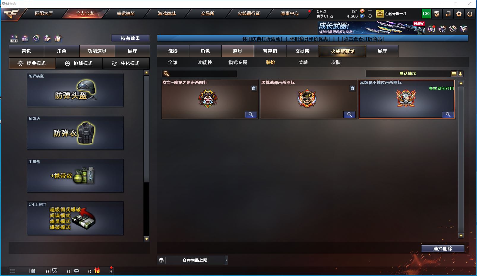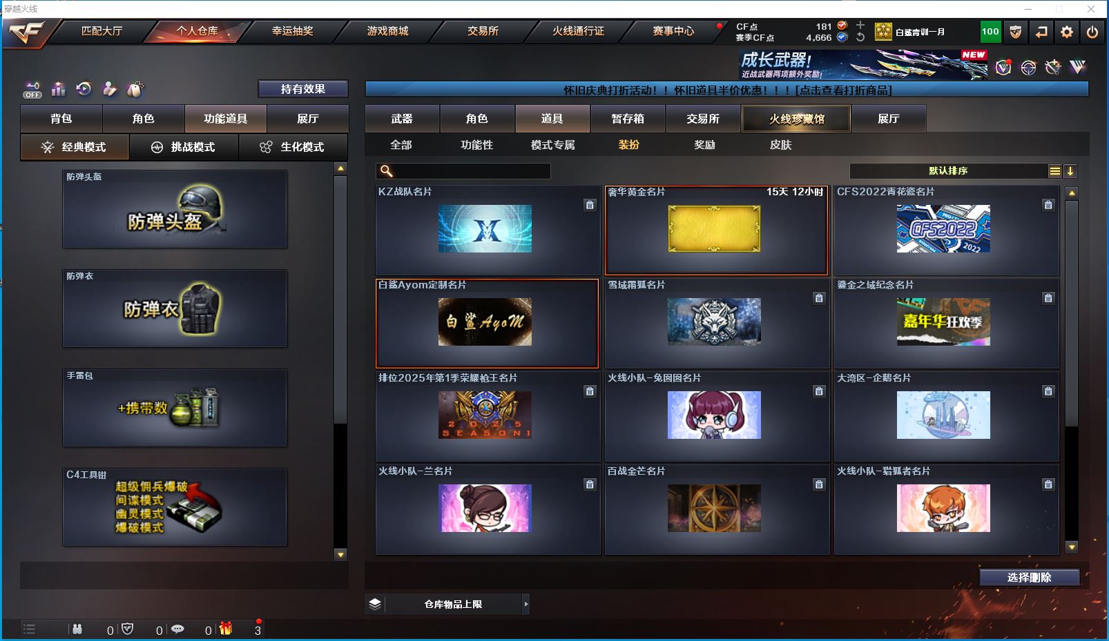 2yc-北部-吉林一区-极品爆破号 【可排位】【25V/1传说】【星神-长生圣莲】【M4A1-雷神/雷神-机甲刑天皮肤/雷神-宇航兔皮肤】【AK47-火麒麟】【M4A1-黑骑士】【M4A1-黑龙】【HK417-朱雀】【AWM-裁决】【加特林-炼狱】【沙鹰-修罗*2】【擎天*2】【兰-海滩派对/乔伊教练/救世主-X】【猫猫手套】【防弹头盔*3/防弹衣*3/C4工具钳*3/手雷包*3/防化服*3】更多亮点详情请看图