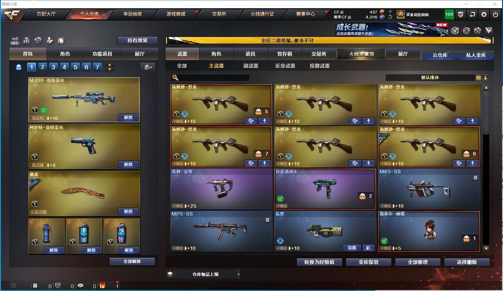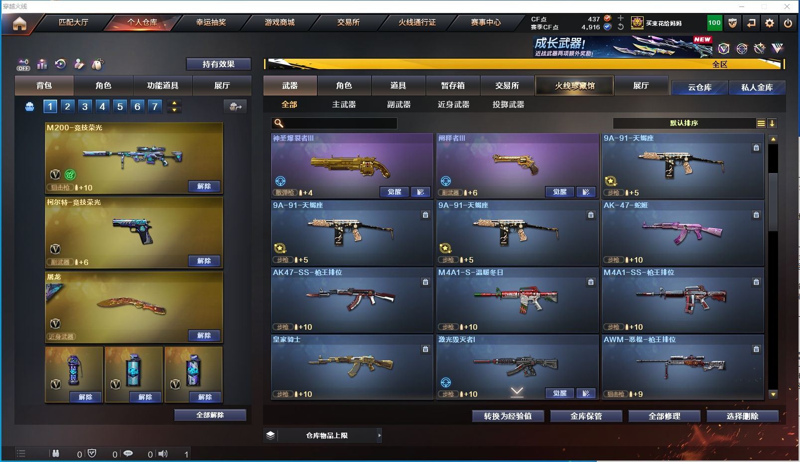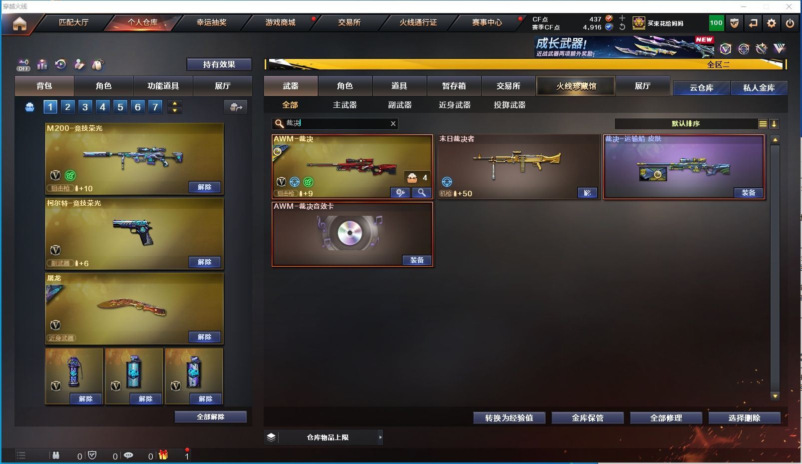 【上海一区/65V/vip1】【竞技荣光套/6烈龙】【M200-竞技荣光】【星神-炽天使】【王者之幻】【柯尔特-竞技荣光】【M4A1-雷神/雷神-耀金皮肤/雷神-星空】【Barrett-毁灭/毁灭-星空】【AK47-火麒麟】【M4A1-黑骑士】【M4A1-黑龙/M4A1-黑龙-361/黑龙-墨子皮肤/黑龙-能量核心】【AK47-无影*2/无影-霓裳皮肤/无影-能量核心】【AK47-黑武士/AK47-黑武士-361】【AWM-天龙/天龙-能量核心】【AWM-裁决/AWM-裁决音效卡】【汤姆逊-烈龙*6/烈龙-云海游龙音效卡/烈龙-星空】【RPK-盘龙】【加特林-炼狱】【死亡之眼*2/迷你生化手雷*3】【沙鹰-修罗/修罗-云海游龙音效卡/修罗-能量核心】【沙鹰-天神】【擎天/擎天-云海游龙音效卡/擎天-竞技荣光*2】【屠龙*5/屠龙-秘银/屠龙-破浪逐光 皮肤】【龙啸/龙啸-堕天神】【电竞教官-云悠悠/暗夜-X/樱-缤纷夏日/超能女侍·觉/斯沃特-X/救世主-X/铁骑荣耀/幻影】【M4A1-青龙/M4A1-龙血】【AK-47-猩红传说】【AA-12-雷霆/AK12-天启】【AN94-超新星】【COP 357-青龙/新USP-枪王排位奖励*2】【神圣爆裂者III/激光毁灭者III/AK47-冰龙粉碎者/阐释者III/征服者】【异变清道夫/异变清道夫/斯泰尔-巧克力/轻型军用手斧-镜】【王者之心/王者之势/王者之戮/王者之魂/王者之锋/王者之啸】【高爆手雷-竞技荣光*4/闪光弹-竞技荣光*4/烟雾弹-竞技荣光*4】【高爆手雷-堕天神*2/闪光弹-堕天神*2/烟雾弹-堕天神*2】【炫金雷神/炫金千变】【透明护目镜/超级对讲机/超级背包/炫彩背包/防弹头盔*6/防弹衣*6/C4工具钳*3/手雷包*3/防化服*3】