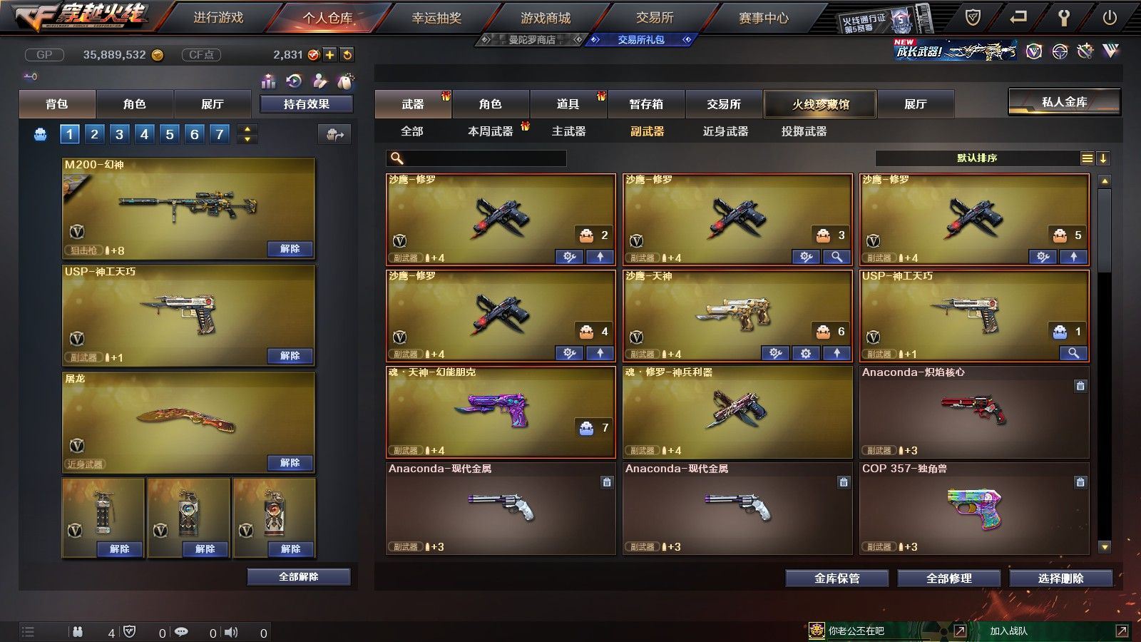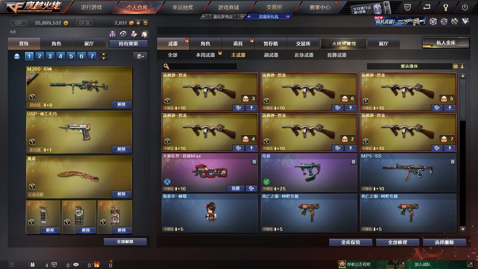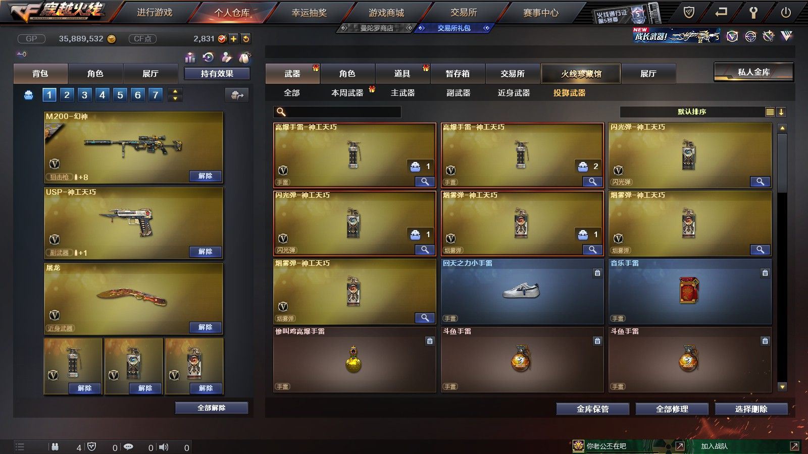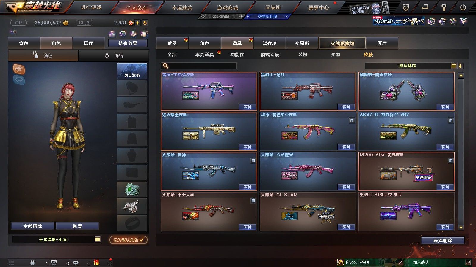【黑龙江区/77V/vip1/1传说】【传说圣灵】【竞技荣光套/6烈龙】【5盘龙】【M200-幻神】【M200-竞技荣光】【八面凌龙】【柯尔特-竞技荣光】【Scar Light-白虎】【QBZ03-金色蔷薇】【M4A1-雷神/M4A1-雷神音效卡/雷神-暗月】【柯尔特-电竞装甲/COP 357-雷霆王者】【Barrett-毁灭/Barrett-毁灭音效卡/毁灭-星空/毁灭-风暴/毁灭耀金皮肤】【AK47-火麒麟/火麒麟-CFSTAR*2/火麒麟-心动糖果/火麒麟-平天大圣】【M4A1-黑骑士/M4A1-黑骑士音效卡/黑骑士-海王*2/黑骑士耀金皮肤】【M4A1-黑龙】【无影-神兵利器】【AK47-黑武士/黑武士-锦绣游龙】【天龙-CFSTAR】【AWM-裁决】【M4A1-死神/M4A1-千变-孔明皮肤*2】【汤姆逊-烈龙*6】【RPK-盘龙*5】【加特林-炼狱*2】【斯泰尔-蝴蝶/死亡之眼*2/迷你生化手雷*3】【沙鹰-修罗/修罗-CFSTAR*2】【沙鹰-天神】【云龙扇】【麒麟刺】【擎天*2/擎天-竞技荣光】【屠龙】【龙啸】【电竞教官-云悠悠/新海豹突击队/炫/魅影/龙儿/木兰/兔囡囡/麻雀/紫霞/青霞仙子/灵狐者-黄金海岸/妲己/娟娟/潘多拉-X/斯沃特-X/影武者-X/铁骑荣耀/新娜塔莎/幻影/堕天使/复仇者】【M4A1-玫瑰精灵/M4A1-龙血/M4A1-猎神/M4A1-武圣】【白虎-电玩/AK47-B-战士/AK47-B-战神*2/AK-47-猩红传说*4】【AA-12-雷霆/AK47-黑鲨】【AN94-超新星/超新星-悦享】【Barrett-暗月传说】【Colt1911-小故障/Colt 1911-大黄蜂/柯尔特-萌杀/COP 357-青龙】【斩神刀/金刚伞-电玩红兔/迷你深渊冰龙*2/马来剑-夜魔】【神圣爆裂者-末日III*3/激光毁灭者III-白马银枪*2/激光毁灭者III*3/AK47-冰龙粉碎者/冰龙粉碎者-白马银枪*2】【黑龙吞噬者/异变清道夫/异变清道夫/斯泰尔-巧克力/轻型军用手斧-镜】【猫猫手套/火麒麟-灵狐/天龙-曼陀罗/夺魂】【高爆手雷-竞技荣光/闪光弹-竞技荣光/烟雾弹-竞技荣光】【高爆手雷-云龙*2/闪光弹-云龙/烟雾弹-云龙】【高爆手雷-雷霆】【高爆手雷-夜魔】【炫金无影】【N9语音包】【超级护目镜/透明头盔/透明护目镜/超级对讲机/超级背包/防弹头盔*6/防弹衣*6/C4工具钳*6/手雷包*4/防化服*4】
