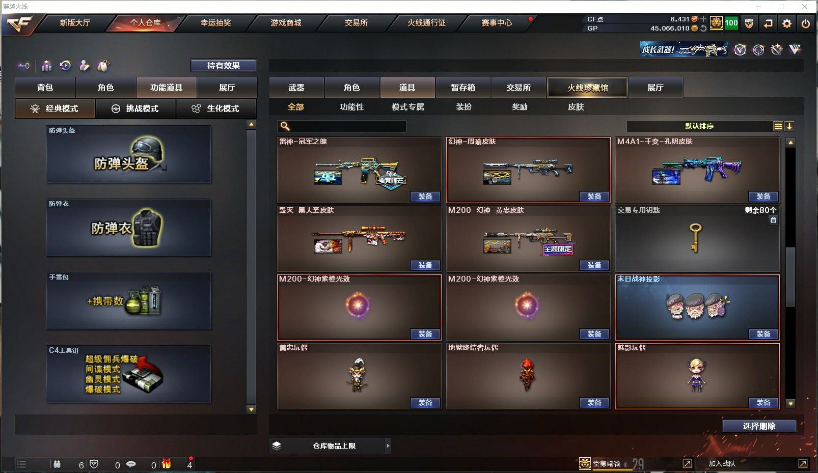 ⭐传说灵眸☀幻神白鲨周瑜冠幻黄忠皮+幻神音效卡☀王者风神白虎魄qbzAG白鲨巅峰冠军特刃神工套【北方大区/45V/vip1/1传说】【传说灵眸】【神工天巧套】【M200-幻神*2/M200-幻神音效卡/幻神-冠军之幻/M200-幻神-荣耀世冠白鲨/幻神-周瑜皮肤/M200-幻神-黄忠皮肤】【白虎之魄/王者风神】【Knife-冠军之刃*2】【柯尔特-冠军之特/USP-神工天巧*2】【QBZ03-金色蔷薇/QBZ03-金色蔷薇音效卡/QBZ03-荣耀世冠白鲨/QBZ03-巅峰荣耀皮肤/QBZ03-AG-CFPLS19冠军】【M4A1-雷神/雷神-冠军之魄/M4A1-战神赵云/雷神-暗月】【COP 357-幻灵】【Barrett-毁灭/Barrett-毁灭音效卡/毁灭-冠军之怒/毁灭-航天科技皮肤/毁灭-风暴/毁灭-战神张飞/毁灭耀金皮肤】【AK47-火麒麟/火麒麟-冠军之心/火麒麟-百城/火麒麟-CFSTAR/火麒麟-心动糖果】【M4A1-黑骑士/M4A1-黑骑士音效卡/黑骑士-AG-S4冠军典藏】【无影-神兵利器】【黑武士-锦绣游龙】【Barrett-极光】【AWM-裁决】【M4A1-千变-孔明皮肤】【汤姆逊-烈龙*2】【沙鹰-修罗*2/修罗-CFSTAR】【天神-动感闪耀】【擎天】【屠龙/屠龙-动感闪耀/屠龙-秘银】【龙啸-烈火龙威】【王者沙漠玫瑰/职业选手/关小雨/王者潘多拉/王者影豹/木兰/乔伊教练/修道士/灵狐-花神/麻雀/潘多拉-X/斯沃特-X/铁骑荣耀】【M4A1-神工天巧/M4A1-龙血*3】【AN94-超新星】【Colt1911-小故障/Colt 1911-大黄蜂*2/新USP-枪王排位奖励*2】【金刚伞/唐刀-神工天巧】【牛牛-AK47/猫猫手套/白虎-迷你小艾/M4A1-雷神-精英刀锋/COP-白鲨*2/夺魂】【高爆手雷-神工天巧*2/闪光弹-神工天巧*2/烟雾弹-神工天巧*2】【高爆手雷-幻灵*2/闪光弹-幻灵/烟雾弹-幻灵】【炫金骑士】【超级护目镜/透明头盔/透明护目镜/烟雾保护头盔/闪光护目镜/运动护目镜/炫彩背包/防弹头盔*2/防弹衣*2/C4工具钳*2/手雷包*2/防化服*2】