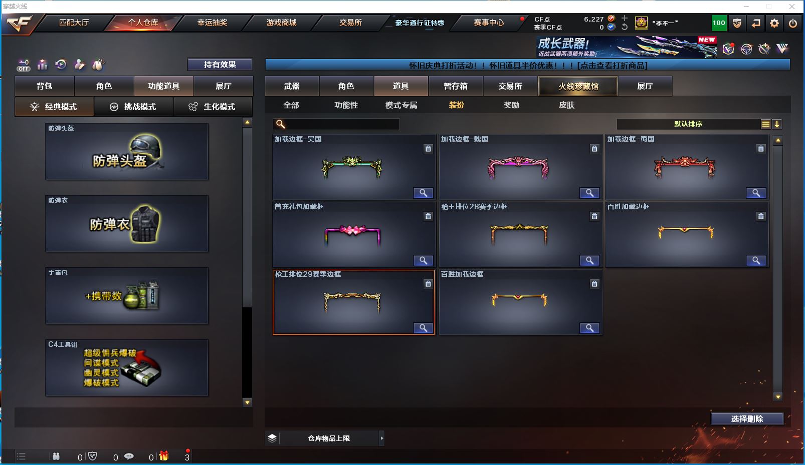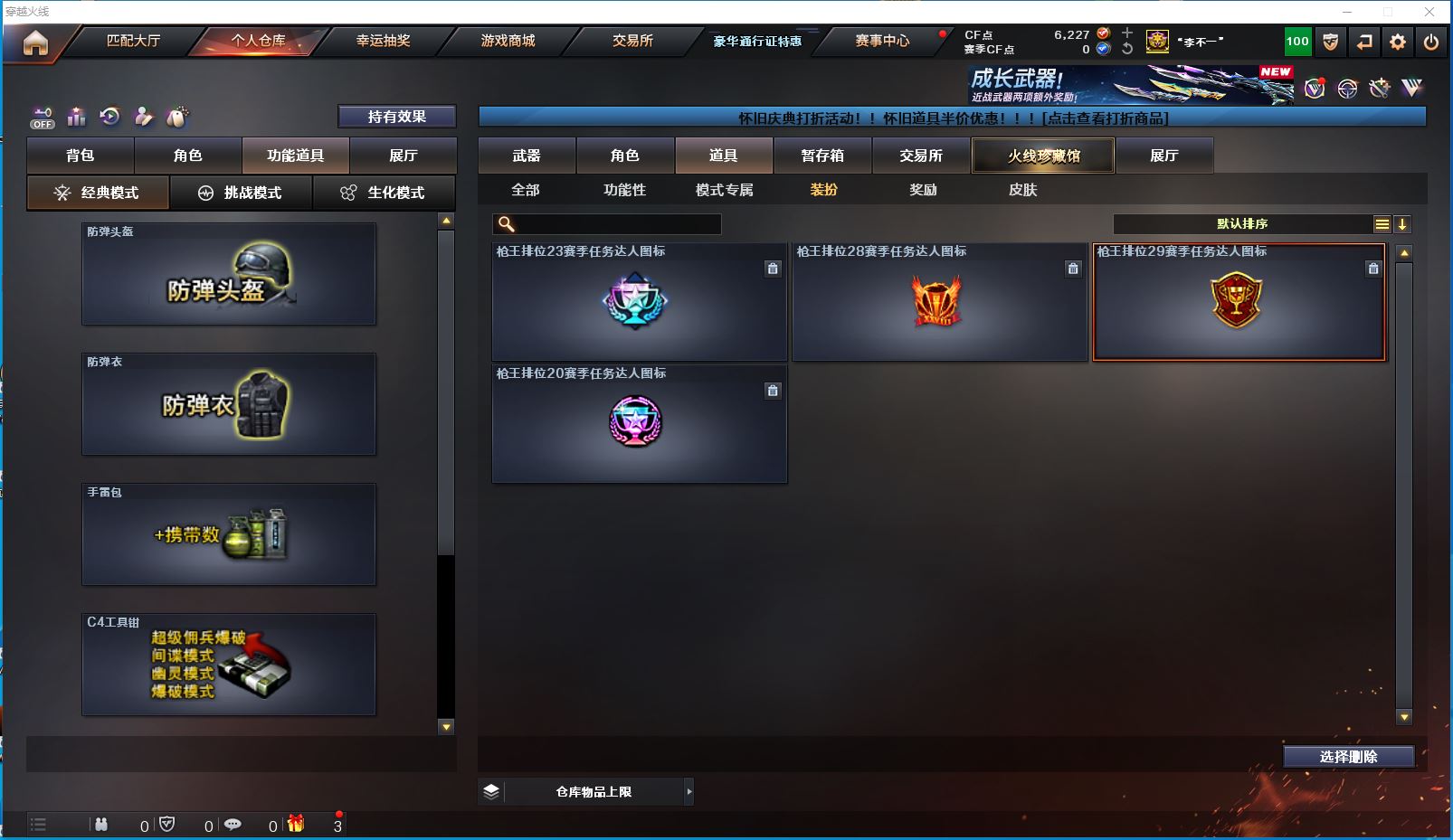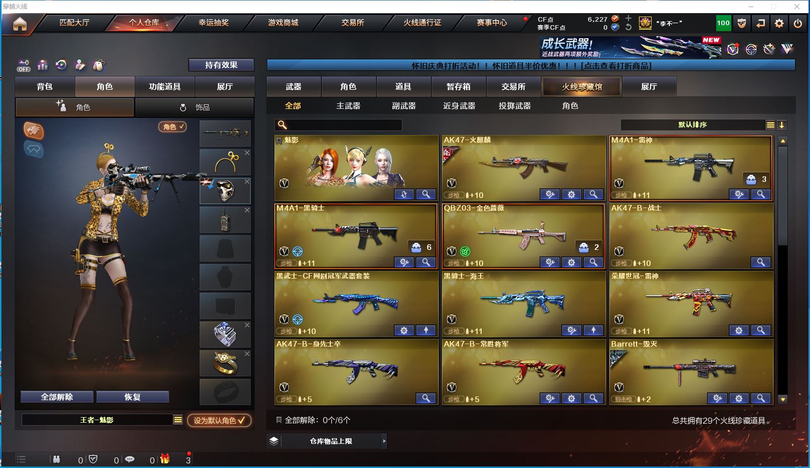1925yc-西部-四川二区-极品爆破号 【可排位】【29V】 【M200-幻神/M200-幻神音效卡/幻神-荣耀世冠白鲨2023 皮肤】【QBZ03-金色蔷薇】【M4A1-雷神/雷神-暗月*3】【Barrett-毁灭/毁灭-星空】【AK47-火麒麟/火麒麟-百城】【M4A1-黑骑士/M4A1-黑骑士音效卡/黑骑士-海王】【黑武士-CF网剧冠军】【加特林-炼狱】【沙鹰-修罗】【天神-CF网剧冠军】【麒麟刺/麒麟刺-荣耀世冠白鲨】【擎天-CF网剧冠军】【屠龙/屠龙-荣耀世冠AG】【荣耀世冠-龙啸】【王者-魅影/魅影/暗夜-X/零-水下丽影/麻雀/紫霞/妲己/娟娟/潘多拉-X/影武者-X/铁骑荣耀/幻影/堕天使/复仇者】【AK47-B-常胜将军/AK47-B-身先士卒/AK47-B-战士】【Colt 1911-大黄蜂*3/柯尔特-萌杀/COP 357-青龙/新USP-枪王排位奖励*3】【迷你深渊冰龙】【神圣爆裂者III/机甲撕裂者III/激光毁灭者III-白马银枪/冰龙粉碎者-白马银枪/阐释者III】【牛牛-AK47/迷你裂空之翼*2】【王者之啸】【高爆手雷-竞技荣光】【高爆手雷-雷霆王者/闪光弹-雷霆王者*2/烟雾弹-雷霆王者*4】【高爆手雷-堕天神/闪光弹-堕天神/烟雾弹-堕天神】【烟雾弹-幻灵】【烟雾弹-荣耀世冠白鲨2023】【超级护目镜/透明护目镜/超级对讲机/超级背包/炫彩背包/防弹头盔/防弹衣/C4工具钳*2/手雷包*2/防化服】 更多亮点详情请看图