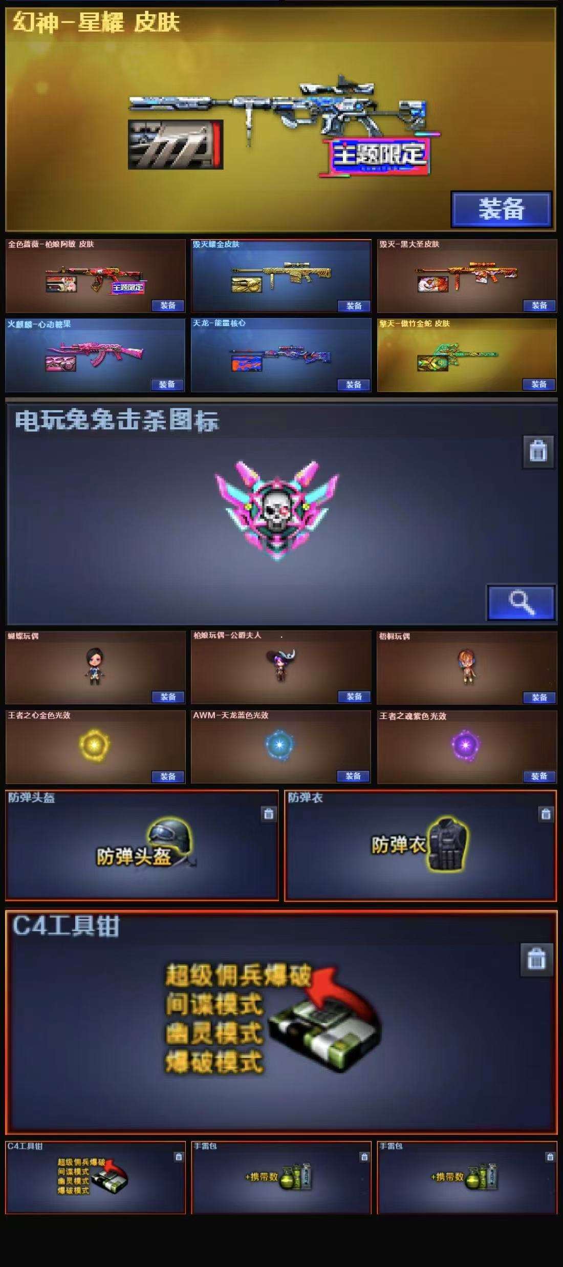 星耀幻神音效卡+星神音效卡+白虎+电玩+qbz呛娘+天罚+神工usp+4防王者春+精品基础v【37v】 【实名情况】可二次实名 【可否排位】可排位 【账号状态】无封号 【区服】上海二区 【vip】 【游戏段位】荣耀之巅97豆 【游戏等级】lv.100 高阶大元帅 【段位排名】66424 【cf点】14538 【vvip数量】37 【重要套装】 【重要角色】王者春/龙儿-小淘气/铁扇公主/女主播 【传说武器】 【英雄武器】_m200-幻神/barrett-毁灭/barrett-极光/barrett-暗月传说(2)/王者之怒-觉醒版/kar98k-星神/awm-天龙/m4a1-雷神/m4a1-龙血/_scar light-白虎/白虎-电玩/ak12-天启/ak47-火麒麟/无影-神兵利器/qbz03-天罚/qbz03-金色蔷薇/加特林-炼狱/usp-神工天巧/麒麟刺(3)/擎天/屠龙/王者之锋-觉醒版/高爆手雷-神工天巧(4)/盐雾蛋-神工天巧(4)/闪光丹-神工天巧(4) 【王者武器】王者之心/王者之魄闪光丹(2)/王者之魄盐雾蛋/王者之魄高爆手雷 【小人呛】awm-灵狐-15周年嘉年华/天龙-曼陀罗/迷你深渊冰龙/魔能飞环-曼陀罗/迷你波特博士(2)/迷你裂空之翼 【其他重要武器】m4a1-十二生肖·龙-雷神/火麒麟-暗月/黑骑士-摸金校尉/m4a1-秘银赤龙(2)/黄金ak-47/m4a1-s-火种/百城ak47/m14ebr-朋克/m4a1-c-海浪/ak47-苍龙/m4a1-xs-耀龙/m4a1-破空冰刃/ak47-丹龙/ak47-轮回/ak47-齐天大圣/hk417-红龙/9a91-平安夜/awm-pink/雷蛇awm/m200-萌杀/m200-落樱/凤凰之力/awm-s/m200-青帝/破天九龙/awm-卡通/barrett-孔明/kac-情人节2021/斯泰尔-巧克力/evo iii-赤血龙魂/死亡之眼/神圣爆裂者-末日iii(2)/cop 357-平天大圣/愤怒公牛左轮-呛王排位(2)/colt 1911-雷唤苍龙/cop357-萌杀/沙鹰-呛王排位/柯尔特-百城/usp-黑大圣/沙鹰-能量核心/cop357-朋克/新usp-呛王排位奖励/凤凰之火/mac-10-涂鸦/anaconda-雷电核心/修罗-摸金校尉/cop357-赤龙/金刚伞-电玩红兔/丛林匕首-呛王排位/猫猫手套/蝴蝶刀-呛王排位/尼泊尔军刀-战龙/斩神刀-青帝/唐刀-九五至尊/生化手雷-小钢/胜利奖杯手雷-呛王排位/闪光丹-呛王排位(3)/盐雾蛋-机甲核心/惨叫鸡手雷-惨叫迹/黄金刀锋手雷/惨叫鸡高爆手雷/手雷-能量核心 【重要武器皮肤】幻神-星耀 皮肤/毁灭耀金皮肤/毁灭-黑大圣皮肤/天龙-能量核心/火麒麟-心动糖果/金色蔷薇-呛娘阿敏 皮肤/战神-流金岁月皮肤/麒麟刺-萌杀皮肤/擎天-傲竹金蛇 皮肤 【重要光效】王者之心金色光效/王者之怒金色光效/王者之魂紫色光效/王者之锋金色光效/awm-天龙蓝色光效 【重要音效卡】m200-幻神音效卡/kar98k-星神音效卡 【重要戒指】15周年限定戒指/20赛季纪念戒指-耀金/21赛季纪念戒指-耀铜(食指)/22赛季纪念戒指-耀铜(食指)/23赛季纪念戒指-耀银(拇指)/24赛季纪念戒指-耀银(食指) /24赛季纪念戒指-耀银(拇指)/25赛季纪念戒指-耀铜(食指)/25赛季纪念戒指-耀铜(拇指) 【拥有重要玩偶】
