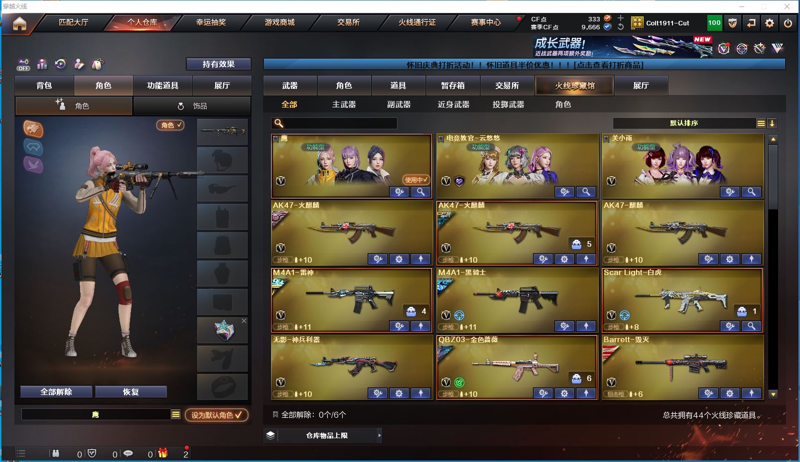 2178yc-西部-云南一区-极品爆破号【可排位】【可二次实名】【44V】连体dnf 2把炽芒蝶刃+2破浪皮肤 无冕之王 cop雷霆王者 幻神 星神炽天使 竞技荣光 蔷薇+量子皮肤 白虎 雷神十周年纪念 冠军之魄 雷神音效卡三件套 火麒麟三件套 黑骑士三件套 7套雷 云悠悠 鹰 3音效卡 连体DNF:剑魂武器13全身10 奶妈武器11全身10 鬼泣武器13全身10 刃影武器13全身10 散打武器13全身10 枪炮狮武器13全身10 漫游武器12全身10 剑魂武器13全身10 等连体小极品【鹰】【M200-幻神】【M200-竞技荣光】【星神-炽天使】【炽芒蝶刃*2/炽芒蝶刃-破浪逐光 皮肤*2】【柯尔特-无冕之王】【Scar Light-白虎】【QBZ03-金色蔷薇/金色蔷薇-破浪逐光 皮肤】【M4A1-雷神/雷神-冠军之魄】【COP 357-雷霆王者】【Barrett-毁灭/Barrett-毁灭音效卡/毁灭-冠军之怒】【AK47-火麒麟*2/AK47-火麒麟音效卡/火麒麟-CFSTAR/火麒麟-心动糖果】【M4A1-黑骑士/M4A1-黑骑士音效卡/黑骑士-CFS2021】【无影-神兵利器】【炼狱-悦蓝】【擎天/擎天-竞技荣光】【电竞教官-云悠悠/关小雨/王者炫/卡塔琳娜/木兰/乔伊教练/兔囡囡/灵狐-花神/麻雀/紫霞/妲己/娟娟/斯沃特-X/幻影/堕天使】【Colt1911-小故障*2/Colt 1911-大黄蜂/柯尔特-萌杀/新USP-枪王排位奖励*2】【雷霆王者之锋/金刚伞-电玩红兔】【冰龙粉碎者-白马银枪】【雷神-枪娘蕾安娜】【高爆手雷-竞技荣光*6/闪光弹-竞技荣光*7/烟雾弹-竞技荣光*6】【高爆手雷-雷霆王者*2/闪光弹-雷霆王者/烟雾弹-雷霆王者】【透明头盔/透明护目镜/烟雾保护头盔/闪光护目镜/超级对讲机/超级背包/防弹头盔*3/防弹衣*3/C4工具钳*3/手雷包*3/防化服*3】 更多亮点详情请看