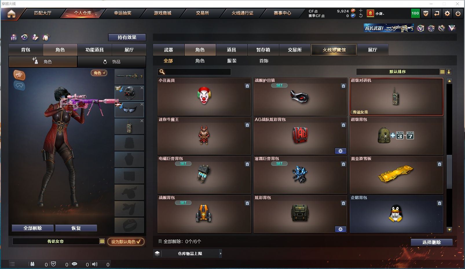 ✨HLL传说女帝+冠军之刃✨幻神音效卡+宠儿巅峰17周瑜降龙黄忠皮✨2把冠军之特+USP雷暴+柯尔特竞技✨白虎✨蔷薇音效卡+冠军之薇枪娘皮✨四防云悠悠+4防王者葵+4防王者魅影+4防王者沙漠玫瑰✨【浙江一区/38V/vip1/1传说】【传说女帝】【M200-幻神/M200-幻神音效卡/幻神-宠儿-2021MVP/幻神-巅峰荣耀/幻神-周瑜皮肤/幻神-AG-CFPLS17冠军/幻神-降龙/M200-幻神-黄忠皮肤】【Knife-冠军之刃】【柯尔特-冠军之特*2/柯尔特-竞技荣光/USP-雷暴】【Scar Light-白虎】【QBZ-03-王者蔷薇/QBZ03-金色蔷薇/QBZ03-金色蔷薇音效卡/QBZ03-冠军之薇/金色蔷薇-枪娘阿敏 皮肤】【M4A1-雷神/雷神-荣耀之魄/雷神-冠军之魄/雷神-传奇N9】【Barrett-毁灭/毁灭-SV-CFPLS16冠军】【AK47-火麒麟*2/AK47-火麒麟音效卡/火麒麟-CFSTAR/火麒麟-心动糖果】【M4A1-黑骑士/M4A1-黑骑士音效卡/黑骑士-冠军之势】【HK417-朱雀】【天龙-CFSTAR/AWM-天龙-传奇白鲨】【AWM-裁决】【M4A1-千变-孔明皮肤】【沙鹰-修罗*3】【沙鹰-天神*2】【擎天】【屠龙】【王者沙漠玫瑰/电竞教官-云悠悠/职业选手/王者-魅影/王者-葵-貂蝉/龙儿-小淘气/暗夜-X/麻雀/青霞仙子/娟娟/潘多拉-X/斯沃特-X/救世主-X/堕天使/复仇者】【AK47-B-常胜将军/AK47-B-身先士卒/AK47-B-战士/AK-47-猩红传说】【AN94-超新星】【Barrett-暗月传说】【Colt 1911-大黄蜂*2/柯尔特-萌杀/COP 357-青龙/新USP-枪王排位奖励*4】【斩魔刀/金刚伞/马来剑-夜魔】【激光毁灭者III】【牛牛-AK47/COP-旗袍】【王者之心/王者之击】【高爆手雷-竞技荣光/闪光弹-竞技荣光/烟雾弹-竞技荣光】【闪光弹-幻灵*2】【高爆手雷-夜魔/闪光弹-夜魔/烟雾弹-夜魔】【烟雾保护头盔/闪光护目镜/超级对讲机/超级背包/炫彩背包/防弹头盔/防弹衣/C4工具钳/手雷包/防化服】