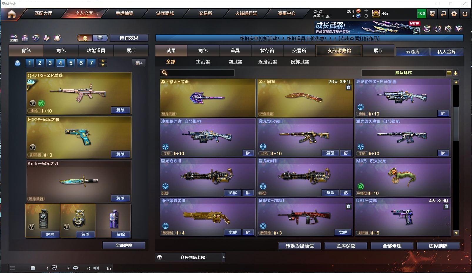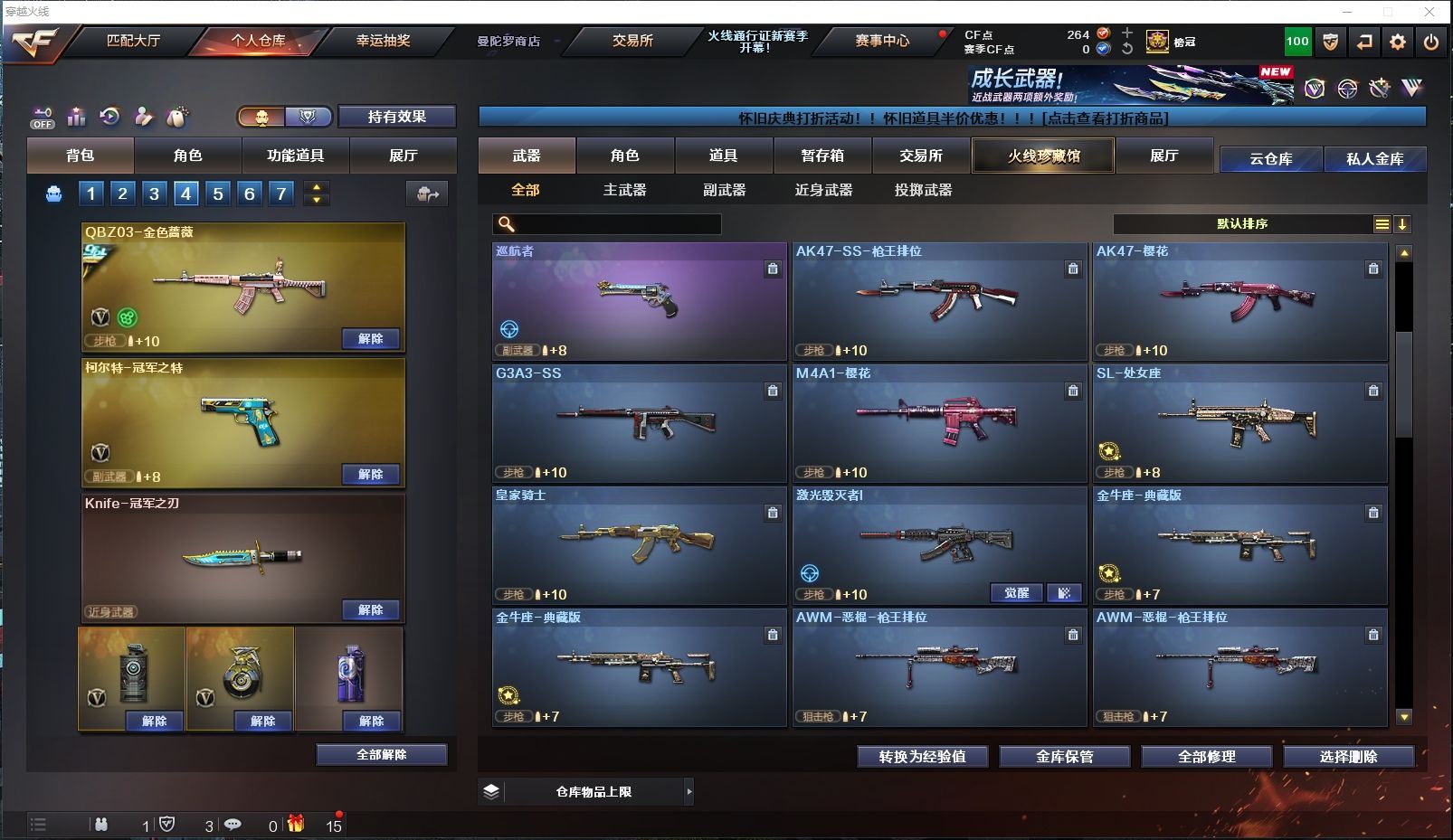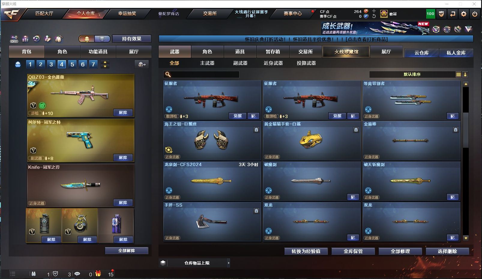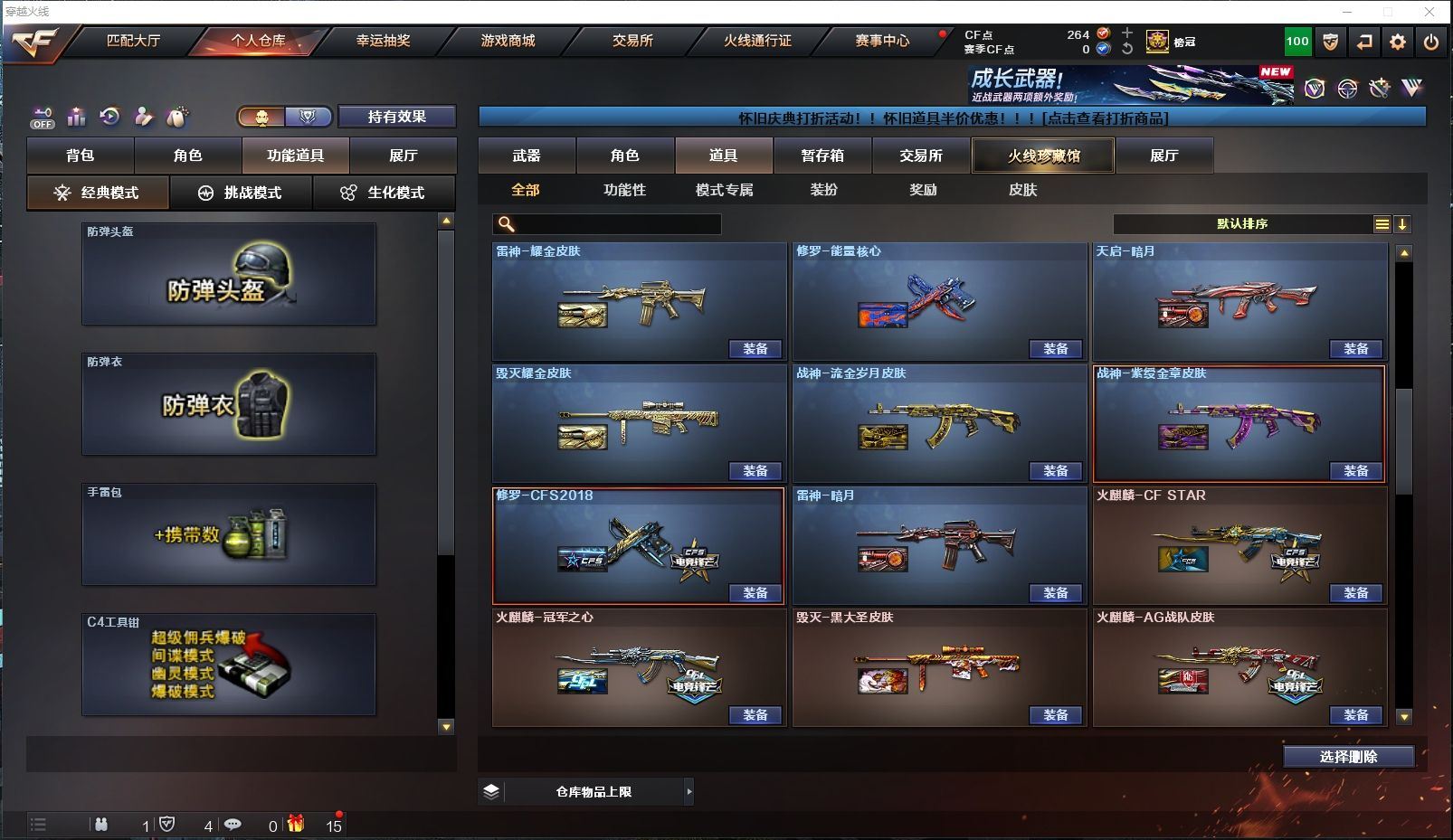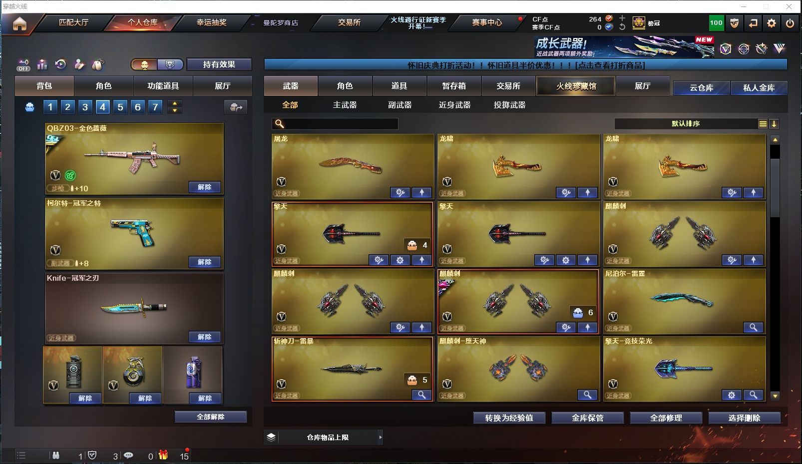 165V✨HLL幻兽套+炽芒蝶刃+2把冠军之刃✨HLL幻神音效卡+冠军之幻皮✨竞技荣光套✨3把冠军之特+USP雷暴+COP雷霆+COP雷霆王者+柯尔特竞技✨白虎+热带奇洋皮✨金色蔷薇+冠军之薇皮✨小钢蝴蝶炎龙+6盘6烈4炼狱✨四防云悠悠+四防晴雅+四防王者葵貂蝉+四防王者零国色天香【四川一区/151V/vip1】【竞技荣光套/武圣套/6烈龙/6盘龙】【M200-幻神/M200-幻神音效卡/幻神-冠军之幻】【M200-竞技荣光】【星神-长生圣莲】【炽芒蝶刃】【Knife-冠军之刃*2/黄金猫猫手套-白鲨】【柯尔特-冠军之特*3/柯尔特-竞技荣光/USP-雷暴】【Scar Light-白虎/白虎-热带奇洋 皮肤】【QBZ03-金色蔷薇/QBZ03-冠军之薇】【M4A1-雷神*4/M4A1-雷神音效卡/雷神-冠军之魄/雷神-HeartShot 皮肤/雷神-机甲刑天皮肤/雷神-耀金皮肤/雷神-星空/雷神-暗月/雷神-能量核心/雷神-虎将】【Glock18-武圣/COP 357-雷霆王者/沙鹰-幻兽/雷霆之契】【Barrett-毁灭*2/Barrett-毁灭音效卡/毁灭-荣耀之怒/毁灭-冠军之怒/毁灭-星空/毁灭-魔灵皮肤/毁灭耀金皮肤】【AK47-火麒麟*2/火麒麟-冠军之心/AK47-火麒麟-传奇EVEN/火麒麟-百城/火麒麟-CFSTAR*2/火麒麟-心动糖果/火麒麟-雷神】【M4A1-黑骑士*5/M4A1-黑骑士音效卡*2】【M4A1-黑龙/黑龙-能量核心】【AK47-无影/无影-神兵利器/无影-霓裳皮肤】【AK47-黑武士】【AWM-天龙*3】【Barrett-极光】【AWM-裁决】【M4A1-死神/死神-秘银*2】【汤姆逊-烈龙*6】【RPK-盘龙*6】【加特林-炼狱*2/炼狱-悦蓝】【斯泰尔-蝴蝶/死亡之眼/迷你生化手雷*5】【沙鹰-修罗*3/修罗-能量核心】【沙鹰-天神*2】【女皇利刃-幻兽/云龙扇】【麒麟刺*3/麒麟刺-萌杀皮肤】【擎天*2/擎天-竞技荣光*2/擎天-惨叫迹】【屠龙*5/屠龙-荣耀之锋】【龙啸*2】【电竞教官-云悠悠/炫/晴雅/王者-葵-貂蝉/王者-零-国色天香/王者-救世主/魅影/龙儿-小淘气/暗夜-X/铁骑-乘风破浪/兰-海滩派对/樱-缤纷夏日/狐影/木兰/奇洋探员/修道士/零-水下丽影/萌儿/麻雀/灵狐者-黄金海岸/雪莉杨/蜀雪/娟娟/潘多拉-X/斯沃特-X/救世主-X/影武者-X/铁骑荣耀/幻影/堕天使/复仇者】【M4A1-玫瑰精灵/M4A1-龙血/M4A1-雷霆/M4A1-武圣】【AK47-B-战士/AK47-B-战神/AK-47-猩红传说】【AA-12-雷霆*2/AK12-天启/天启-暗月】【AN94-超新星/超新星-热带奇洋】【Barrett-朱雀】【Colt 1911-大黄蜂*5/柯尔特-萌杀*4/新USP-枪王排位奖励】【龙啸-热带奇洋/斩魔刀/斩神刀】【神圣爆裂者III/激光毁灭者III-白马银枪/激光毁灭者III/冰龙粉碎者-白马银枪*2/征服者*2】【炼狱-迷你小钢/斯泰尔-巧克力】【猫猫手套/C.A.T/COP-旗袍/M37-葵/夺魂/MK5-炽火炎龙/金色小号】【王者之心/王者之刺/王者之魄/王者之击/王者之武】【高爆手雷-幻兽/闪光弹-幻兽/烟雾弹-幻兽】【高爆手雷-竞技荣光*5/闪光弹-竞技荣光*5/烟雾弹-竞技荣光*4】【闪光弹-云龙/烟雾弹-云龙】【高爆手雷-雷暴*3/闪光弹-雷暴*3/烟雾弹-雷暴*3】【高爆手雷-雷霆*7/闪光弹-雷霆*7/烟雾弹-雷霆*7】【高爆手雷-雷霆王者/闪光弹-雷霆王者/烟雾弹-雷霆王者】【高爆手雷-堕天神/闪光弹-堕天神/烟雾弹-堕天神】【炫金毁灭】【超级护目镜/透明头盔/透明护目镜/烟雾保护头盔/闪光护目镜*2/超级对讲机/超级背包/炫彩背包/防弹头盔*6/防弹衣*6/C4工具钳*6/手雷包*6/防化服*2】【皮肤多多~玩偶多多~源武器多多~注意事项;各种道具详情看截图、低价出售、截图展示段位不代表实际段位,如赛季更新等不可抗拒因素发生变化时限道具不保证所剩时间】