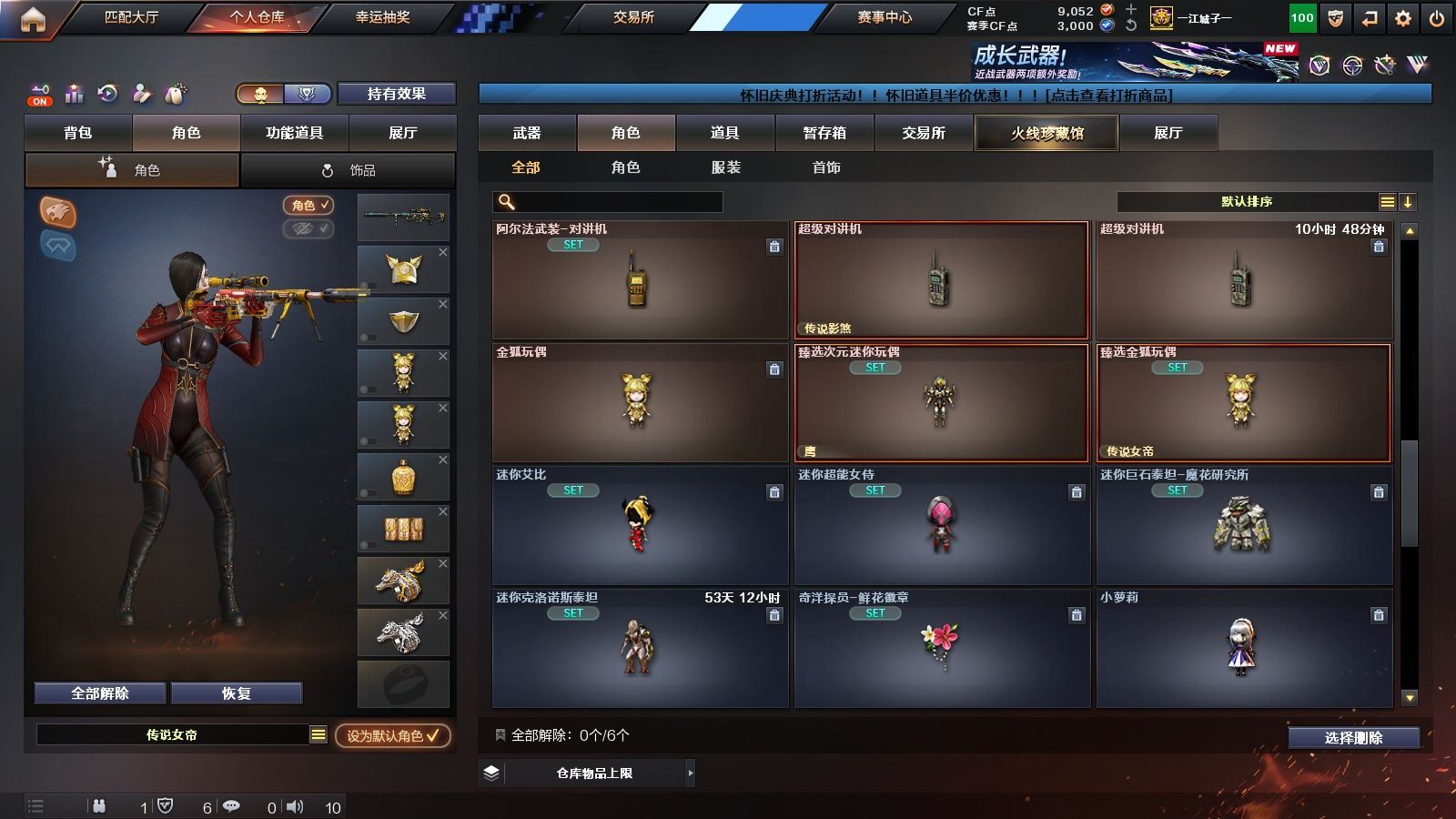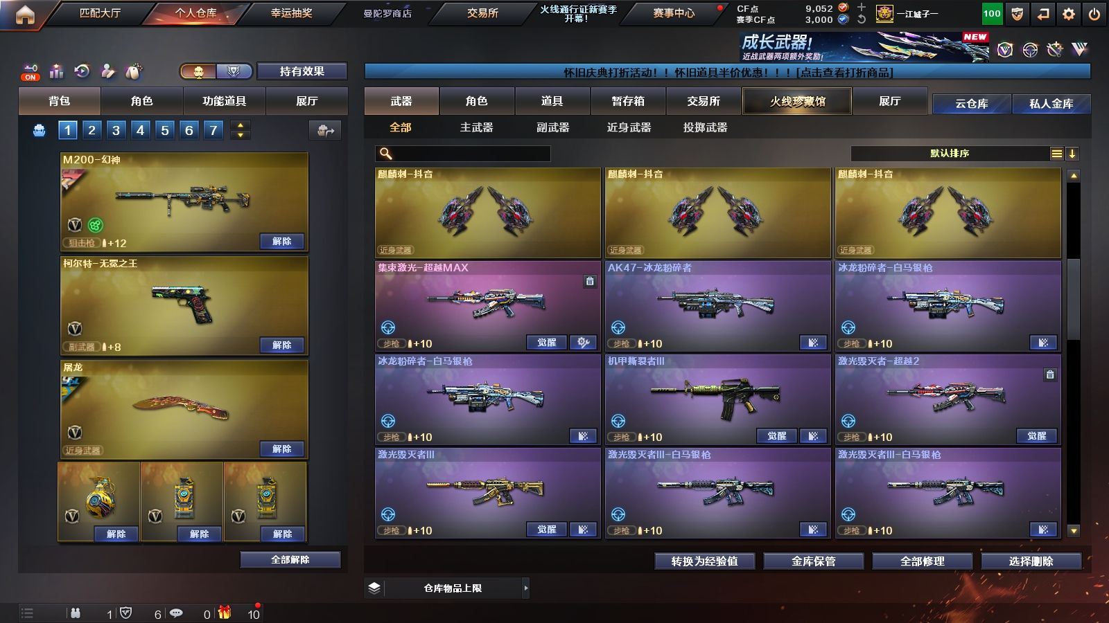 146V✨HLL四把炽芒蝶刃+泡泡象+四防传说女帝+四防传说影煞+幽瞳+夜影+破晓✨小钢秦师枪娘蝴蝶清道夫炎龙+5盘6烈2炼狱+八面凌龙+2把MAC千针棘鲨✨幻神音效卡+CF22皮✨王者星霆+金蚀✨2把COP云龙+2把COP雷霆王者+无冕之王✨白虎+巅峰AG奇洋皮+白虎之魄+白虎电玩✨蔷薇音效卡+CF24奇洋皮-QBZ云龙✨四防云悠悠+四防谜+四防晴雅+四防鹰+四防雨墨+四防王者影豹✨擎天柱+封神放逐者+试炼破坏者+挑战9阶段+168金狐+168次元+5黑骑+7白虎+6天罚✨【江西一区/116V/vip1/6传说】【传说女帝/传说影煞/传说夜影/传说幽瞳】【鹰/华】【6烈龙】【5盘龙】【M200-幻神/M200-幻神音效卡/幻神-CFS2022】【白虎之魄】【炽芒蝶刃*4】【VSK-94-金蚀*2/QBZ03-云龙*2/八面凌龙】【柯尔特-无冕之王】【Scar Light-白虎*5/白虎-巅峰荣耀 皮肤/白虎-热带奇洋 皮肤/白虎-AG-CFPLS20冠军】【QBZ03-金色蔷薇/QBZ03-金色蔷薇音效卡/QBZ03-CFS2024 皮肤/金色蔷薇-热带奇洋 皮肤】【QBZ03-天罚*6/QBZ03-天罚音效卡】【M4A1-雷神*3/雷神-HeartShot 皮肤/雷神-宇航兔皮肤】【COP 357-雷霆王者/COP 357-云龙*2】【Barrett-毁灭】【AK47-火麒麟/火麒麟-CFSTAR/火麒麟-心动糖果/火麒麟-平天大圣】【M4A1-黑骑士*5】【M4A1-黑龙】【HK417-朱雀】【无影-神兵利器】【黑武士-锦绣游龙】【Barrett-极光】【汤姆逊-烈龙*6】【RPK-盘龙*5】【加特林-炼狱/炼狱-月 皮肤】【斯泰尔-蝴蝶/迷你生化手雷*2】【沙鹰-修罗*4】【沙鹰-天神/天神-动感闪耀】【云龙扇】【麒麟刺】【擎天*2/擎天-冠军之击/擎天-云海游龙/擎天-蒸汽钟表 皮肤】【屠龙*2/屠龙-荣耀之锋/屠龙-动感闪耀/屠龙-春桃 皮肤】【龙啸-烈火龙威】【电竞教官-云悠悠/机械姬/晴雅/王者影豹/王者樱-热浪之夏/魅影/雨棠/龙儿-小淘气/灵动武士/雨墨/炽天使/木兰/奇洋探员/云海玲珑/乔伊教练/兔囡囡/超能特工/妲己/潘多拉-X/斯沃特-X/铁骑荣耀/幻影/堕天使】【M4A1-青龙】【白虎-电玩/AK47-B-战神/AK-47-猩红传说*2】【超新星-热带奇洋】【Barrett-朱雀/Barrett-暗月传说】【COP 357-青龙/新USP-枪王排位奖励】【龙啸-热带奇洋/雷霆王者之锋/金刚伞-电玩红兔/迷你深渊冰龙】【神圣爆裂者III/神圣爆裂者-末日III*2/机甲撕裂者III/VEPR-12-金魔*2/KAC-圣炎切割者III/激光毁灭者III-白马银枪*2/激光毁灭者III/AK47-冰龙粉碎者/冰龙粉碎者-白马银枪*2】【炼狱-迷你小钢/异变清道夫/异变清道夫】【炼狱-枪娘掣电/海滩汪汪-巴雷特/黄金迷你深渊冰龙/迷你裂空之翼*6/夺魂*5/MK5-炽火炎龙】【王者云击/王者星霆*2】【闪光弹-竞技荣光/烟雾弹-竞技荣光】【高爆手雷-云龙*5/闪光弹-云龙*7/烟雾弹-云龙*7/手雷-云海游龙】【高爆手雷-雷霆王者*3/闪光弹-雷霆王者/烟雾弹-雷霆王者】【高爆手雷-神工天巧*3/闪光弹-神工天巧*2】【高爆手雷-幻灵】【手雷-热带奇洋】【炫金无影/炫金骑士】【语音特效-云海游龙】【超级护目镜/闪光护目镜/超级对讲机/防弹头盔*2/防弹衣*2/C4工具钳*2/手雷包*2/防化服】【皮肤多多~玩偶多多~源武器多多~注意事项;各种道具详情看截图、低价出售、截图展示段位不代表实际段位,如赛季更新等不可抗拒因素发生变化时限道具不保证所剩时间】