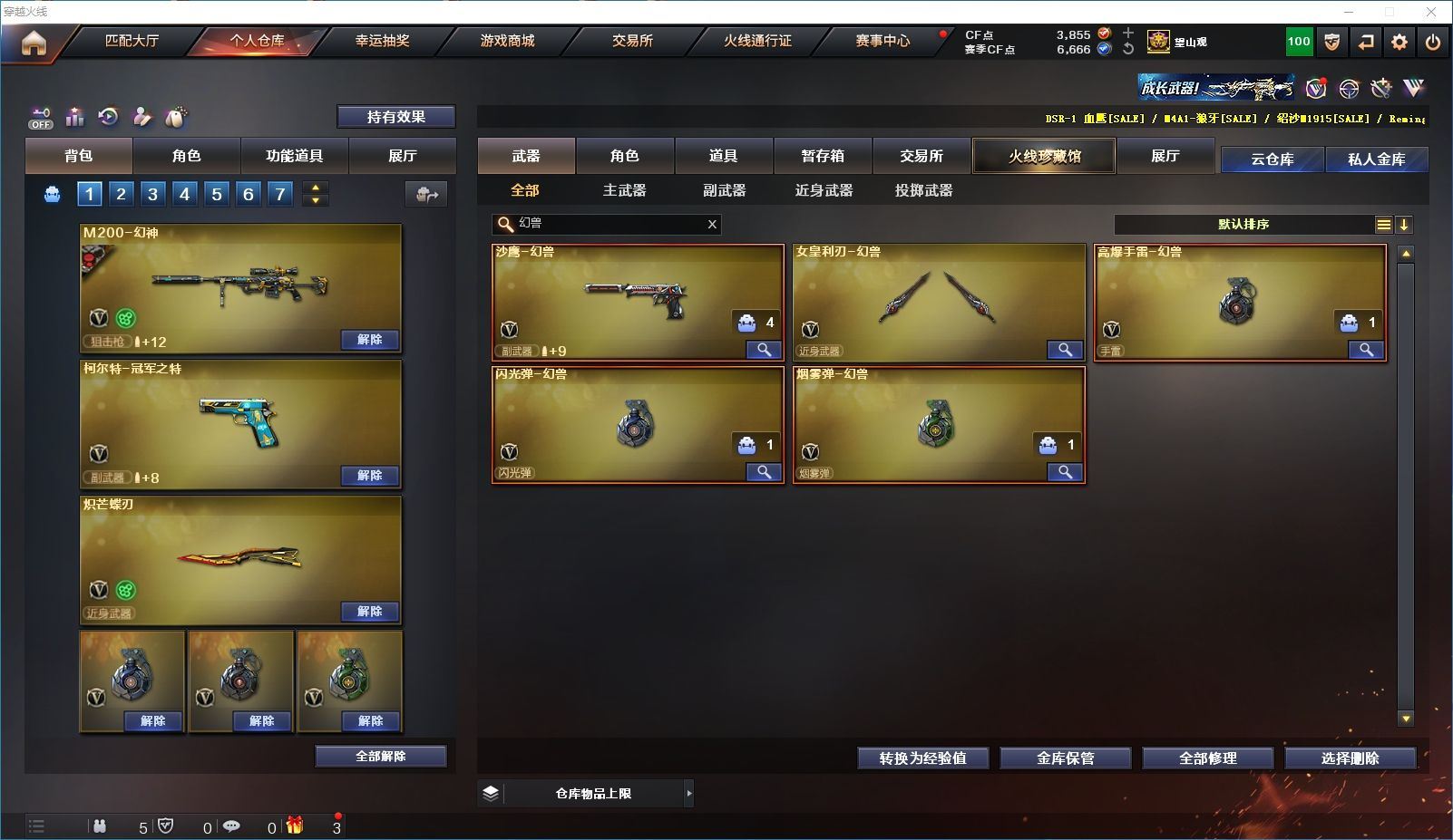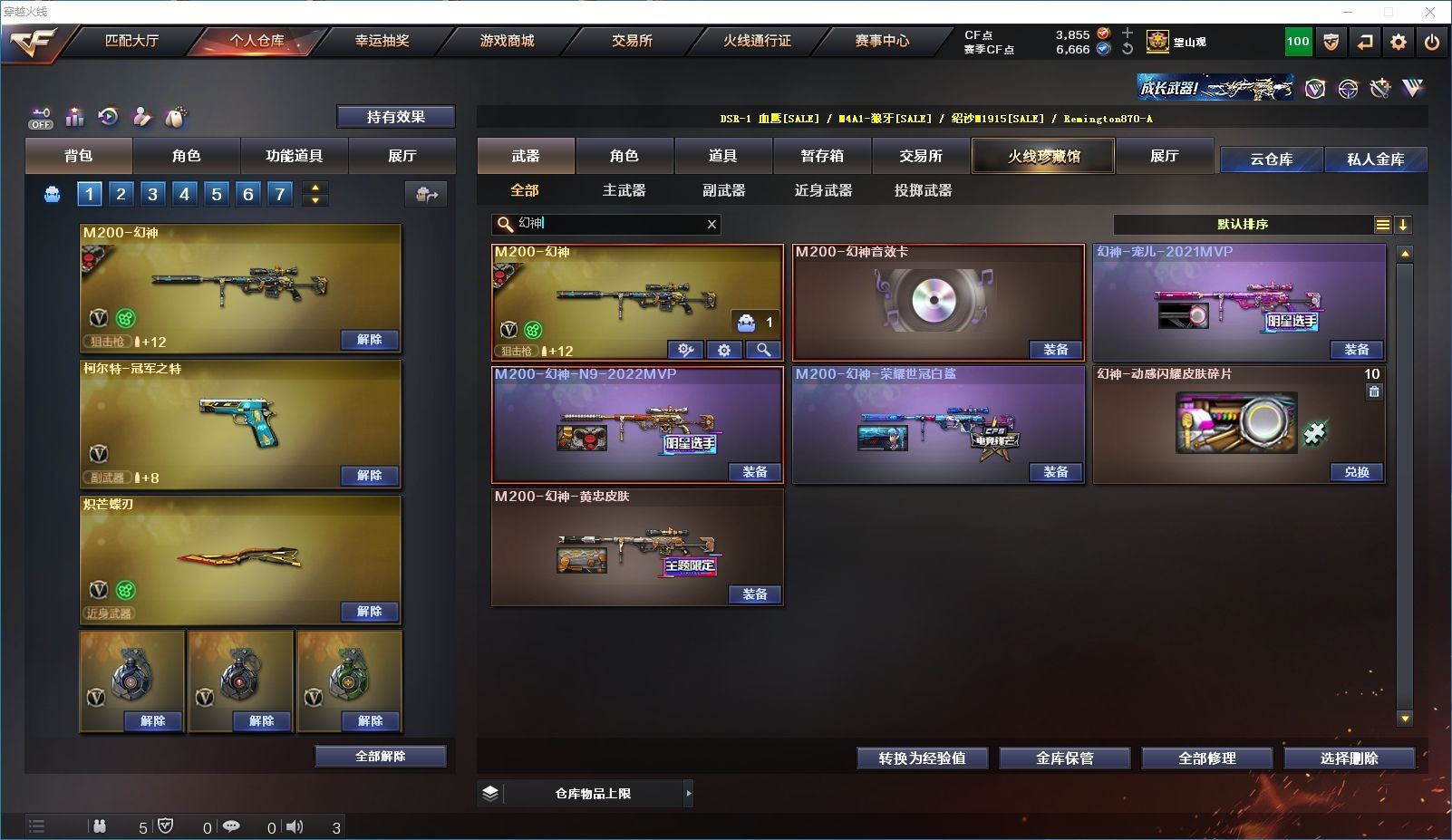 115V✨幻兽套+影煞✨幻神4皮宠儿-世冠白鲨-N9-黄忠+幻神音效卡✨蝶刃-毒蜂6烈7盘2炼狱生化道具齐全✨白虎大汉风骨-qbz蔷薇✨冠军之特+usp神工✨4防王者玲珑小乔+4防暗夜审判✨【江苏一区/106V/vip1/1传说】【传说影煞】【6烈龙/6盘龙/6修罗】【M200-幻神/M200-幻神音效卡/幻神-宠儿-2021MVP/M200-幻神-N9-2022MVP/M200-幻神-荣耀世冠白鲨/M200-幻神-黄忠皮肤】【Kar98K-星神音效卡/星神-破竹皮肤】【炽芒蝶刃】【柯尔特-冠军之特/USP-神工天巧】【Scar Light-白虎/白虎-大汉风骨】【QBZ03-金色蔷薇*2】【M4A1-雷神*4/M4A1-雷神音效卡/雷神-荣耀之魄/M4A1-雷神-白鲨皮肤/雷神-耀金皮肤】【沙鹰-幻兽】【Barrett-毁灭*4/Barrett-毁灭音效卡/巴雷特-毁灭-CFPL冠军/毁灭-荣耀之怒/毁灭耀金皮肤】【AK47-火麒麟*3/AK47-火麒麟音效卡/火麒麟-CFSTAR*2/火麒麟-大唐荣光】【M4A1-黑骑士*3/M4A1-黑骑士音效卡/黑骑士-地狱火】【M4A1-黑龙*2/黑龙-能量核心】【AK47-无影*2/无影-能量核心*2】【黑武士-锦绣游龙】【AWM-天龙*3/天龙-秘银】【Barrett-极光*4/极光-能量核心】【M4A1-千变】【汤姆逊-烈龙*6】【RPK-盘龙*7】【加特林-炼狱*2】【死亡之眼/迷你生化手雷】【沙鹰-修罗*9/修罗-CFSTAR】【沙鹰-天神】【女皇利刃-幻兽】【麒麟刺】【擎天*2】【屠龙*6/屠龙-荣耀之锋*2/屠龙-星火燎原*2】【龙啸*10】【王者玲珑-小乔/王者樱-热浪之夏/暗夜-X/葵-赛博朋克/幽/奇洋探员/乔伊教练/零-水下丽影/麻雀/紫霞/潘多拉-X/影武者-X/铁骑荣耀/幻影/堕天使/复仇者】【M4A1-玫瑰精灵/M4A1-龙血*6】【AK47-B-身先士卒/AK47-B-战士/AK47-B-战神/AK-47-猩红传说/玫瑰精灵-悦动】【AK47-黑鲨/天启-暗月】【超新星-悦享/超新星-热带奇洋】【Colt 1911-大黄蜂*3/新USP-枪王排位奖励*5】【龙啸-热带奇洋/金刚伞/迷你深渊冰龙*2】【神圣爆裂者III/AK47-冰龙粉碎者/冰龙粉碎者-白马银枪/阐释者III】【斯泰尔-巧克力/轻型军用手斧-镜】【C.A.T/COP-白鲨/迷你宝贝*2】【王者之心/王者炎心/王者之魄/王者冰魄/王者之鲨/王者之魂/王者之啸/王者之武】【高爆手雷-幻兽/闪光弹-幻兽/烟雾弹-幻兽】【高爆手雷-神工天巧*3/闪光弹-神工天巧*2/烟雾弹-神工天巧*3】【手雷-热带奇洋】【炫金雷神/炫金毁灭】【闪光护目镜/运动护目镜/超级背包/炫彩背包/防弹头盔*4/防弹衣*4/C4工具钳*5/手雷包*4/防化服*3】