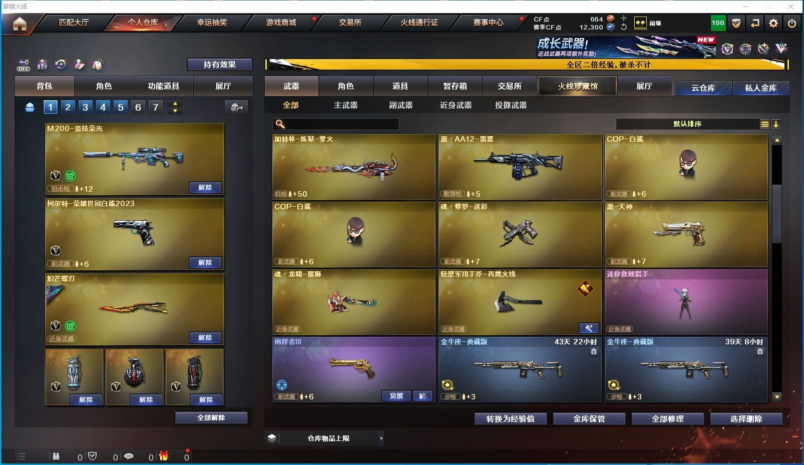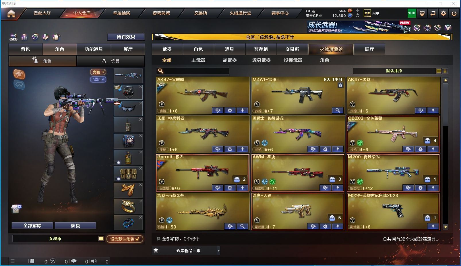 【河南一区/39V/vip1】【M200-竞技荣光】【炽芒蝶刃/炽芒蝶刃-破浪逐光 皮肤】【柯尔特-荣耀世冠白鲨2023】【QBZ03-金色蔷薇/金色蔷薇-破浪逐光 皮肤】【AK47-火麒麟/火麒麟-CFSTAR/火麒麟-心动糖果】【无影-神兵利器】【黑武士-锦绣游龙】【Barrett-极光/Barrett-极光音效卡/极光-能量核心】【AWM-裁决】【沙鹰-天神】【云龙扇】【麒麟刺】【擎天/擎天-冠军之击/擎天-竞技荣光/擎天-蒸汽钟表 皮肤】【屠龙/屠龙-破浪逐光 皮肤】【龙啸】【暗夜-X/女战神/木兰/修道士/潘多拉-X/斯沃特-X/救世主-X/幻影】【AK47-黑鲨】【迷你深渊冰龙/马来剑-夜魔】【阐释者III】【COP-白鲨*2】【高爆手雷-竞技荣光*3/闪光弹-竞技荣光*2/烟雾弹-竞技荣光*3】【高爆手雷-云龙/闪光弹-云龙*2/烟雾弹-云龙*2】【高爆手雷-夜魔/闪光弹-夜魔/烟雾弹-夜魔】【烟雾保护头盔/闪光护目镜/超级对讲机/防弹头盔*5/防弹衣*5/C4工具钳*5/手雷包*5/防化服*2】