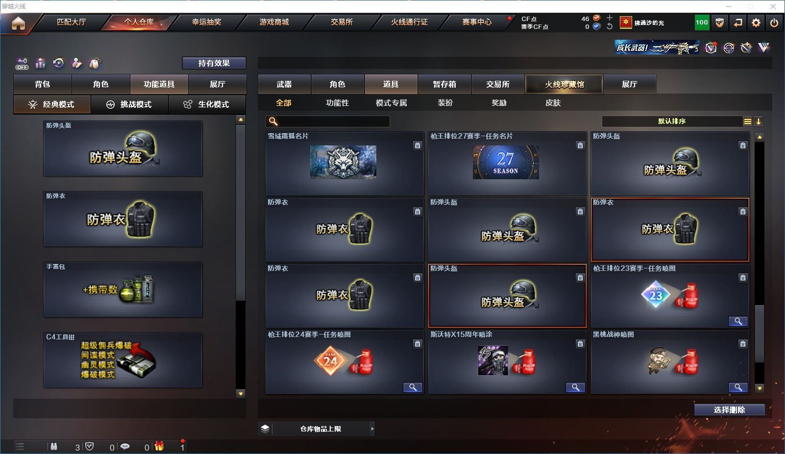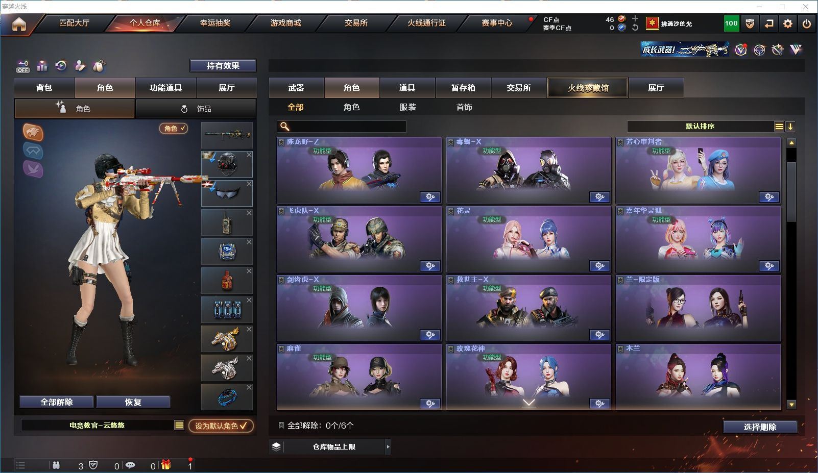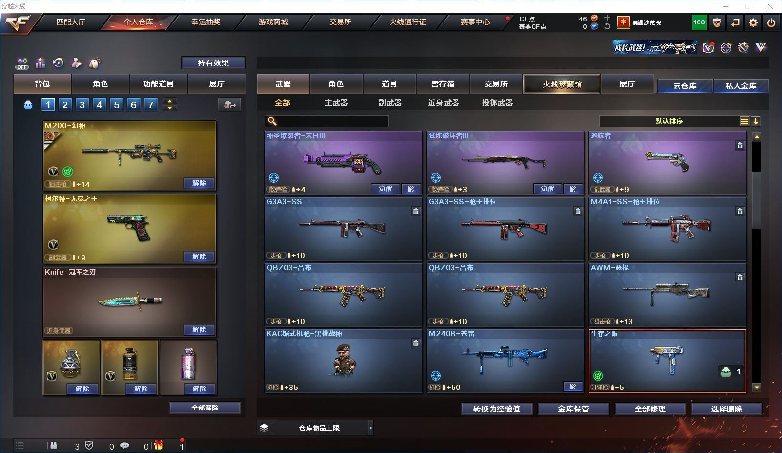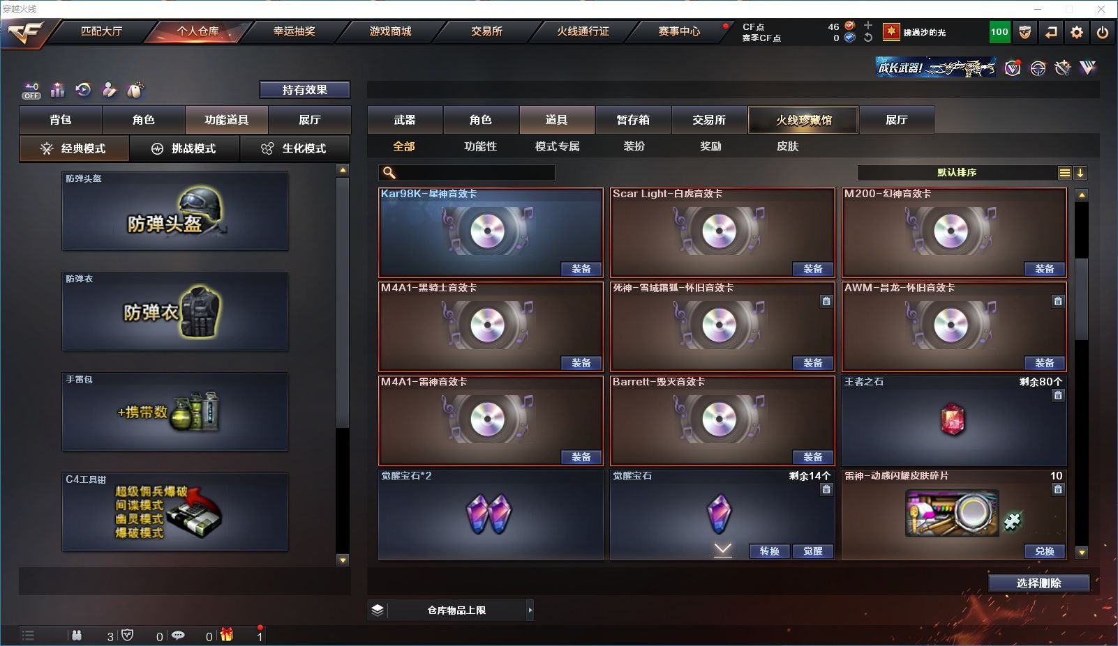 【上海一区/82V/vip1】【M200-幻神/M200-幻神音效卡/幻神-宠儿-2021MVP/幻神-纸灯龙皮肤/幻神-Heartshot 皮肤/幻神-荣耀世冠白鲨2023 皮肤】【Kar98K-星神/Kar98K-星神音效卡/星神-璀璨皮肤/星神-枪娘默 皮肤】【炽芒蝶刃/炽芒蝶刃-荣耀世冠白鲨2023 皮肤/炽芒蝶刃-破浪逐光 皮肤】【Knife-冠军之刃】【柯尔特-无冕之王/荣耀世冠-柯尔特/柯尔特-赛博朋克/USP-雷暴】【Scar Light-白虎/Scar Light-白虎音效卡/白虎-AG-CFPLS20冠军/白虎-霓虹机甲 皮肤】【QBZ03-金色蔷薇*2/QBZ03-传奇宠儿/金色蔷薇-破浪逐光 皮肤】【M4A1-雷神*2/M4A1-雷神音效卡/雷神-宠儿-2019MVP/雷神-冠军之魄/雷神-传奇N9/雷神-R.LGD-CFPLS18冠军/雷神-耀金皮肤/雷神-维纳斯皮肤】【COP 357-雷霆王者/COP 357-幻灵/COP 357-云龙】【Barrett-毁灭*2/Barrett-毁灭音效卡/巴雷特-毁灭-CFPL冠军/毁灭-云海游龙皮肤】【AK47-火麒麟*2/火麒麟-CFSTAR/火麒麟-心动糖果/火麒麟-华夏之心】【M4A1-黑骑士/M4A1-黑骑士音效卡/黑骑士-冠军之势/黑骑士-CFS2021/黑骑士-伏羲】【M4A1-黑龙/黑龙-冠军之武/黑龙-墨子皮肤/黑龙-能量核心】【AK47-无影/无影-神兵利器】【黑武士-锦绣游龙】【Barrett-极光】【AWM-裁决】【M4A1-千变-孔明皮肤】【烈龙-云海游龙*2】【沙鹰-修罗*2/修罗-CFSTAR/修罗-星空】【沙鹰-天神*2/天神-动感闪耀】【云龙扇】【擎天-云海游龙/擎天-竞技荣光】【屠龙/屠龙-动感闪耀】【荣耀世冠-龙啸/龙啸/龙啸-冠军之啸/龙啸-纸灯龙皮肤/龙啸-烈火龙威】【电竞教官-云悠悠/关小雨/王者-瞳-闭月羞花/暗夜-X/木兰/奇洋探员/云海玲珑/乔伊教练/兔囡囡/麻雀/雪莉杨/潘多拉-X/斯沃特-X/救世主-X/幻影/堕天使/复仇者】【白虎-九尾白狐】【AA-12-雷霆/AK12-天启】【AN94-超新星*2/超新星-热带奇洋】【Barrett-雷霆王者】【Colt1911-小故障*2/Colt 1911-大黄蜂*2/新USP-枪王排位奖励*4】【龙啸-热带奇洋/雷霆王者之锋/斩神刀/迷你深渊冰龙】【神圣爆裂者-末日III/机甲撕裂者III/激光毁灭者III*3】【轻型军用手斧-镜】【猫猫手套/白虎-枪娘安妮/雷神-小红/M4A1-小黄鸡/COP-旗袍/火麒麟-灵狐/M37-葵/毁灭-孙三炮*2/迷你裂空之翼/夺魂】【王者龙血】【高爆手雷-竞技荣光/闪光弹-竞技荣光/烟雾弹-竞技荣光】【高爆手雷-云龙*3/闪光弹-云龙*5/烟雾弹-云龙*4/手雷-云海游龙】【高爆手雷-雷霆王者/闪光弹-雷霆王者/烟雾弹-雷霆王者】【高爆手雷-幻灵*3/闪光弹-幻灵*2/烟雾弹-幻灵*3】【手雷-热带奇洋】【炫金毁灭/炫金天龙】【语音特效-云海游龙】【透明头盔/透明护目镜/烟雾保护头盔/闪光护目镜/运动护目镜/超级对讲机/超级背包/防弹头盔*3/防弹衣*3/C4工具钳*3/手雷包*3/防化服*2】