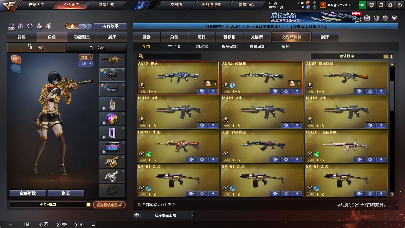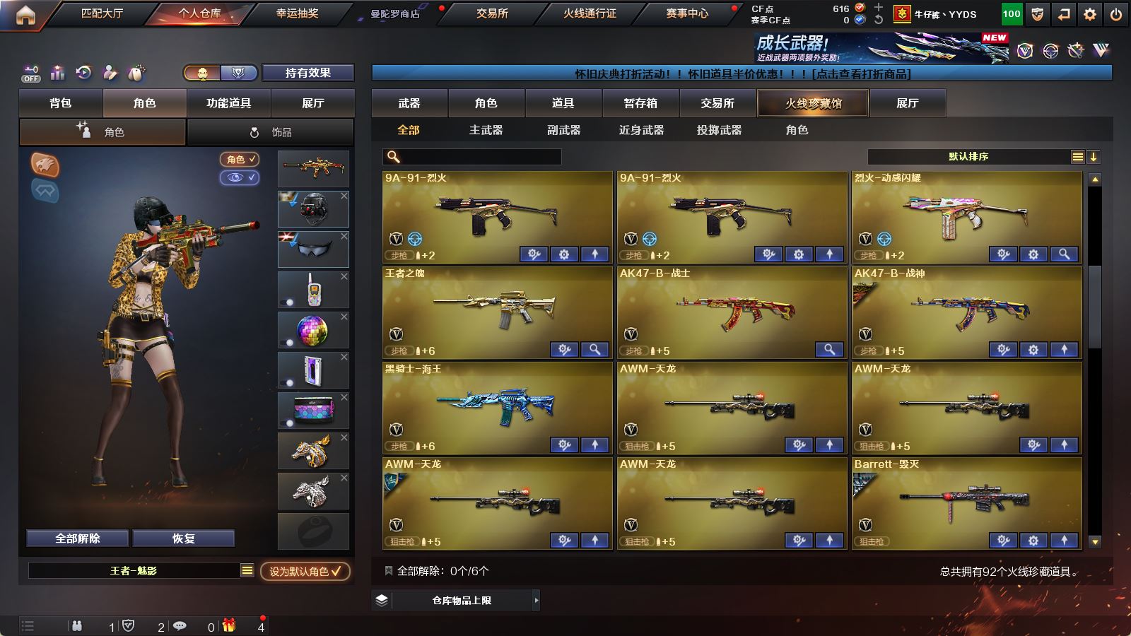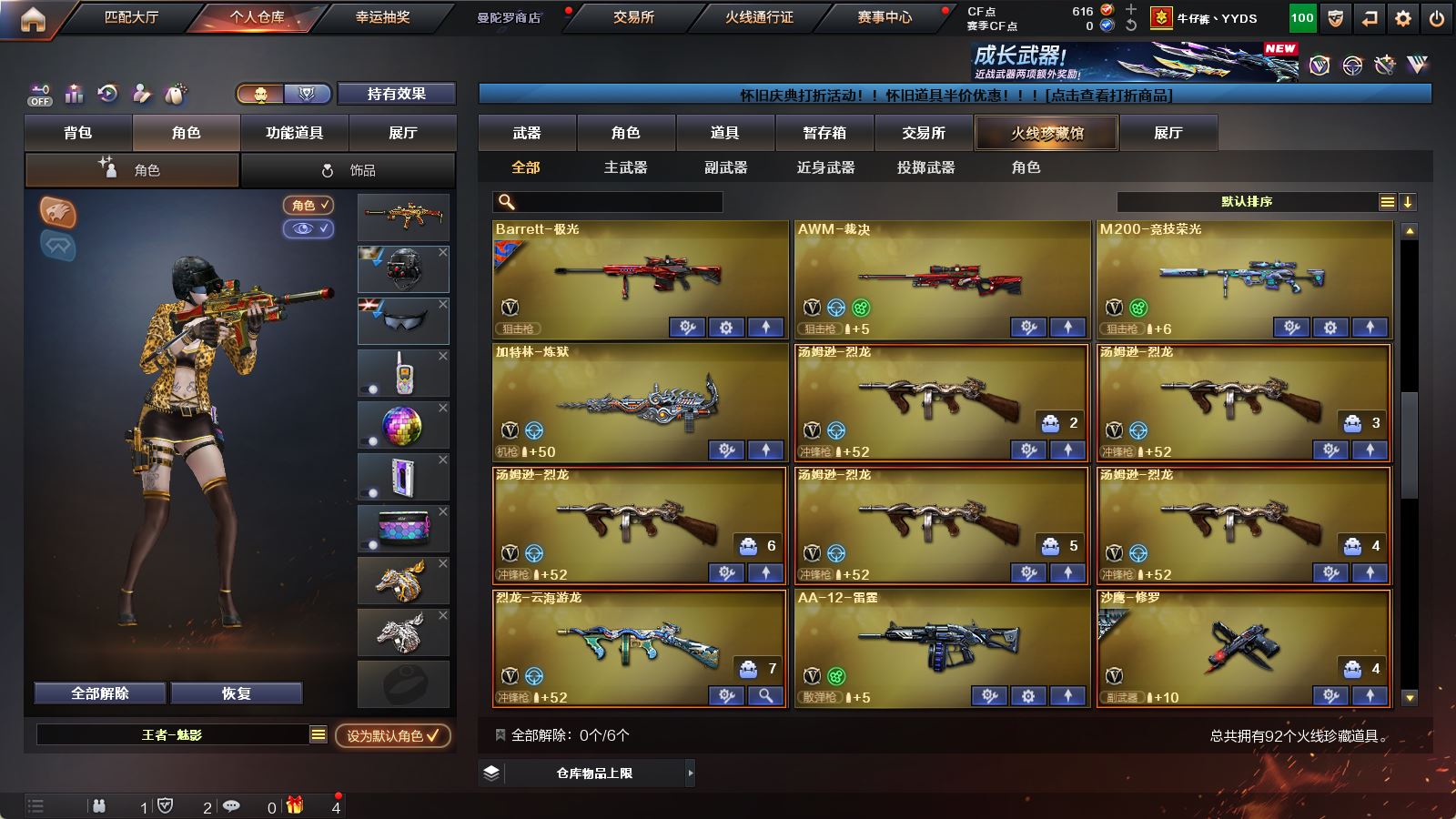 【可否排位】可排位 【账号状态】无封号 【区服】广东一区 【VIP】 【游戏等级】Lv.100 高阶大元帅 【段位排名】未上榜 【CF点】616 【VVIP数量】92 【重要套装】 【重要角色】_零/王者-魅影/王者-瞳-闭月羞花/铁扇公主/乔伊教练/云海玲珑/空/零-水下丽影/新灵狐者 【传说武器】 【英雄武器】M200-竞技荣光/Barrett-毁灭/Barrett-极光/AWM-天龙(4)/AWM-裁决/M4A1-雷神/M4A1-黑龙(4)/M4A1-龙血(3)/M4A1-黑骑士/黑骑士-海王/王者之魄-觉醒版/HK417-朱雀/AK12-天启/AK47-火麒麟(2)/AK47-无影/无影-神兵利器/AK47-黑武士(2)/AK47-机械迷城/AK47-B-战士/AK47-B-战神/AN94-超新星/QBZ03-金色蔷薇/烈火-动感闪耀/9A91-烈火(5)/汤姆逊-烈龙(5)/AA-12-雷霆/加特林-炼狱/COP-堕天神(3)/天神-动感闪耀/沙鹰-天神/沙鹰-修罗(2)/破空枪刃-夜魔/麒麟刺/龙啸/王者之啸-觉醒版/擎天(7)/擎天-竞技荣光/屠龙-动感闪耀/屠龙(2)/王者之锋-觉醒版/马来剑-夜魔/手雷-动感闪耀/高爆手雷-夜魔(3)/高爆手雷-竞技荣光(3)/烟雾弹-夜魔(3)/烟雾弹-竞技荣光(3)/闪光弹-夜魔(3)/闪光弹-竞技荣光(3)/烈龙-云海游龙/擎天-云海游龙/手雷-云海游龙 【王者武器】王者之鲨 【小人枪】M4A1-雷神-精英刀锋(2)/AWM-灵狐-15周年嘉年华/M37-葵/魔能飞环-曼陀罗 【其他重要武器】炫金骑士/炫金天龙/炫金毁灭/炫金修罗/黑骑士-摸金校尉/M4A1-十二生肖·龙-雷神/冰龙粉碎者-白马银枪/M4A1-S-火种/AK47-苍龙/M4A1-秘银赤龙(3)/AK47-丹龙/AK103-神秘黑洞/AK47-十二生肖-蛇(2)/AK47-齐天大圣/M4A1-紫狱/AK-103-火线13周年/Scar-Light-赤血龙魂(3)/AK47-枪娘/XM8-炫彩/黄金AK-47/红龙AK47/AK-47-二次元/HK417-红龙/AK47-大帝林肯/AK47-轮回/M4A1-战龙/雷神-赛博朋克/金色小号/AT15-万圣节/AK47-SS-枪王排位/HK417-赤血龙魂(3)/M14EBR-赤血龙魂(3)/M82A1-飞龙在天/M200-萌杀/黄金AWM/M200-情人节2019/M200-涂鸦/M200-庆典-CFS 2021/AWM-卡通/巴雷特-情人节2020/M200-大黄蜂(2)/巴雷特-绚樱/M200-赤血龙魂/Barrett-翔龙/破天狂龙/AWM-恶棍-枪王排位/AWM-Pink/AWM-枪娘/98K-烛龙/AWM-万圣节刀锋/M200-圣诞/暗金AWM(2)/暗金M200/凤凰之怒/死亡之眼-庆典-CFS 2021/斯泰尔-巧克力/EVO III-赤血龙魂/EVOⅢ-黑金传说/Steyr TMP-CFS2020纪念版/神圣爆裂者-末日III/神圣爆裂者III/Spas-12-幻能朋克/SPAS-12-雷电核心/Spas-12-黑金/愤怒公牛左轮-枪王排位(3)/COP 357-平天大圣/沙鹰-枪王排位(3)/新USP-枪王排位奖励(4)/柯尔特-百城/迷彩沙鹰-70KG(2)/愤怒公牛左轮-丹龙/COP-青帝(2)/MAC-10-涂鸦/Anaconda-雷电核心(2)/COP-金蝉子-枪王排位/新USP-怒火大圣/幻影Anaconda-枪王排位/沙漠之鹰-A-摸金校尉/COP 357-子鼠(2)/Anaconda-黑金神龙/修罗-摸金校尉/COP 357--绚樱/幻影沙鹰-枪王排位/招财猫-枪王排位/丛林匕首-枪王排位/斩神刀-青帝/蝴蝶刀-枪王排位/虹光女皇利刃-枪王排位/鹰爪-枪王排位/斩神刀-御龙/尼泊尔-炎龙/唐刀-九五至尊/丛林匕首-卧龙(4)/生化手雷-机甲核心/闪光弹-枪王排位(6)/胜利奖杯闪光弹-枪王排位/惨叫鸡高爆手雷/手雷-能量核心(2)/胜利奖杯烟雾弹-枪王排位/闪光弹-小乔 【重要武器皮肤】毁灭-星空/毁灭-墨兰皮肤/毁灭-黑大圣皮肤/极光-能量核心/AWM-天龙-传奇白鲨/火麒麟-CFSTAR/火麒麟-华夏之心/火麒麟-心动糖果/雷神-暗月/雷神-机甲刑天皮肤/雷神-星空/黑骑士耀金皮肤/黑龙-能量核心/战神-流金岁月皮肤/战神-紫绶金章皮肤/战神-粉色甜心皮肤/修罗-星空 【重要光效】王者之魂金色光效/M4A1-雷神绿色光效/M4A1-雷神蓝粉色光效/M4A1-黑骑士绿色光效/M4A1-黑龙金色光效/Barrett-极光金色光效/屠龙-流星光效 【重要音效卡】M4A1-雷神音效卡/M4A1-黑骑士音效卡/M4A1-黑龙音效卡/