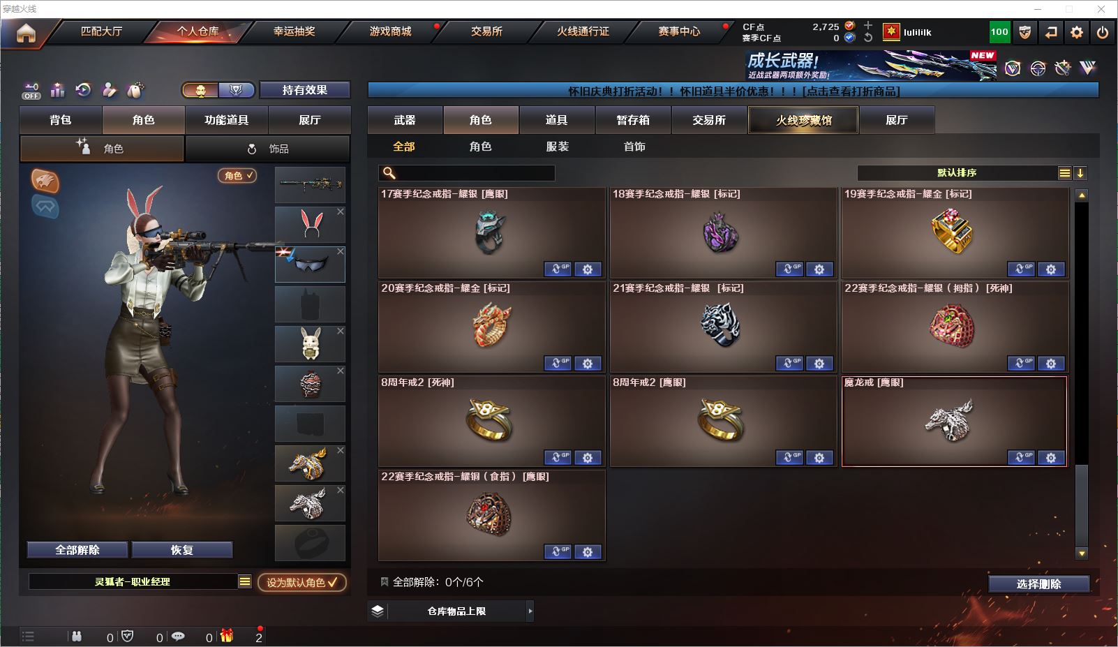 077CF3792 【山东一区】【可二次】【可排位】 70v 6王者 1炫金 【重要角色】葵/龙儿-小淘气/灵狐者-职业经理/灵狐者-黄金海岸/兰-海滩派对 【英雄武器】_M200-幻神/Barrett-毁灭(2)/Barrett-朱雀/AWM-天龙/AWM-裁决/M4A1-雷神(2)/M4A1-死神/M4A1-黑龙/M4A1-龙血/M4A1-黑骑士/黑骑士-海王/M4A1-武圣/M4A1-玫瑰精灵(2)/王者之魄-觉醒版/王者之武-觉醒版/AK47-火麒麟(4)/AN94-超新星/QBZ03-金色蔷薇/9A91-烈火/汤姆逊-烈龙(5)/加特林-炼狱(2)/王者之灵-觉醒版/沙鹰-天神(4)/沙鹰-修罗/USP-雷暴/麒麟刺(3)/麒麟刺-堕天神/龙啸/擎天/屠龙(7)/幻灵之锋(2)/王者之锋-觉醒版/斩神刀-雷暴/高爆手雷-幻灵(2)/高爆手雷-雷暴/高爆手雷-堕天神/烟雾弹-幻灵(2)/烟雾弹-雷暴/烟雾弹-堕天神/闪光弹-幻灵(2)/闪光弹-雷暴/闪光弹-堕天神 【王者武器】王者之势/王者玉锋 【小人枪】M37-葵/小飞碟-宇航兔兔(2) 【重要武器皮肤】毁灭耀金皮肤/毁灭-风暴/毁灭-黑大圣皮肤/火麒麟-CFSTAR/火麒麟-平天大圣/火麒麟-轻羽皮肤/雷神-宇航兔皮肤/雷神-暗月/雷神-星空/黑骑士耀金皮肤/黑龙-暗月 【重要音效卡】M4A1-雷神音效卡/M4A1-黑骑士音效卡/M4A1-黑龙音效卡/Barrett-毁灭音效卡 【重要戒指】8周年戒2/龙眼(死神)/龙眼(鹰)/17赛季纪念戒指-耀银/18赛季纪念戒指-耀银/20赛季纪念戒指-耀金/21赛季纪念戒指-耀银(拇指)/22赛季纪念戒指-耀铜(食指)/22赛季纪念戒指-耀银(拇指) 【拥有重要玩偶】黄金幸运猪猪玩偶 等等装备和皮肤~ 截图展示段位不代表实际段位,如赛季更新等不可抗拒因素发生变化、时限道具不保证所剩时间,其余道具看截图或咨询客服 【小述账号 安全无忧】