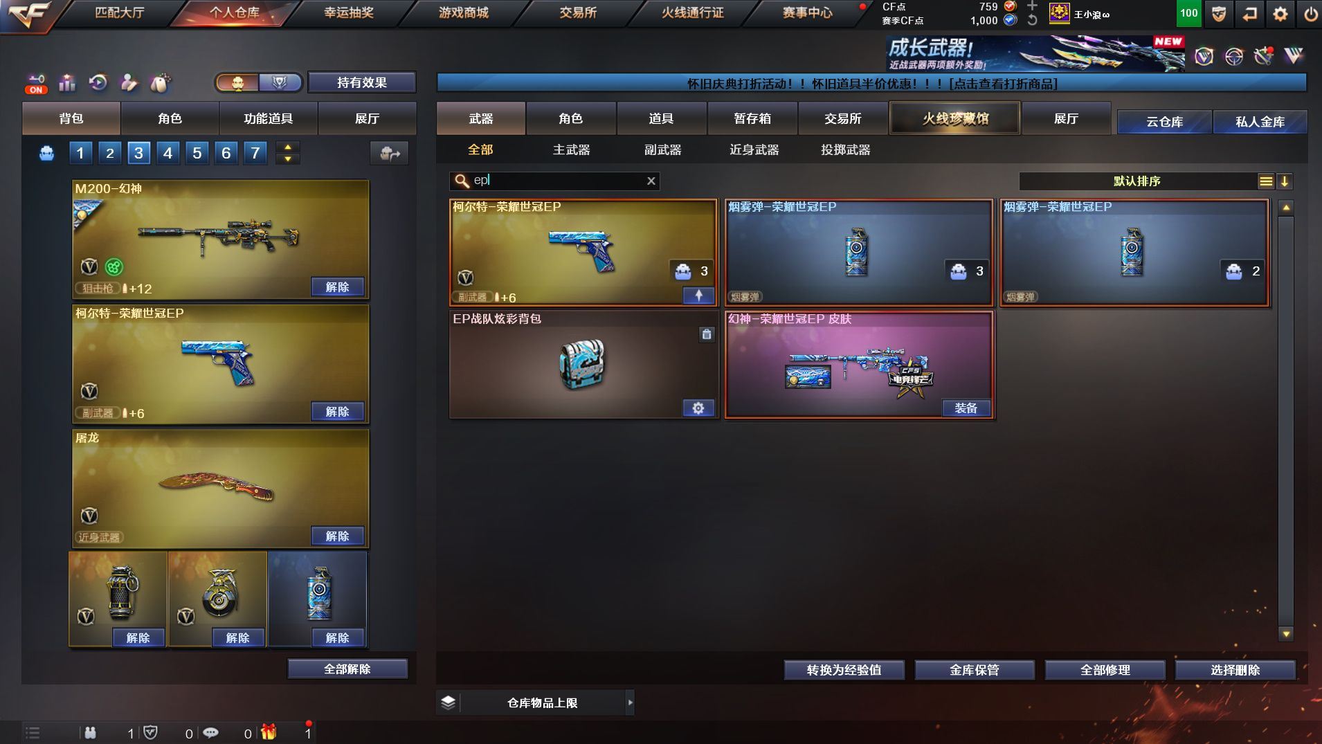 h2409【东部幻神荣耀世冠EP+荣耀世冠EP柯尔特】【江苏一区可排位】【60v3王者】【M200幻神+幻神荣耀世冠EP+荣耀世冠EP柯尔特】【cop357堕天神】【qbz03金色蔷薇】【觉醒王者裁决】【堕天神全套】四防角色王者春:迷迭香:嘉年华灵狐:潘多拉x.【毁灭音效卡:火麒麟音效卡:雷神音效卡:黑骑士音效卡】【皮肤:幻神荣耀世冠ep+雷神传奇n9:毁灭冠军svs16:毁灭冠军ag:黑骑士战神马超:火麒麟传奇even:雷神白鲨:】主流武器:火麒麟:黑龙:雷神:黑骑士:烈火:觉醒王者之武:盘龙:屠龙:龙啸:1套雷暴手雷套装武器:6套堕天神手雷套装武器:荣耀世冠EP烟雾弹*2:【各种道具详情看截图、低价出售、永久售后、截图展示段位不代表实际段位,如赛季更新等不可抗拒因素发生变化、时限道具不保证所剩时间、标题未写送点劵默认不送】【老虎哥专业售后】cfvip6