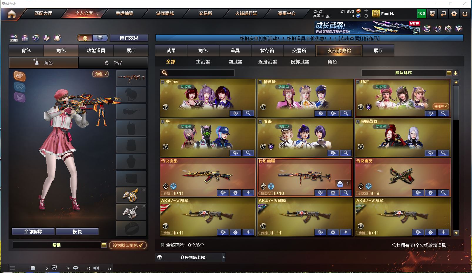 黑龙江区 有二次 可排位 阿飞98v 【传说幽瞳+传说夜影+传说幽冥】【M200-幻神*4+幻神-AG24冠军+幻神-传奇欧欧+幻神-Heratshot+幻神-荣耀世冠白鲨2023+幻神-电流骇客+幻神-荣耀世冠白鲨+幻神-丹凤+幻神-曹操+幻神-枪娘爱丽丝+幻神-魅影+幻神音效卡+王者风神+柯尔特-荣耀世冠白鲨2023*4+冠军之特+冠军之刃】【炽芒蝶刃+炽芒蝶刃-破浪逐光】【M200-竞技荣光+柯尔特-竞技荣光+擎天-竞技荣光+竞技荣光手雷套】【98K-星神+星神-枪娘默+星神-傲竹金蛇+星神-巅峰荣耀+星神音效卡】【QBZ金色蔷薇+QBZ-传奇宠儿+QBZ-冠军之薇+QBZ-破浪逐光+QBZ音效卡】【Scar白虎+白虎-CFPLS23冠军+白虎-霓虹机甲】【裁决+裁决-巅峰荣耀】【G36C-幻影】【火麒麟+火麒麟-枪娘+火麒麟-横秒之巅+火麒麟-EVEN+火麒麟-巅峰荣耀+火麒麟-冠军之心】【雷神+雷神-荣耀之魄+雷神-N9+雷神音效卡】【黑骑士+黑骑士-冠军之势+黑骑士音效卡】【毁灭+毁灭-荣耀之怒】玫瑰精灵 猎神 屠龙 擎天 麒麟刺 【角色】4防王者-魅影 4防王者炫 关小雨 枪娘樱 晴雅 隼 乔伊教练 如赛季更新等不可抗拒因素发生变化、时限道具不保证所剩时间,阿飞账号安全无忧.置换可享更多优惠.
