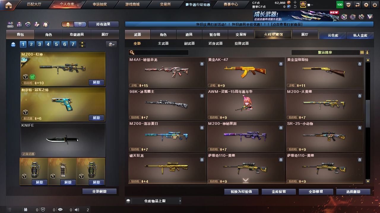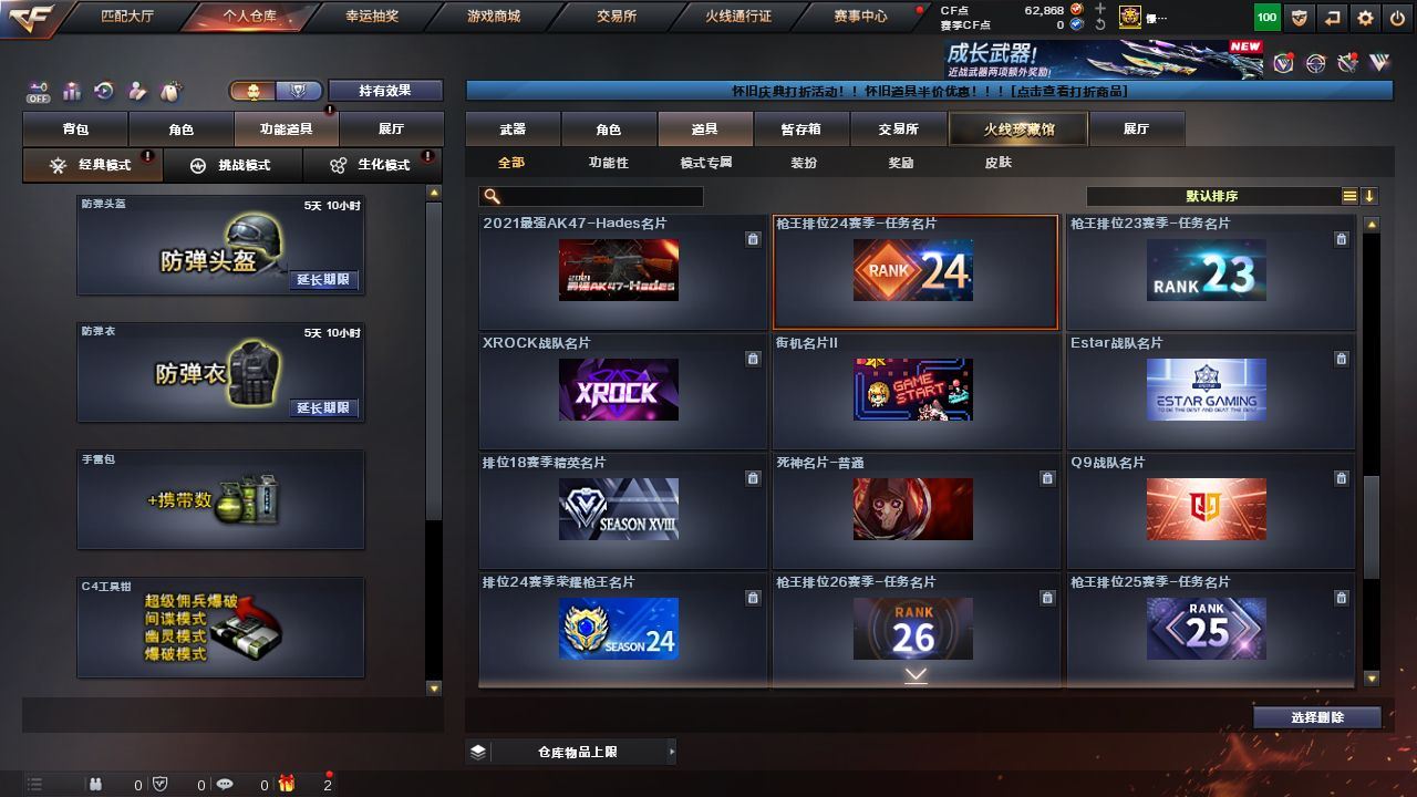 r46186 可二次 东部上海一区 可排位 【49V】【传说夜影】【M200-幻神+M200-幻神-黄忠皮肤+幻神-冠军之幻+幻神-巅峰荣耀+幻神-CFS2022】【Scar Light-白虎】【QBZ03-金色蔷薇】【王者星神-觉醒版/王者之势-觉醒版/QBZ-03-王者蔷薇-觉醒版】【荣耀世冠-柯尔特/柯尔特-冠军之特/沙鹰-天神/沙鹰-修罗(4)】【龙啸/龙啸-烈火龙威/荣耀世冠-龙啸/擎天/屠龙(2)/斩神刀-雷暴】【荣耀世冠套装】【王者星神/王者之啸】【零/魅影/鹰/王者沙漠玫瑰/职业选手/炽天使/灵狐者-黄金海岸/兰-海滩派对/斯沃特-X】【M4A1-黑骑士音效卡/AK47-火麒麟音效卡/Barrett-毁灭音效卡】【巴雷特-毁灭-CFPL冠军/毁灭-BEAN-2020MVP/天龙-CFSTAR/天龙-能量核心/AK47-火麒麟-传奇EVEN/火麒麟-CFSTAR/火麒麟-AG/火麒麟-华夏之心/火麒麟-巅峰荣耀/火麒麟-心动糖果/火麒麟-战神关羽/火麒麟-轻羽皮肤/火麒麟-冠军之心/M4A1-雷神-白鲨皮肤/雷神-宠儿-2019MVP/雷神-荣耀之魄/雷神-虎将/雷神-耀金皮肤/雷神-暗月/黑骑士-冠军之势/M4A1-战神赵云/战神-紫绶金章皮肤/修罗-冠军之魂】【Barrett-毁灭(2)/Barrett-暗月传说/M4A1-雷神(6)/荣耀世冠-雷神/M4A1-龙血/M4A1-黑骑士/AK47-火麒麟(2)/荣耀世冠-火麒麟/无影-神兵利器/AA-12-雷霆】《永久ac 永久工具钳 永久手雷包》各种道具详情看截图、低价出售找回包 赔、截图展示段位不带表实际段位,如赛季更新等不可抗拒因素发生变化、时限道具不保证所剩时间、标题未写送点券默认不送【卖号买号首选亿梦】