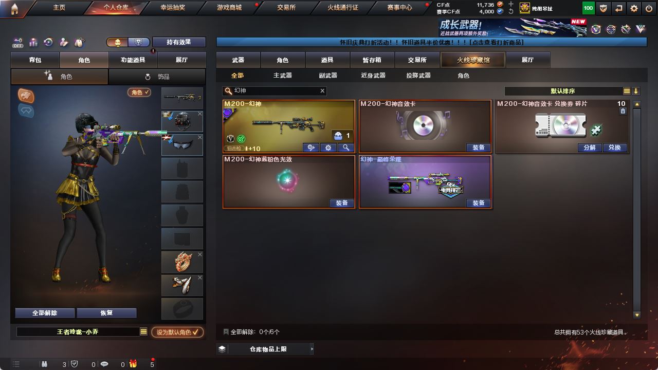 53v16雷俩角色幻神巅峰荣耀三件套白虎qbz4个手枪