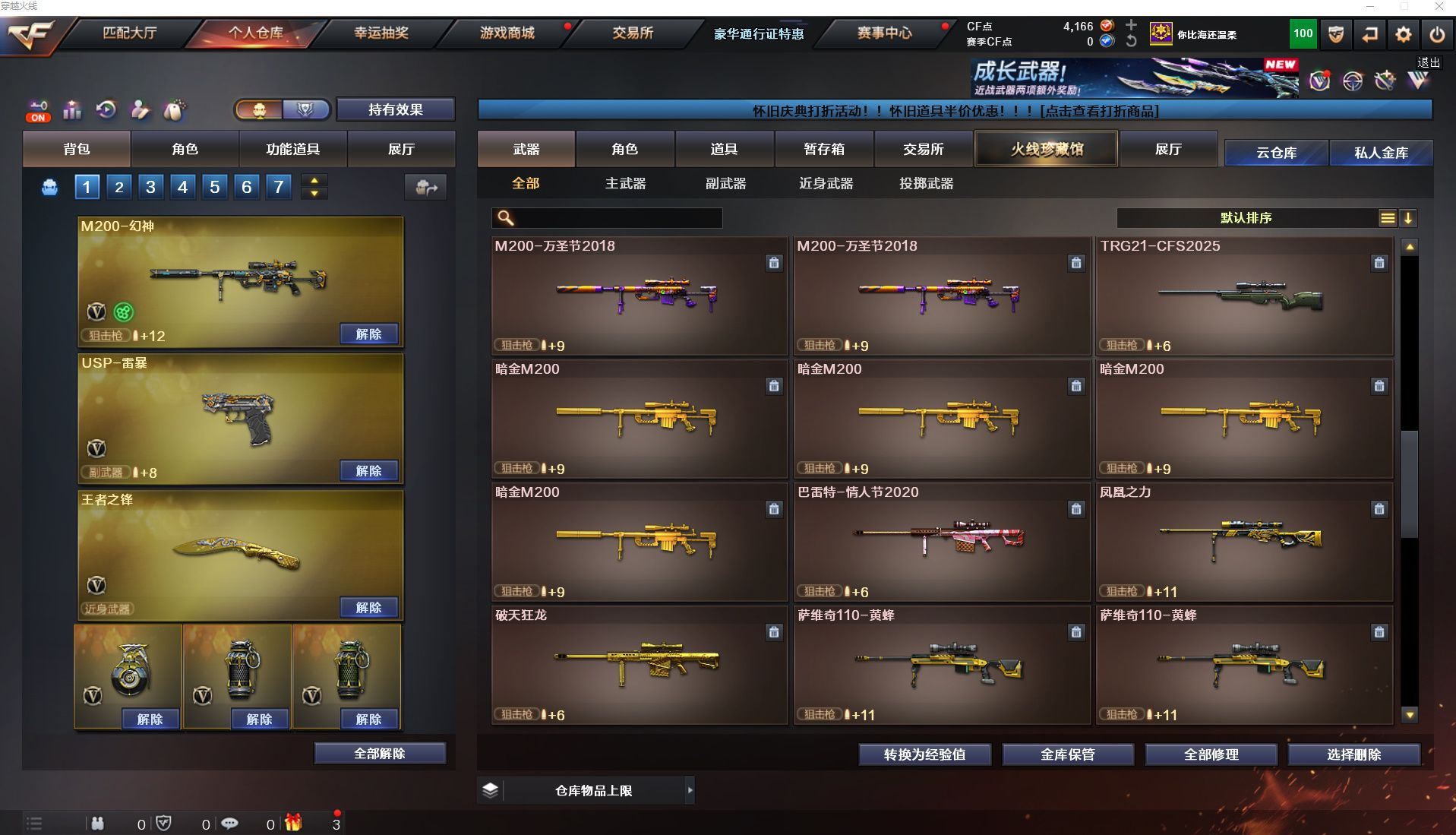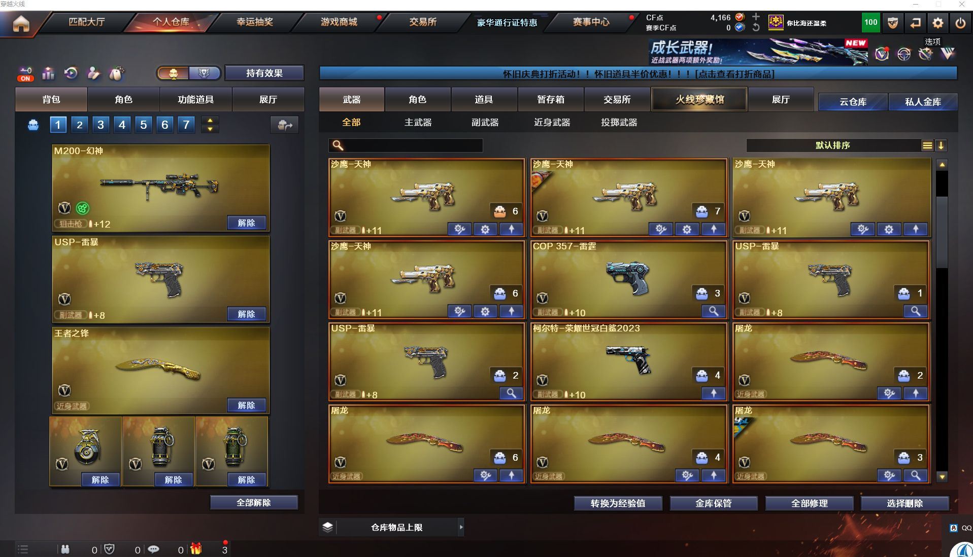 h2467【东部江苏一区可排位】【177v19王者18炫金】【m200幻神+荣耀世冠白鲨柯尔特2023+2usp雷暴+cop雷霆】【白虎】【青龙】【hk朱雀】【qbz03金色蔷薇】【网剧冠军套/雷暴套/雷霆套】/朱雀大炮/5盘6烈+4炼狱+斯太尔蝴蝶/7修罗/角色:炫/孤影/王者零/王者之瞳/樱/职业选手/绝技语音包/3火麒麟音效卡:黑骑士音效卡:毁灭音效卡:雷神音效卡:皮肤:火麒麟2018:火麒麟冠军之心:雷神白鲨:火麒麟ag:龙啸冠军之啸:雷神荣耀之魄:屠龙荣耀之锋:【各种道具详情看截图、低价出售找回包赔、截图展示段位不代表实际段位,如赛季更新等不可抗拒因素发生变化、时限道具不保证所剩时间、标题未写送点卷默认不送】【老虎哥专业售后】cfvip6