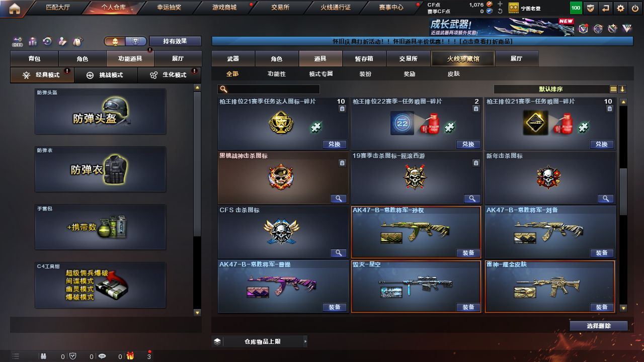 r47109 可二次 安徽一区 可排位VIP【44V】【传说圣灵】【M200-幻神+周瑜皮肤+M200-幻神音效卡】【QBZ03-金色蔷薇】【COP-堕天神/沙鹰-修罗(3)】【麒麟刺-堕天神(2)/龙啸-堕天神/王者之击(2)/斩神刀-雷暴】【QBZ-03-王者蔷薇】【王者涂鸦】【M4A1-雷神音效卡/AK47-火麒麟音效卡/Barrett-毁灭音效卡】【毁灭-星空/天龙-CFSTAR/火麒麟-CFSTAR/AK47-B-常胜将军-刘备/AK47-B-常胜将军-孙权/AK47-B-常胜将军-曹操/M4A1-千变-孔明皮肤/雷神-耀金皮肤/雷神-星空/黑龙-能量核心】【Barrett-毁灭/Barrett-暗月传说(2)/M4A1-雷神/M4A1-黑龙/黑骑士-海王/AK47-火麒麟/AK47-B-身先士卒/AK47-B-常胜将军/AK47-B-战士/9A91-烈火】《永久ac 永久工具钳 永久手雷包》各种道具详情看截图、低价出售找回包 赔、截图展示段位不带表实际段位,如赛季更新等不可抗拒因素发生变化、时限道具不保证所剩时间、标题未写送点券默认不送【卖号买号首选亿梦】