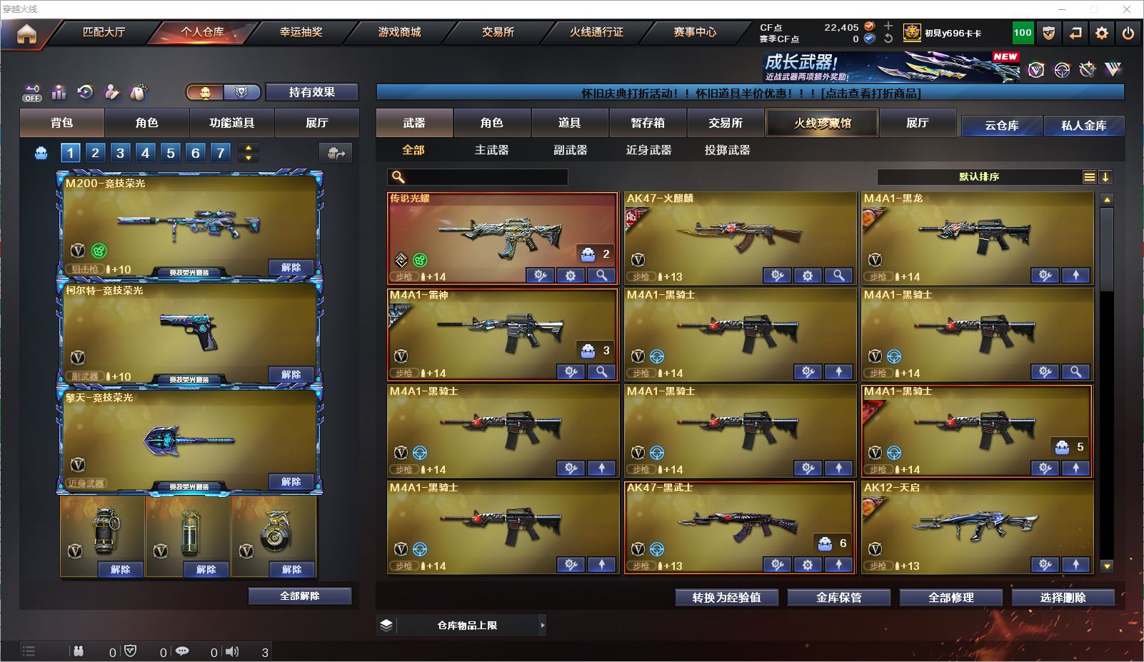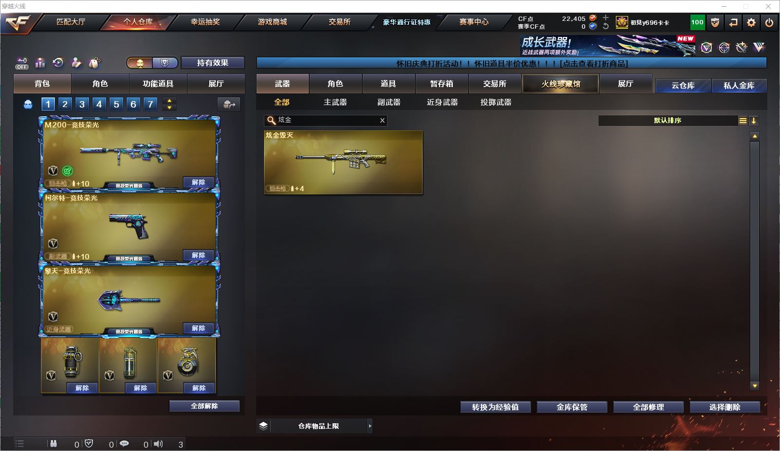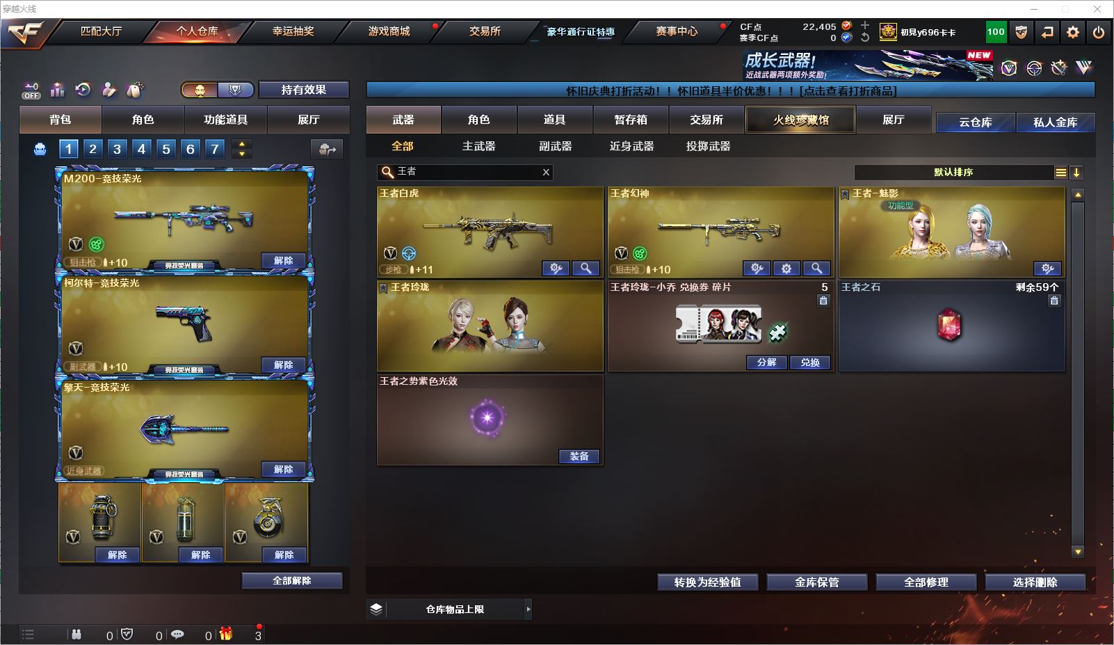 077CF4087 【广东一区】【可二次】【可排位】 91v 1传说 4王者 1炫金 【重要套装】竞技荣光套装/网剧冠军套装 【重要角色】葵/电竞教官-云悠悠/王者-魅影/王者玲珑/铁骑荣耀/葵-赛博朋克/灵狐者-黄金海岸/兰-海滩派对/新灵狐者 【传说武器】传说光耀 【英雄武器】M200-竞技荣光/王者幻神-觉醒版/Barrett-毁灭(2)/Barrett-极光/Barrett-暗月传说(2)/AWM-裁决/M4A1-雷神/M4A1-黑龙/M4A1-黑骑士(6)/黑骑士-海王/M4A1-玫瑰精灵/_Scar Light-白虎/王者白虎-觉醒版/AK12-天启/AK47-火麒麟/AK47-黑武士/黑武士-CF网剧冠军/AK-47-猩红传说(2)/AK47-B-身先士卒/AN94-超新星(2)/9A91-烈火/AA-12-雷霆/加特林-炼狱/沙鹰-天神/天神-CF网剧冠军/沙鹰-修罗(3)/柯尔特-电竞装甲/柯尔特-竞技荣光(2)/USP-雷暴/龙啸/擎天/擎天-CF网剧冠军/擎天-竞技荣光(4)/屠龙(2)/幻灵之锋/斩神刀-雷暴/高爆手雷-幻灵/高爆手雷-雷暴/高爆手雷-竞技荣光(7)/烟雾弹-幻灵/烟雾弹-雷暴/烟雾弹-竞技荣光(9)/烟雾弹-电竞装甲/恶棍-电竞装甲/闪光弹-幻灵/闪光弹-雷暴/闪光弹-竞技荣光(10)/闪光弹-电竞装甲/机械迷城-穹宇 【小人枪】裁决-雪莉杨/COP-旗袍/迷你深渊冰龙/小飞碟-宇航兔兔/迷你裂空之翼/迷你牛牛 【其他重要武器】炫金毁灭【重要武器皮肤】毁灭耀金皮肤/毁灭-神秘黑洞皮肤/毁灭-黑大圣皮肤/天龙-CFSTAR/火麒麟-AG战队皮肤/火麒麟-CFSTAR/火麒麟-平天大圣/火麒麟-百城/AK47-B-常胜将军-刘备/AK47-B-常胜将军-孙权/AK-47-雷神/M4A1-千变-孔明皮肤/雷神-宇航兔皮肤/雷神-机甲刑天皮肤/雷神-星空/黑骑士-地狱火/黑龙-暗月/Scar Light-白虎-暗星/天启-暗月/战神-流金岁月皮肤/战神-紫绶金章皮肤/战神-粉色甜心皮肤/修罗-CF STAR/修罗-CFSTAR/修罗-能量核心 【重要音效卡】M4A1-雷神音效卡/M4A1-黑骑士音效卡/AK47-火麒麟音效卡/Barrett-毁灭音效卡 等等装备和皮肤~ 截图展示段位不代表实际段位,如赛季更新等不可抗拒因素发生变化、时限道具不保证所剩时间,其余道具看截图或咨询客服 【小述账号 安全无忧】
