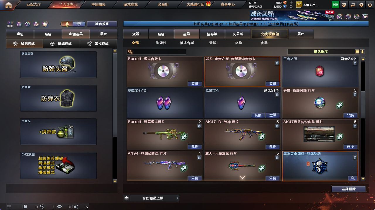 r47488 可二次 江西一区 可排位VIP5【M200-幻神】【屠龙-电竞之星】【战地猎狐/幻面灵狐/乔伊教练/云海玲珑/斯沃特-X】【Barrett-极光音效卡】【毁灭-英雄计划皮肤/毁灭-墨兰皮肤/火麒麟-CFSTAR/火麒麟-心动糖果/雷神-暗月】【Barrett-毁灭/M4A1-雷神/AK47-火麒麟(2)/无影-神兵利器/HK417-朱雀-电竞之星】《永久ac 永久工具钳 永久手雷包》各种道具详情看截图、低价出售找回包 赔、截图展示段位不带表实际段位,如赛季更新等不可抗拒因素发生变化、时限道具不保证所剩时间、标题未写送点券默认不送【卖号买号首选亿梦】