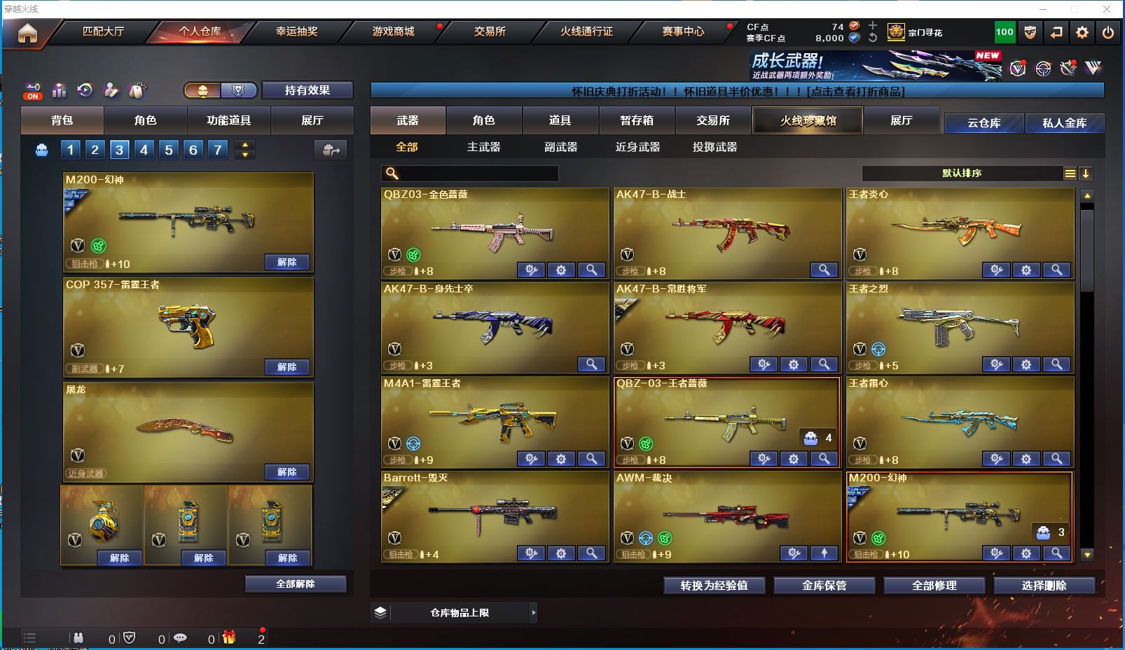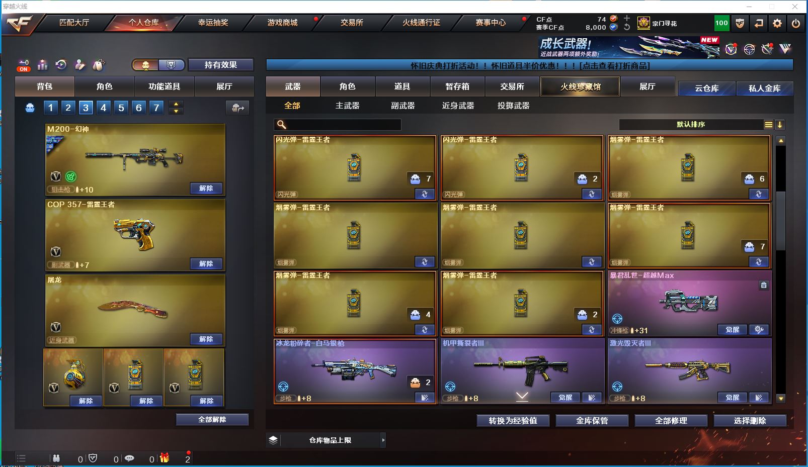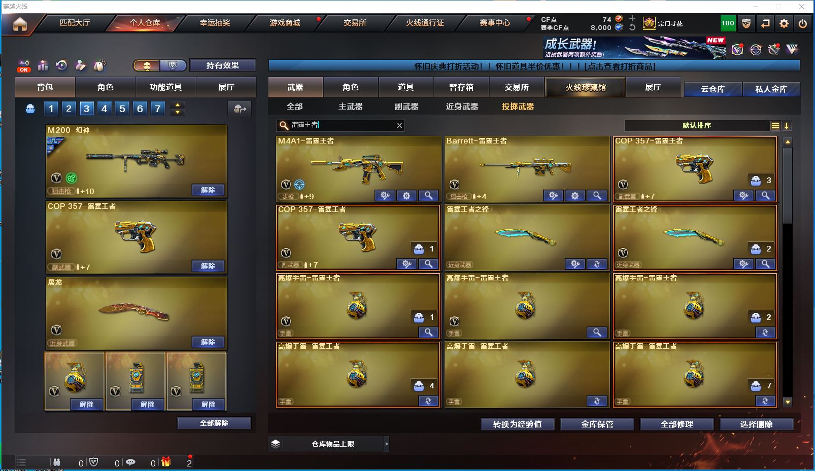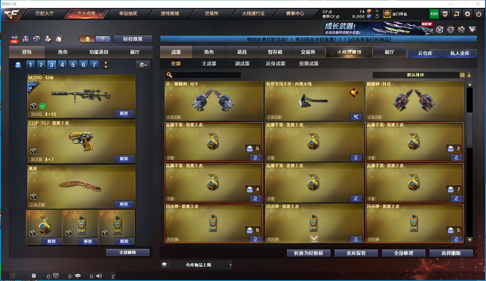 2514yc-南部-江西一区-极品爆破生化双全装号【可排位】 【可二次实名】【76V/2传说】【传说女帝/传说圣灵】【6烈龙/6盘龙/6修罗】【M200-幻神/M200-幻神音效卡/幻神-巅峰荣耀/幻神-AG-CFPLS17冠军/幻神-降龙/M200-幻神-黄忠皮肤】【Kar98K-星神】【王者幻神】【Scar Light-白虎】【QBZ-03-王者蔷薇/QBZ03-金色蔷薇】【M4A1-雷神/M4A1-雷神音效卡/雷神-R.LGD-CFPLS18冠军/M4A1-战神赵云/雷神-烈虎皮肤/雷神-暗月】【COP 357-雷霆王者】【Barrett-毁灭/Barrett-毁灭音效卡/毁灭-风暴*2/毁灭-战神张飞/毁灭耀金皮肤】【AK47-火麒麟/AK47-火麒麟音效卡/火麒麟-CFSTAR/火麒麟-轻羽皮肤/火麒麟-盘古/火麒麟-心动糖果/火麒麟-华夏之心/火麒麟-平天大圣】【M4A1-黑骑士/M4A1-黑骑士音效卡/黑骑士-战神马超/黑骑士-AG-S4冠军典藏】【M4A1-黑龙/黑龙-能量核心】【无影-神兵利器】【黑武士-锦绣游龙】【极光-能量核心】【AWM-裁决】【汤姆逊-烈龙*6】【RPK-盘龙*6】【死亡之眼】【沙鹰-修罗*6】【沙鹰-天神*2】【擎天*2】【屠龙*4】【炫/雨棠/龙儿-小淘气/暗夜-X/幽/乔伊教练/修道士/麻雀/青霞仙子/蜀雪/娟娟/潘多拉-X/斯沃特-X/铁骑荣耀/幻影】【M4A1-雷霆王者】【AK47-B-常胜将军/AK47-B-身先士卒/AK47-B-战士】【AN94-超新星】【Barrett-雷霆王者】【Colt 1911-大黄蜂*2/COP 357-青龙*2/新USP-枪王排位奖励*5】【雷霆王者之锋/金刚伞*2】【神圣爆裂者III*2/神圣爆裂者-末日III/机甲撕裂者III/VEPR-12-金魔/激光毁灭者III/冰龙粉碎者-白马银枪/巨龙咆哮-深渊红/巨龙咆哮-深渊金/阐释者III】【M4A1-雷神-精英刀锋/迷你裂空之翼】【王者炎心/王者之击/王者之啸】【高爆手雷-雷霆王者*6/闪光弹-雷霆王者*5/烟雾弹-雷霆王者*6】【炫金无影/炫金超新星】【透明护目镜/烟雾保护头盔/闪光护目镜/超级对讲机/超级背包/炫彩背包/防弹头盔/防弹衣/C4工具钳/手雷包/防化服】更多亮点详情请看图
