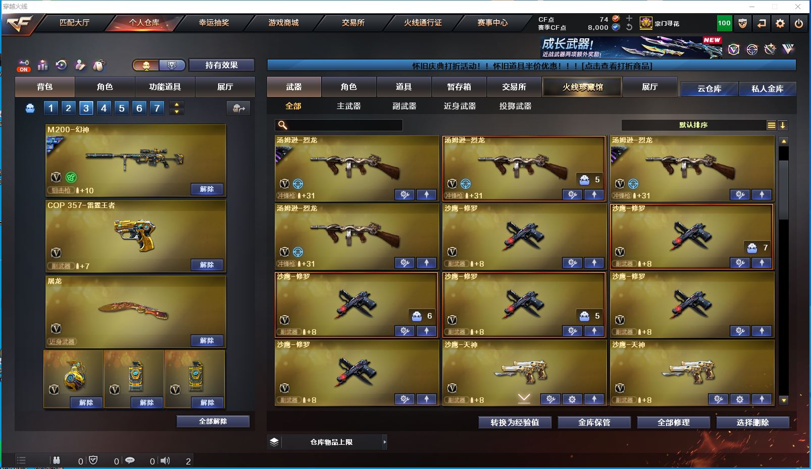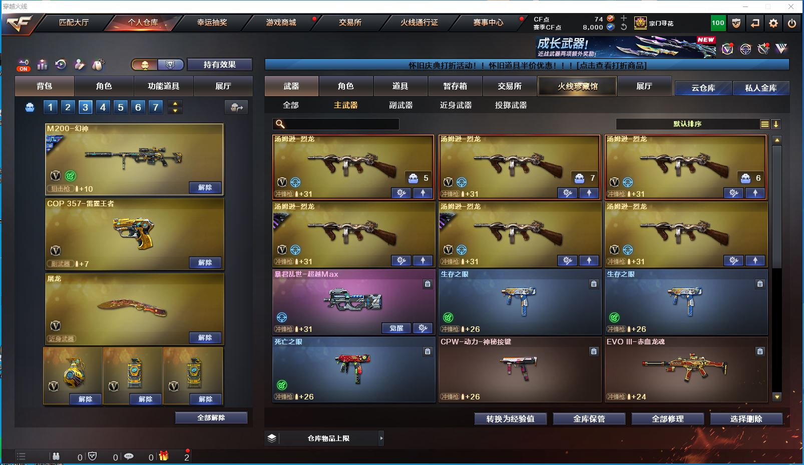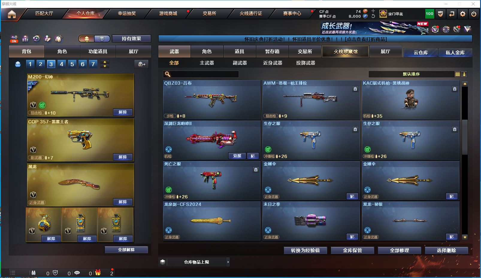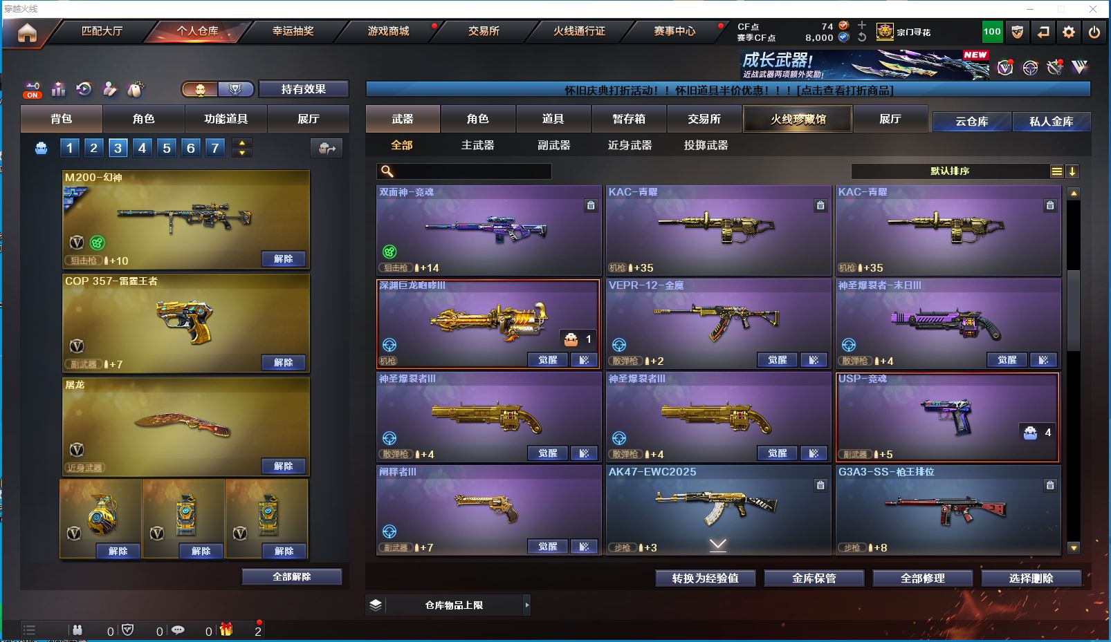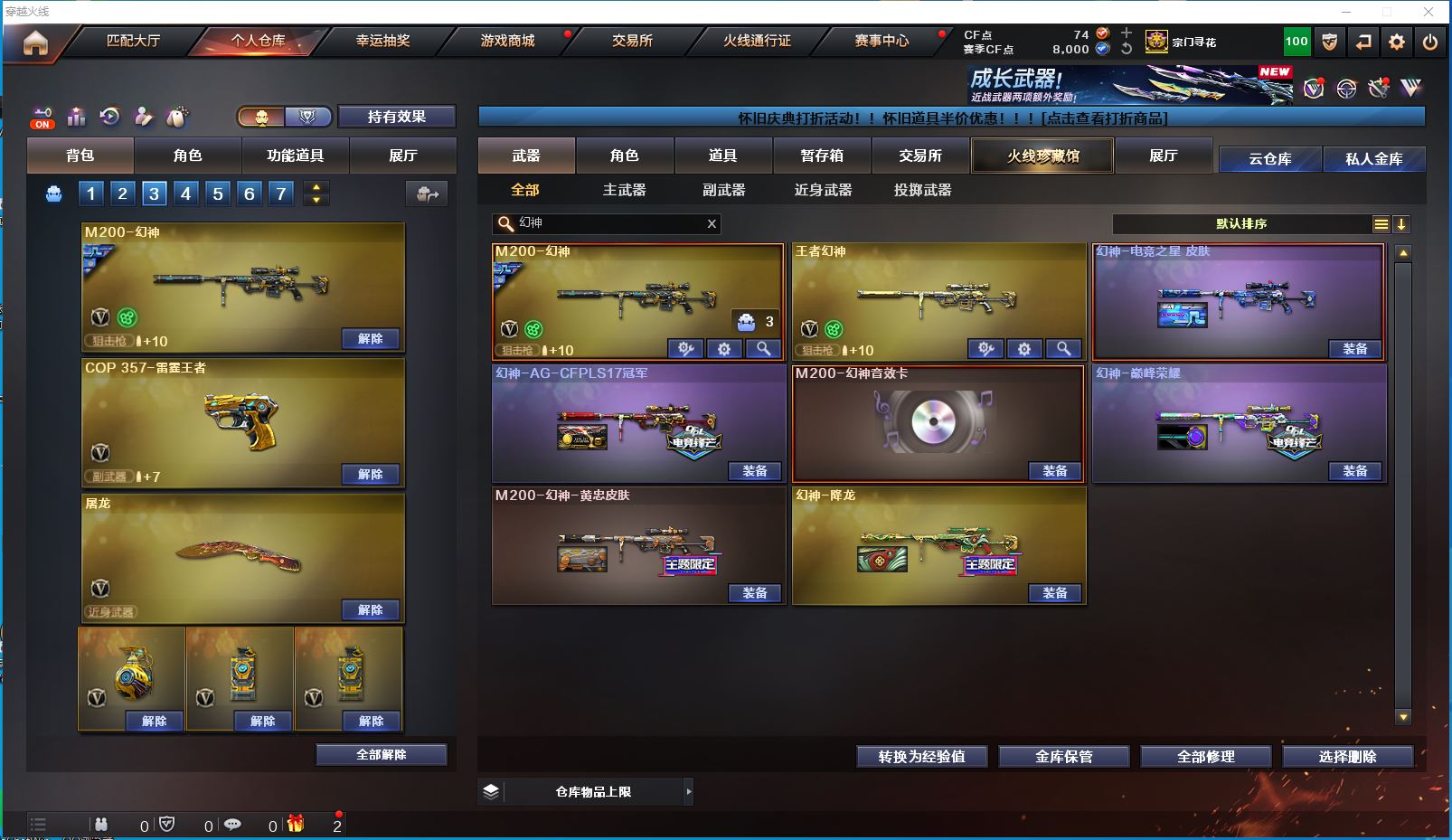 2514yc-南部-江西一区-极品爆破生化双全装号【可排位】 【可二次实名】【76V/2传说】【传说女帝/传说圣灵】【6烈龙/6盘龙/6修罗】【M200-幻神/M200-幻神音效卡/幻神-巅峰荣耀/幻神-AG-CFPLS17冠军/幻神-降龙/M200-幻神-黄忠皮肤】【Kar98K-星神】【王者幻神】【Scar Light-白虎】【QBZ-03-王者蔷薇/QBZ03-金色蔷薇】【M4A1-雷神/M4A1-雷神音效卡/雷神-R.LGD-CFPLS18冠军/M4A1-战神赵云/雷神-烈虎皮肤/雷神-暗月】【COP 357-雷霆王者】【Barrett-毁灭/Barrett-毁灭音效卡/毁灭-风暴*2/毁灭-战神张飞/毁灭耀金皮肤】【AK47-火麒麟/AK47-火麒麟音效卡/火麒麟-CFSTAR/火麒麟-轻羽皮肤/火麒麟-盘古/火麒麟-心动糖果/火麒麟-华夏之心/火麒麟-平天大圣】【M4A1-黑骑士/M4A1-黑骑士音效卡/黑骑士-战神马超/黑骑士-AG-S4冠军典藏】【M4A1-黑龙/黑龙-能量核心】【无影-神兵利器】【黑武士-锦绣游龙】【极光-能量核心】【AWM-裁决】【汤姆逊-烈龙*6】【RPK-盘龙*6】【死亡之眼】【沙鹰-修罗*6】【沙鹰-天神*2】【擎天*2】【屠龙*4】【炫/雨棠/龙儿-小淘气/暗夜-X/幽/乔伊教练/修道士/麻雀/青霞仙子/蜀雪/娟娟/潘多拉-X/斯沃特-X/铁骑荣耀/幻影】【M4A1-雷霆王者】【AK47-B-常胜将军/AK47-B-身先士卒/AK47-B-战士】【AN94-超新星】【Barrett-雷霆王者】【Colt 1911-大黄蜂*2/COP 357-青龙*2/新USP-枪王排位奖励*5】【雷霆王者之锋/金刚伞*2】【神圣爆裂者III*2/神圣爆裂者-末日III/机甲撕裂者III/VEPR-12-金魔/激光毁灭者III/冰龙粉碎者-白马银枪/巨龙咆哮-深渊红/巨龙咆哮-深渊金/阐释者III】【M4A1-雷神-精英刀锋/迷你裂空之翼】【王者炎心/王者之击/王者之啸】【高爆手雷-雷霆王者*6/闪光弹-雷霆王者*5/烟雾弹-雷霆王者*6】【炫金无影/炫金超新星】【透明护目镜/烟雾保护头盔/闪光护目镜/超级对讲机/超级背包/炫彩背包/防弹头盔/防弹衣/C4工具钳/手雷包/防化服】更多亮点详情请看图