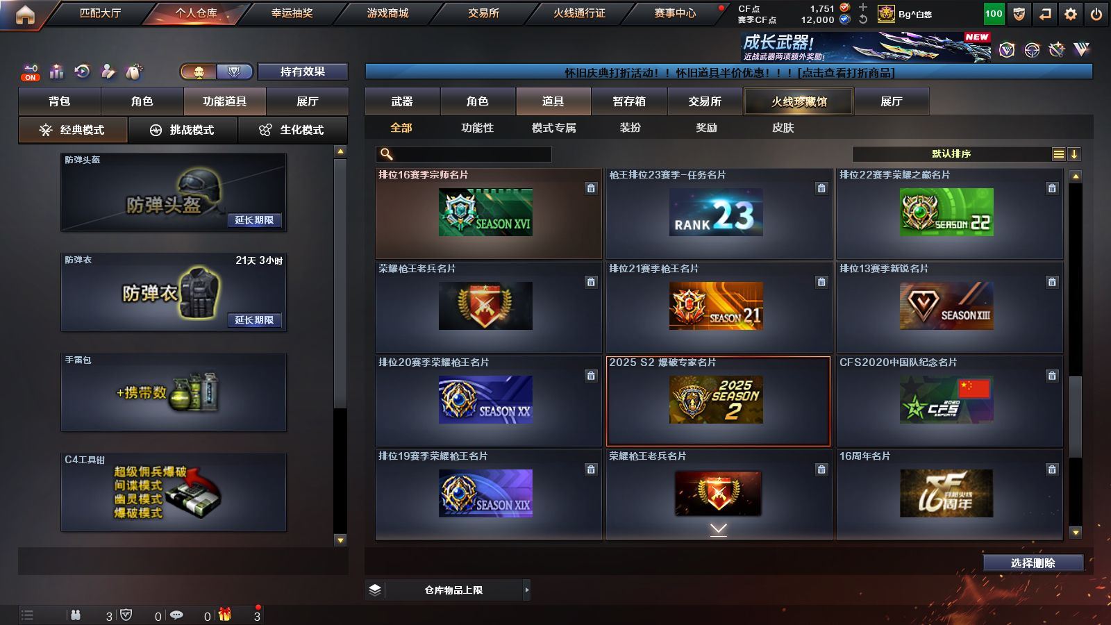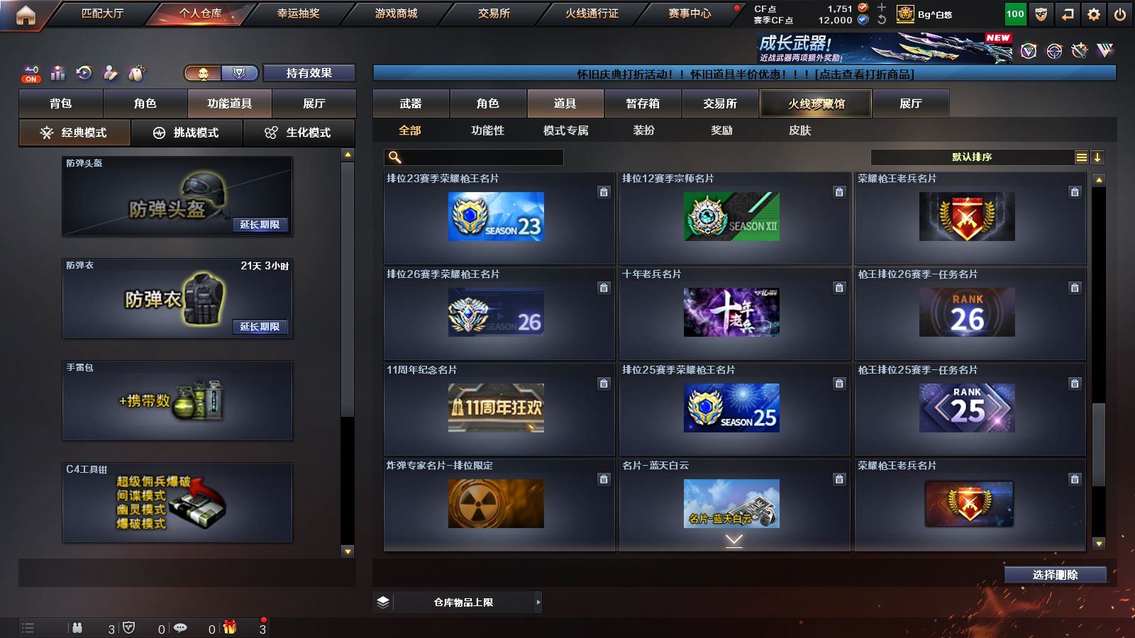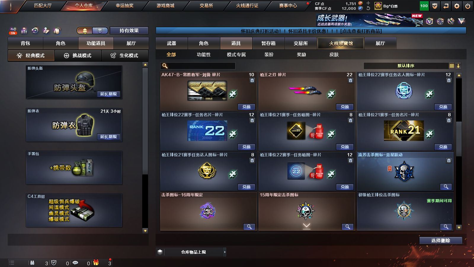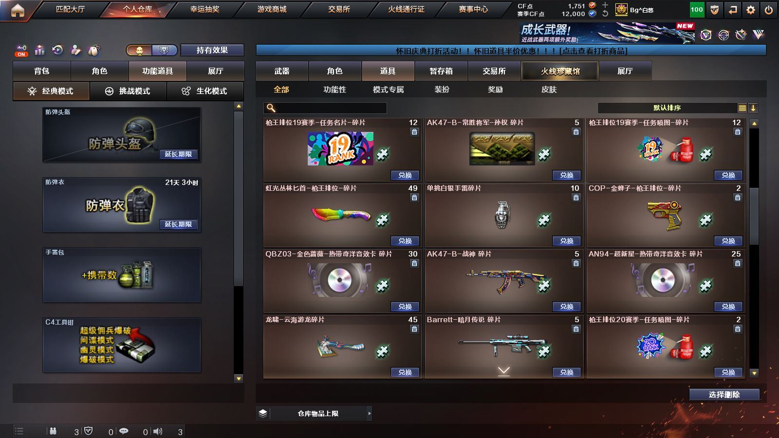 R49013 可二次 湖南一 可排位《87V》《VIP6》《传说破晓》《幻神+CFS2022+音效卡》《毁灭 极光 裁决》《qbz金色蔷薇 白虎电玩蓝 兔 火麒麟 黑龙 雷神 黑骑士 黑武士》《cop雷霆 柯尔特冠军之特》《雷霆套装》《葵阿尔法武装 炫 幻面灵狐 奇洋探员》《天罚音效卡 黑骑士音效卡 毁灭音效卡 雷神音效卡》《火麒麟CFSTAR 雷神白鲨14冠军》永久ac 工具钳 手雷包 各种道具详情看截图、低价出售找回包 赔、截图展示段位不带表实际段位,如赛季更新等不可抗拒因素发生变化、时限道具不保证所剩时间、标题未写送点券默认不送【卖号买号首选亿梦】