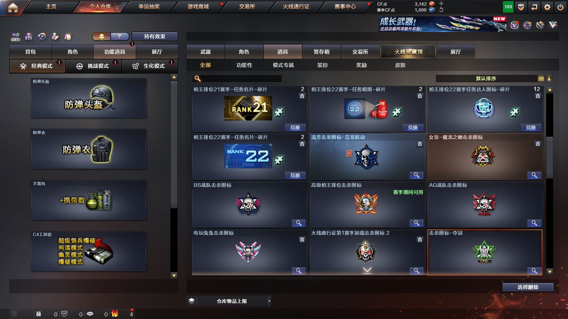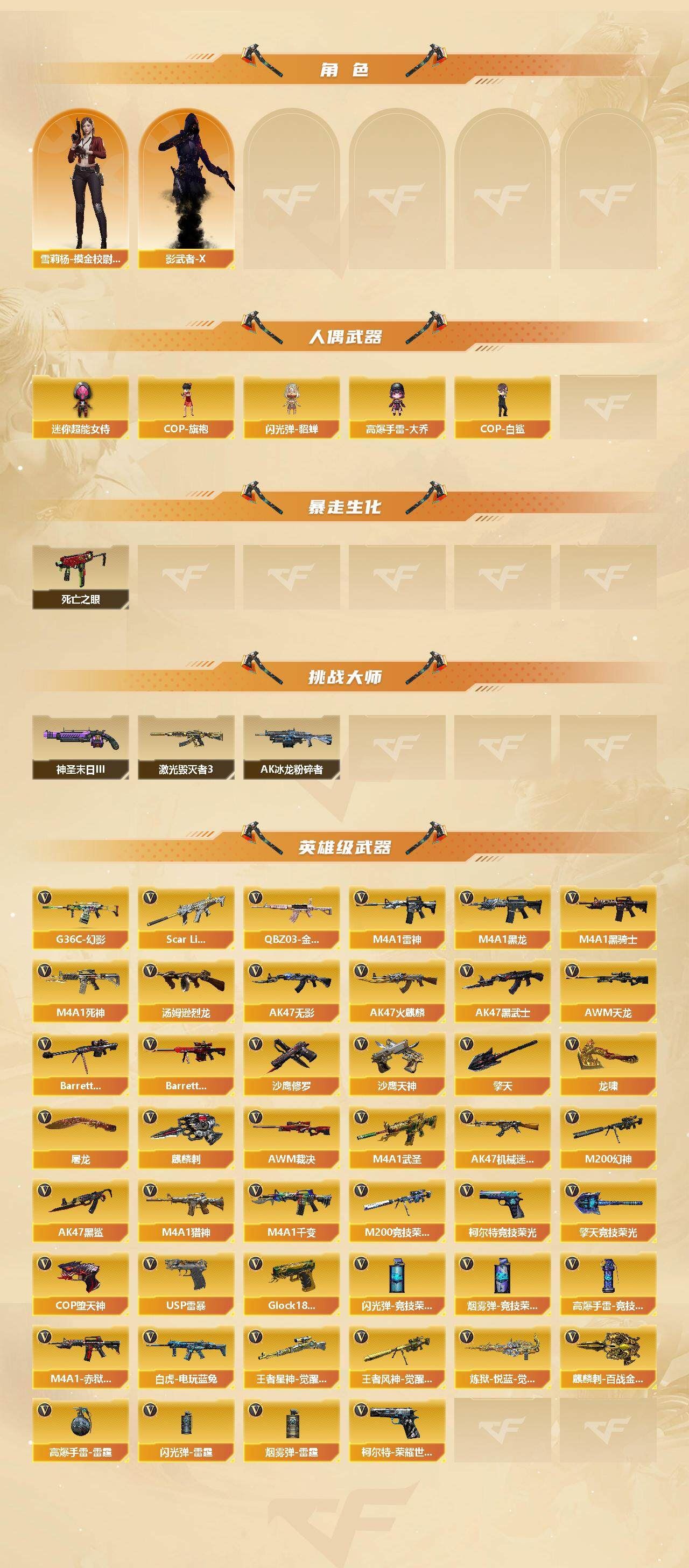 r49248 可二次 江苏一区 可排位【87V-5王者-】【传说女帝】【传说光耀】【G36C-幻影,QBZ03-金色蔷薇,Scar Light-白虎,M200-幻神,柯尔特-荣耀世冠白鲨2023,M200-竞技荣光,死亡之眼*2,白虎-电玩蓝兔,M4A1-黑骑士,汤姆逊-烈龙*3,COP-白鲨,USP-雷暴,COP-堕天神,沙鹰-修罗*4】【英雄级武器:M4A1-千变,AK47-火麒麟,M4A1-黑龙,M4A1-雷神,M4A1-黑骑士,AK47-无影,M4A1-死神,AK47-黑武士,M4A1-武圣,AK47-机械迷城*2,AK47-黑鲨,Scar Light-白虎,G36C-幻影,QBZ03-金色蔷薇,M4A1-猎神,白虎-电玩蓝兔,AWM-天龙,Barrett-毁灭,Barrett-极光,AWM-裁决,M200-幻神,M200-竞技荣光,王者星神-觉醒版,王者风神-觉醒版,炼狱-悦蓝-觉醒版,汤姆逊-烈龙*3,沙鹰-修罗*4,沙鹰-天神*2,USP-雷暴,COP-堕天神,柯尔特-荣耀世冠白鲨2023,柯尔特-竞技荣光,Glock18-武圣,屠龙*3,龙啸*2,擎天*3,麒麟刺,擎天-竞技荣光*2,麒麟刺-百战金芒,高爆手雷-雷霆*4,高爆手雷-竞技荣光*4,闪光弹-雷霆*4,闪光弹-竞技荣光*4,烟雾弹-雷霆*4,烟雾弹-竞技荣光*4,M4A1-赤狱骑士】【零,葵,瞳,魅影,炫,电竞教官-云悠悠,隼,王者-迷迭香,芳心审判者,麻雀,潘多拉-X,潜龙队-X,雪莉杨-摸金校尉,影武者-X】【M200-幻神音效卡,M4A1-黑骑士音效卡,Barrett-毁灭音效卡,绝迹语音包,白鲨语音包】【幻神-宠儿-2021MVP,幻神-CFS2022,幻神-电流骇客 皮肤,幻神-荣耀世冠白鲨2023 皮肤,白虎-电玩粉兔皮肤,QBZ03-荣耀世冠白鲨,裁决-胜者为王 皮肤,雷神-暗月,雷神-荣耀之魄,雷神-星空,M4A1-雷神-CFS 2019,雷神-传奇N9,雷神-宠儿-2019MVP,M4A1-再燃火线,火麒麟-雷神,火麒麟-盘古,火麒麟-巅峰荣耀,毁灭-暗月*2,毁灭-荣耀之怒,毁灭耀金皮肤,毁灭-星空,毁灭-BEAN-2020MVP,毁灭-魔灵皮肤,黑龙-能量核心,黑龙-暗月,黑骑士-暗月,黑骑士-地狱火,黑骑士-CFS2021,黑骑士-伏羲,无影-暗月,无影-能量核心,死神-秘银*2,天启-暗月,战神-粉色甜心皮肤,战神-流金岁月皮肤,AK47-B-常胜将军-曹操,AK47-B-常胜将军-刘备,天龙-能量核心,极光-能量核心,修罗-能量核心*2,天神-暗月*2,屠龙-荣耀之锋,轻型军用手斧-再燃火线,龙啸-青青莓果 皮肤】【人偶武器:COP-白鲨,COP-旗袍,闪光弹-貂蝉,高爆手雷-大乔,迷你超能女侍】【BS战队炫彩背包,CFS限定背包,EDG炫彩背包,R.LGD炫彩背包,WE炫彩背包,XROCK炫彩背包,战舰背包,炫彩背包,百战金芒炫彩背包,虎牙炫彩背包,超级背包*2,救世主-黑桃战神,绿色巨人,灵魂忍者,变异宝贝,迷雾幽灵,夺命之镰,防化服*2,流光-鎏金之域,流光-再燃火线,枪王排位29赛季金色流光,零-水下丽影表情,电玩兔兔表情,防弹头盔*3,防弹衣*3,C4工具钳*2,手雷包*2】各种道具详情看截图、低价出售找回包 赔、截图展示段位不代 表实际段位,如赛季更新等不可抗拒因素发生变化、时限道具不保证所剩时间、标题未写送点劵默认不送【卖号买号首选亿梦】