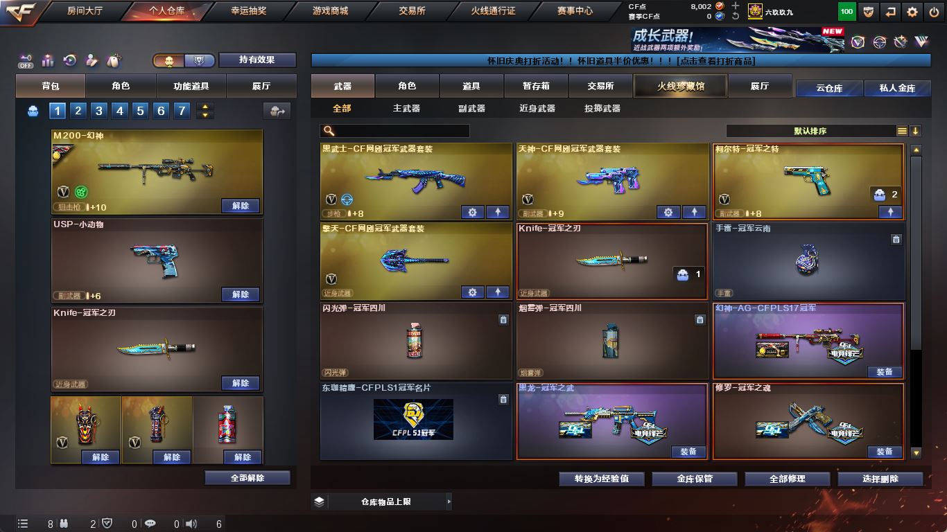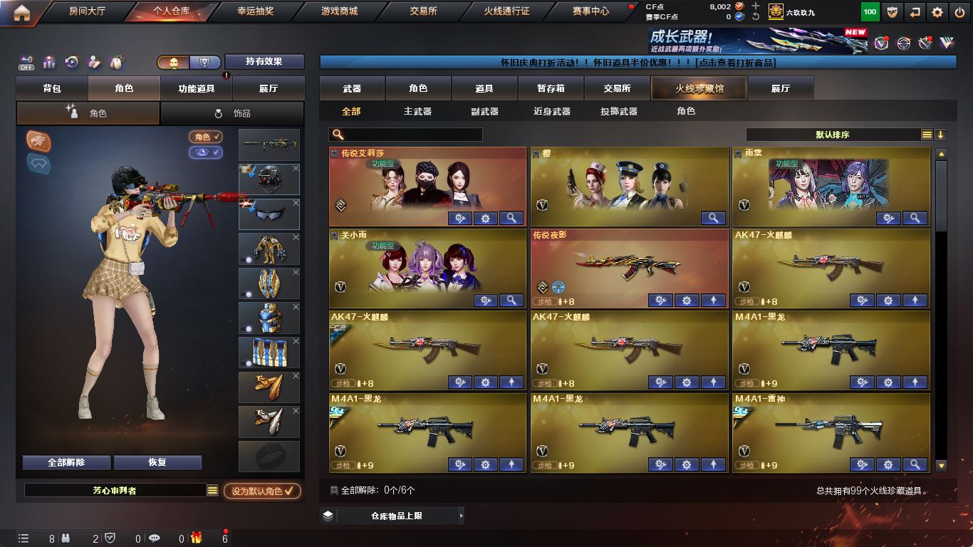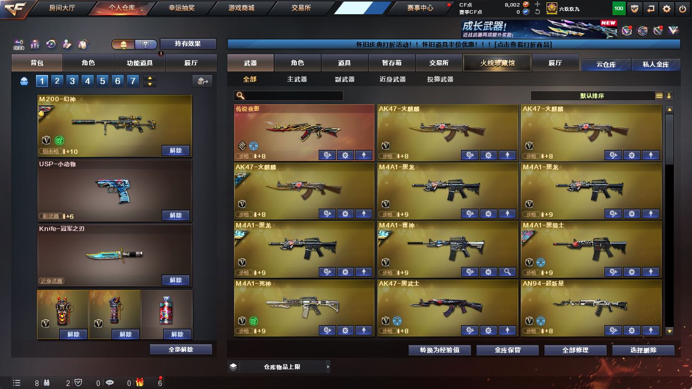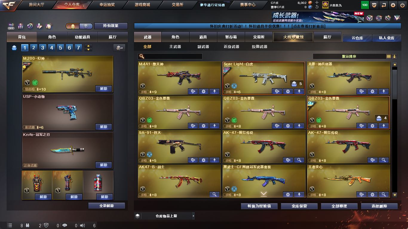 ljh 江苏一区 99v【四防传说艾莉莎】【M200-幻神+音效卡+幻神-AG-CFPLS17+冠军之特+Knife-冠军之刃】【传说夜影】【白虎之魄】【ScarLight-白虎+音效卡】【QBZ03-金色蔷薇+音效卡+冠军之薇】【生化 5盘龙 2炼狱 】【裁决+音效卡】【毁灭+音效卡+毁灭-冠军之怒】【堕天神套】【火麒麟+音效卡+火麒麟-冠军之心】【黑龙+音效卡+黑龙-冠军之武】【雷神+音效卡+雷神-冠军之魄】【黑骑士+音效卡+白马银枪】【王者炎心 王者火魄 王者之光】【死神 黑武士 超新星 烈火】【9手枪 修罗 天神*2 王者之灵*2】【14近战 屠龙*4 擎天 麒麟刺 王者之击】【手雷 堕天神*5 竞技荣光 雷霆王者*2】【角色 乔伊教练 樱】【幻神音效卡 裁决音效卡 ScarLight-白虎音效卡】----更多炫彩背包/光效/名片/武器具体看图!截图展示段位不代实际段位,赛季更新等不可抗拒因素发生变化、时限道具不保证所剩时间、标题未写送点券默认不送】【主播担保+安全至上+性价比 买号卖号只选金牌商家一左友】