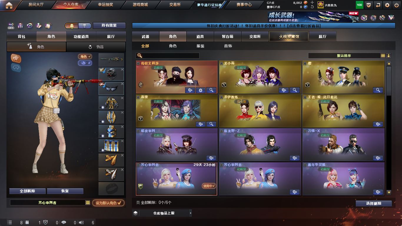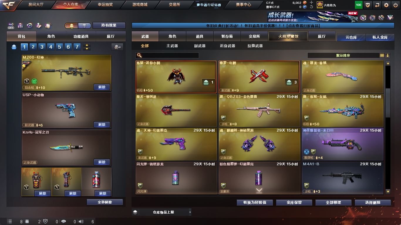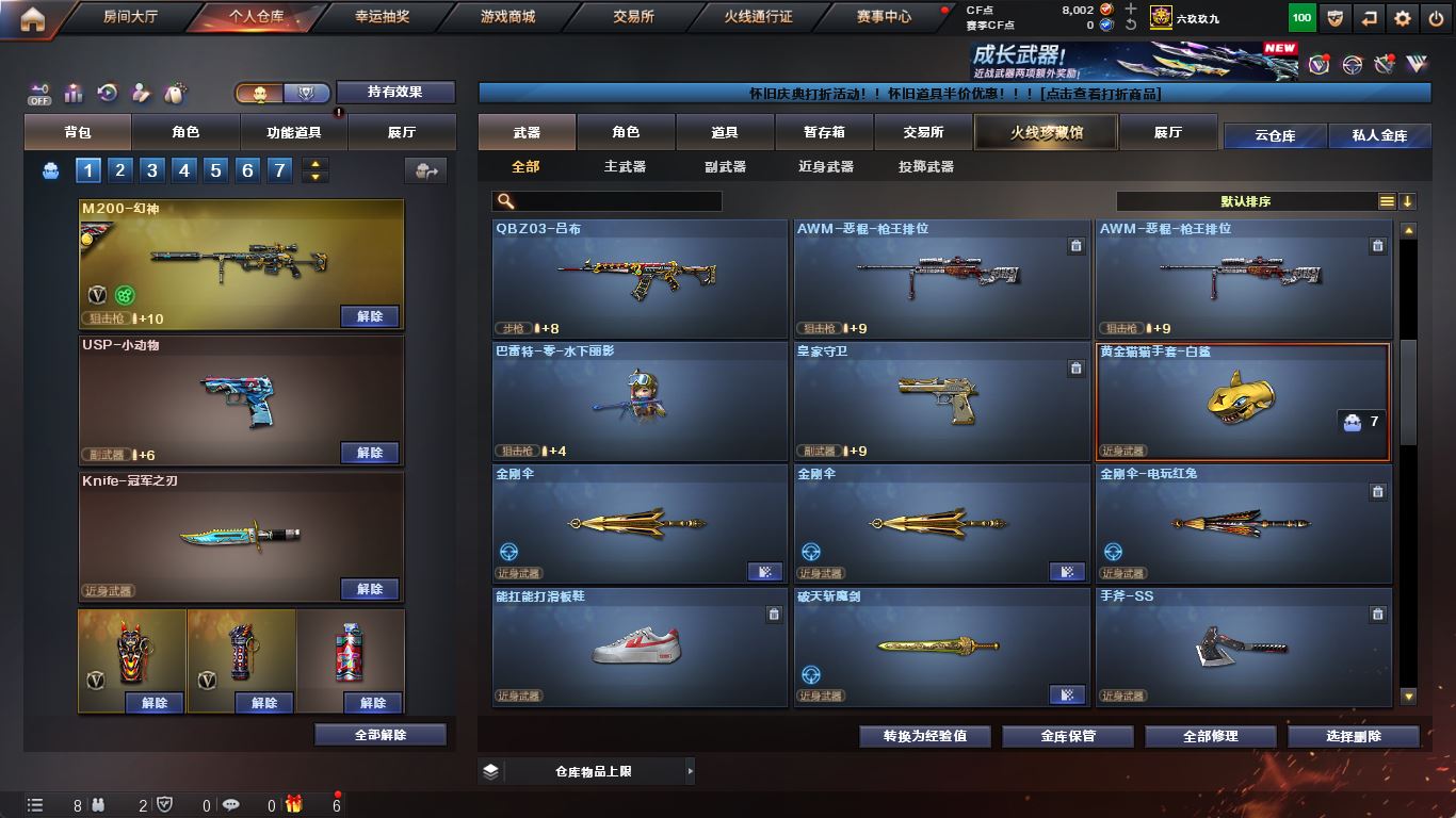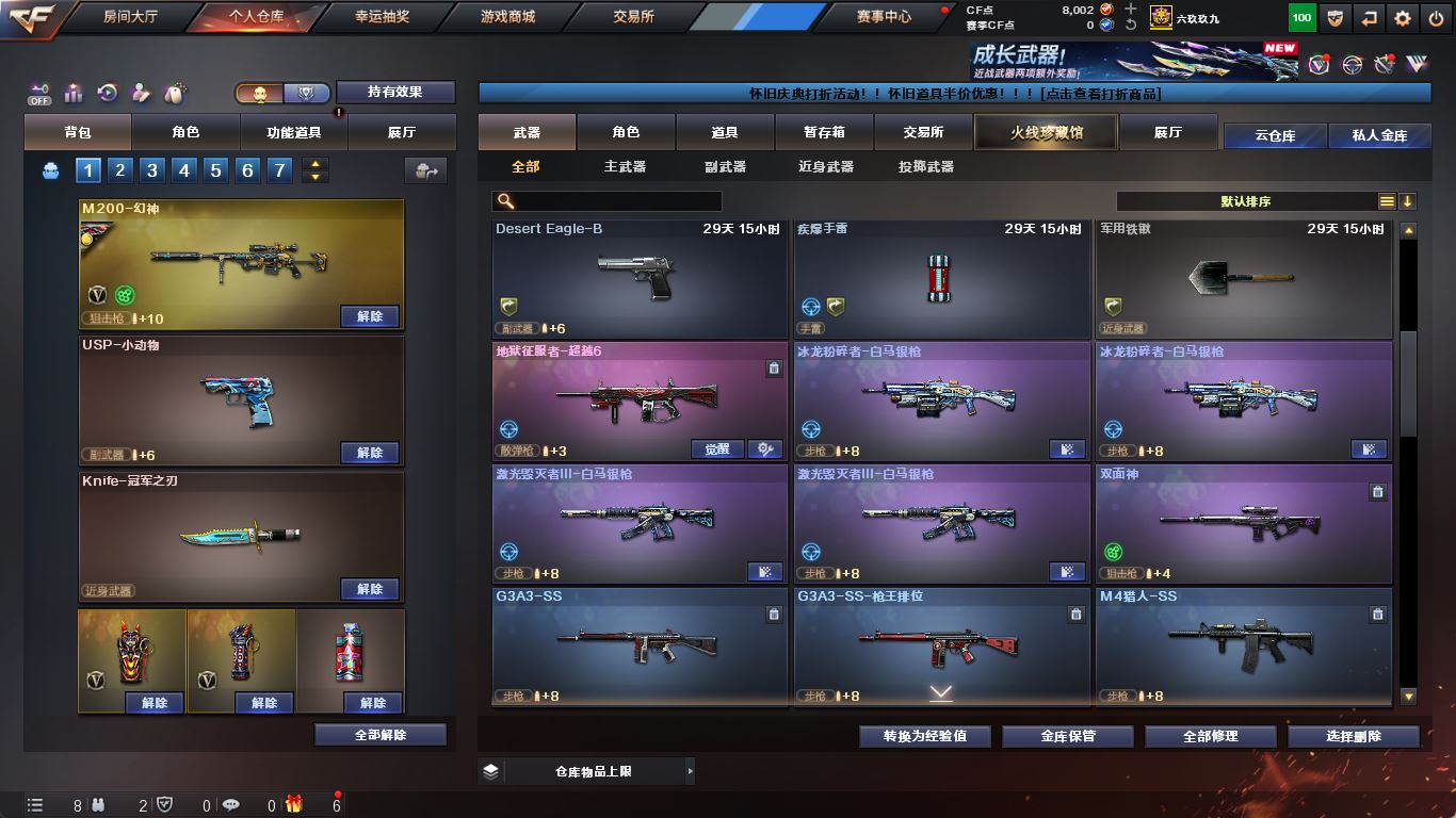 ljh 江苏一区 99v【四防传说艾莉莎】【M200-幻神+音效卡+幻神-AG-CFPLS17+冠军之特+Knife-冠军之刃】【传说夜影】【白虎之魄】【ScarLight-白虎+音效卡】【QBZ03-金色蔷薇+音效卡+冠军之薇】【生化 5盘龙 2炼狱 】【裁决+音效卡】【毁灭+音效卡+毁灭-冠军之怒】【堕天神套】【火麒麟+音效卡+火麒麟-冠军之心】【黑龙+音效卡+黑龙-冠军之武】【雷神+音效卡+雷神-冠军之魄】【黑骑士+音效卡+白马银枪】【王者炎心 王者火魄 王者之光】【死神 黑武士 超新星 烈火】【9手枪 修罗 天神*2 王者之灵*2】【14近战 屠龙*4 擎天 麒麟刺 王者之击】【手雷 堕天神*5 竞技荣光 雷霆王者*2】【角色 乔伊教练 樱】【幻神音效卡 裁决音效卡 ScarLight-白虎音效卡】----更多炫彩背包/光效/名片/武器具体看图!截图展示段位不代实际段位,赛季更新等不可抗拒因素发生变化、时限道具不保证所剩时间、标题未写送点券默认不送】【主播担保+安全至上+性价比 买号卖号只选金牌商家一左友】