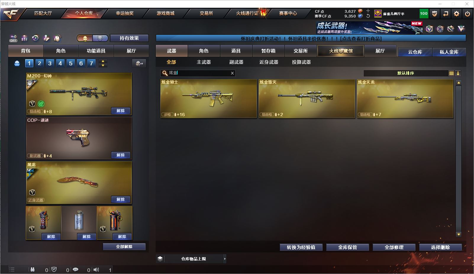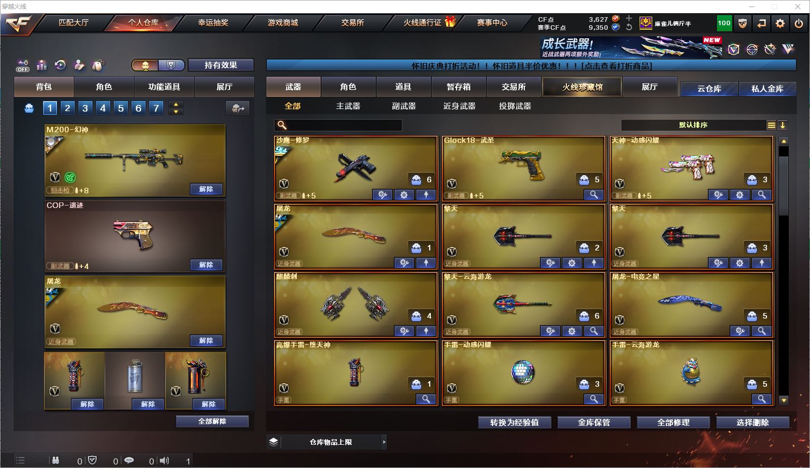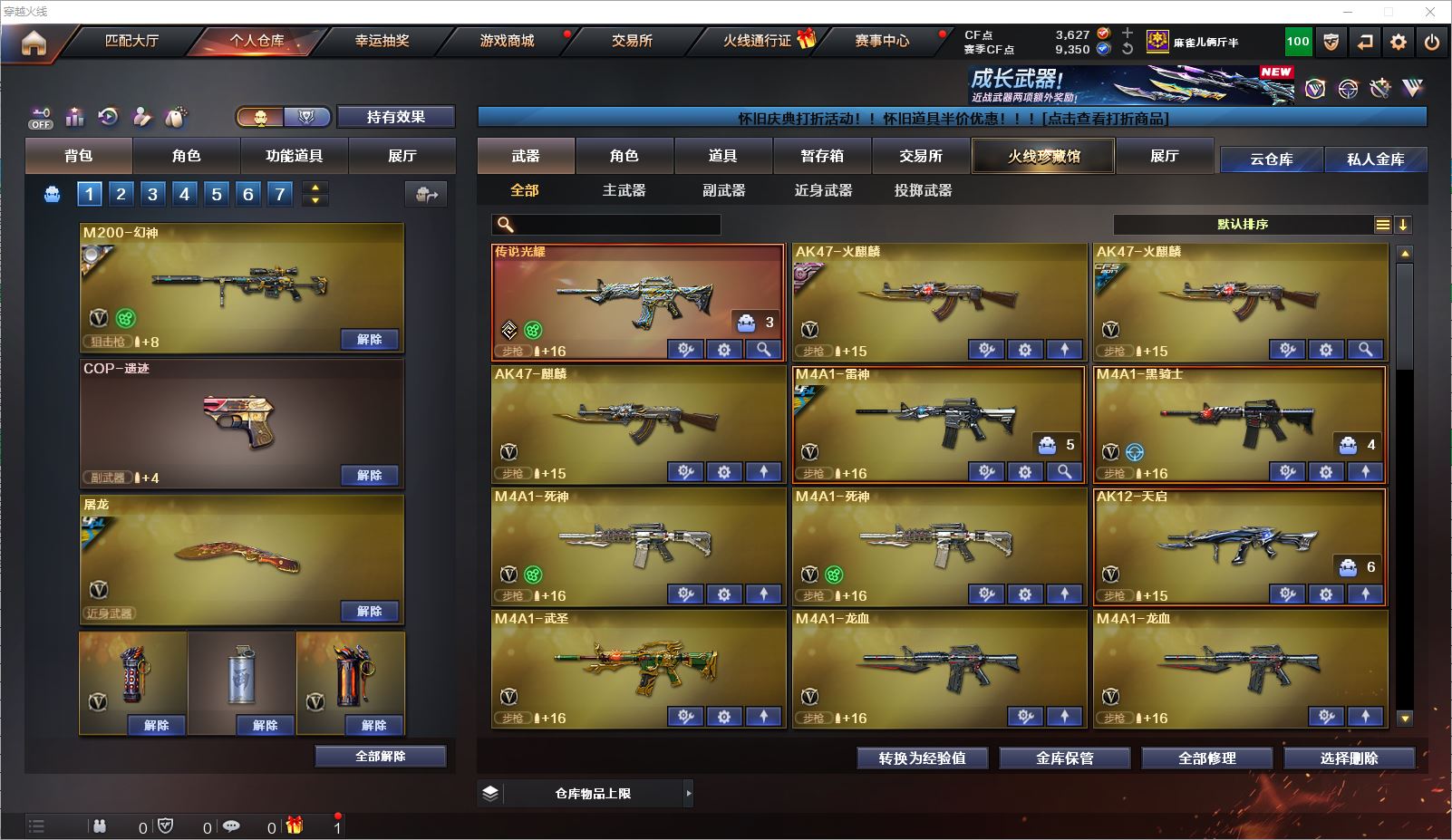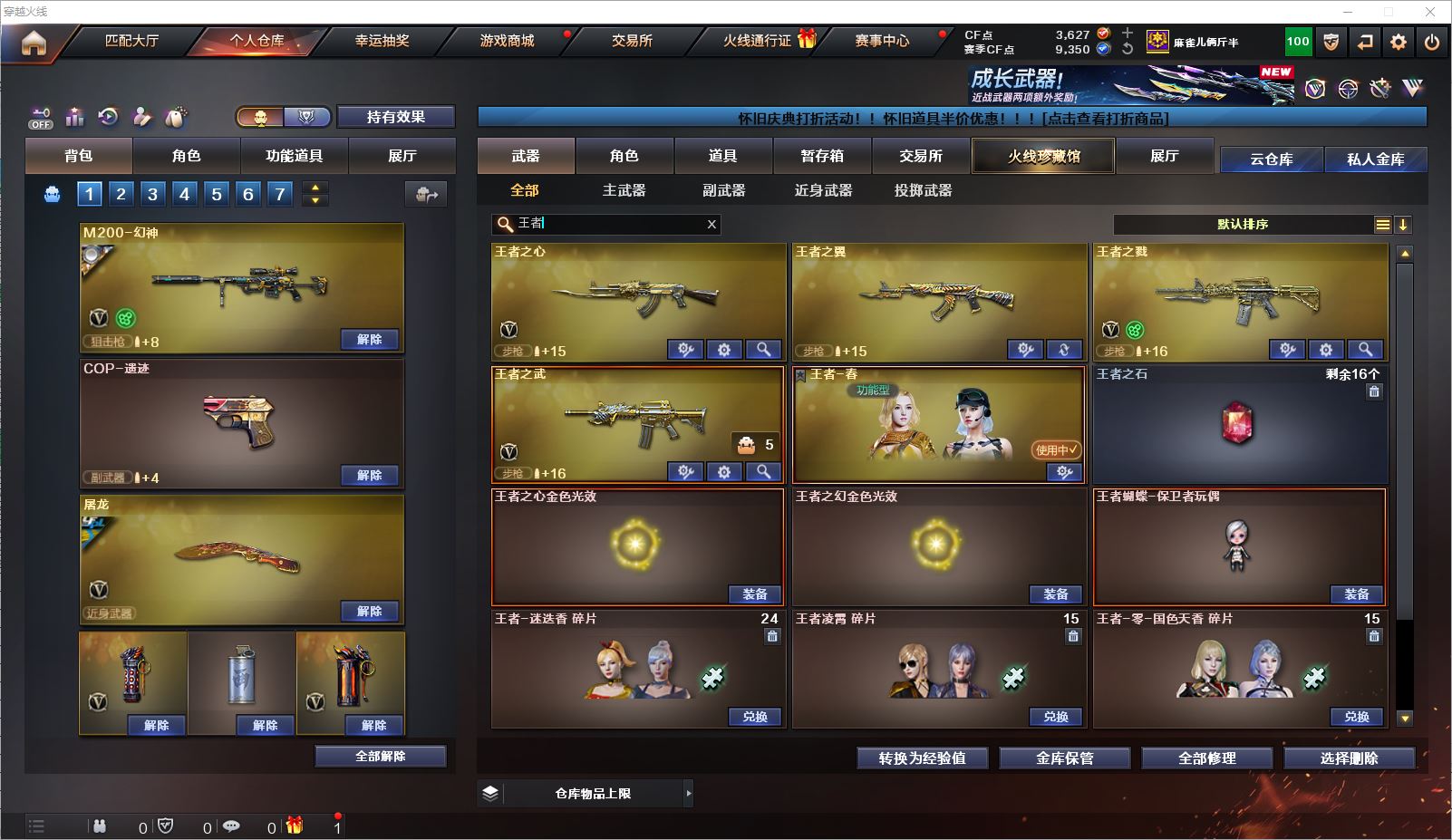 077CF4309 【云南一区】【可二次】【可排位】 49v 1传说 5王者 3炫金 【重要角色】葵/战地猎狐/幻面灵狐/王者春/铁扇公主/乔伊教练/职业选手/云海玲珑/电竞少女/兰-海滩派对/樱-青春偶像 【传说武器】传说光耀 【英雄武器】M200-幻神/Barrett-毁灭(2)/Barrett-朱雀/AWM-天龙/M4A1-雷神/M4A1-死神(2)/M4A1-龙血(2)/M4A1-黑骑士/黑骑士-海王(2)/M4A1-武圣/王者之武-觉醒版/王者之戮-觉醒版/HK417-朱雀/_Scar Light-白虎/AK12-天启/AK47-火麒麟(2)/无影-神兵利器/AK47-麒麟/王者之心-觉醒版/9A91-烈火/RPK-盘龙/汤姆逊-烈龙(3)/加特林-炼狱(2)/炼狱-悦蓝-觉醒版/天神-动感闪耀/沙鹰-修罗/Glock18-武圣/麒麟刺/擎天(2)/屠龙/手雷-动感闪耀/高爆手雷-堕天神/烟雾弹-堕天神/HK417-朱雀-电竞之星/烈龙-云海游龙/屠龙-电竞之星/擎天-云海游龙/手雷-云海游龙 【王者武器】王者之翼 【小人枪】金色蔷薇-空/KAC锯式机枪-黑桃战神/小飞碟-宇航兔兔(2)/魔能飞环-曼陀罗 【其他重要武器】炫金骑士/炫金天龙/炫金毁灭【重要武器皮肤】幻神-动感闪耀 皮肤/毁灭-英雄计划 皮肤/毁灭-星空/火麒麟-CFSTAR/火麒麟-华夏之心/火麒麟-心动糖果/AK47-黑武士-361/M4A1-千变-孔明皮肤/雷神-荣耀之魄/雷神-虎将/雷神-烈虎皮肤/黑骑士-幻能朋克皮肤/HK417-朱雀-武当/烈龙-星空/修罗-冠军之魂/屠龙-荣耀之锋 【重要音效卡】M4A1-雷神音效卡/M4A1-黑骑士音效卡/AWM-昌龙-怀旧音效卡 等等装备和皮肤~ 截图展示段位不代表实际段位,如赛季更新等不可抗拒因素发生变化、时限道具不保证所剩时间,其余道具看截图或咨询客服 【小述账号 安全无忧】