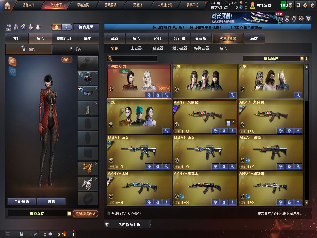 CZ 【找回包赔】江苏一区 78V 【亮点解析 东部传说女帝 幻神三件套4热门皮肤 裁决+音效卡】【传说女帝】【热门武器 【M200幻神+幻神音效卡+冠军之幻+巅峰荣耀+CFS2022+黄忠皮肤】【M200竞技荣光套】【98K星神】【SCAR白虎】【QBZ金色蔷薇+卡+冠军之薇皮肤】【4烈龙】【火麒麟+卡+冠军之心皮肤】【雷神+卡+冠军之魄+荣耀之魄皮肤】【黑骑士+卡+冠军之势皮肤】【青龙】【毁灭+卡+荣耀之怒+冠军之怒皮肤】【裁决+卡】【王者武器 王者冰魄 王者之幻 王者之魄 王者之光 王者之决 王者之怒 】【手枪 冠军之特*2 修罗 柯尔特-竞技荣光】【刀具 冠军之刃*2 屠龙 擎天 麒麟刺 王者之锋】【手雷套 雷霆雷*4 竞技荣光雷*2】【小人枪 雷神精英刀锋 火麒麟绝迹 黄金猫猫手套-白鲨】【四防角色 王者春】【超级背包 炫彩背包】【音效卡 幻神音效卡 毁灭音效卡 白虎音效卡 火麒麟音效卡 雷神音效卡 黑骑士音效卡 金色蔷薇音效卡 裁决音效卡】----更多炫彩背包/光效/名片/武器具体看图!截图展示段位不代实际段位,赛季更新等不可抗拒因素发生变化、时限道具不保证所剩时间、标题未写送点卷默认不送】【主播担保+安全至上+性价比 买号卖号只选金牌商家一左友】