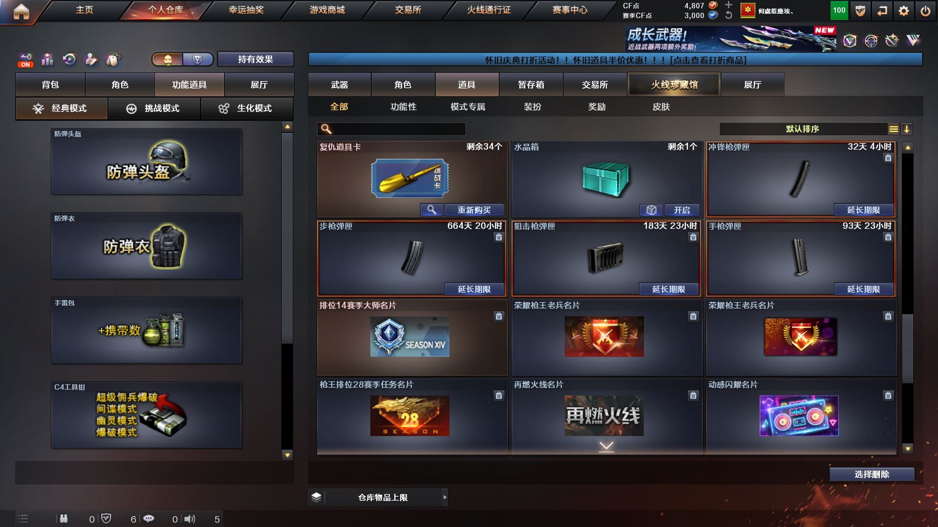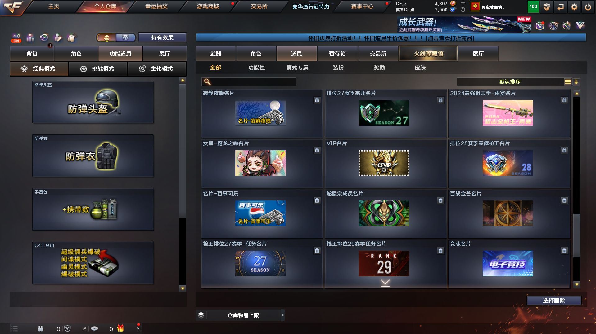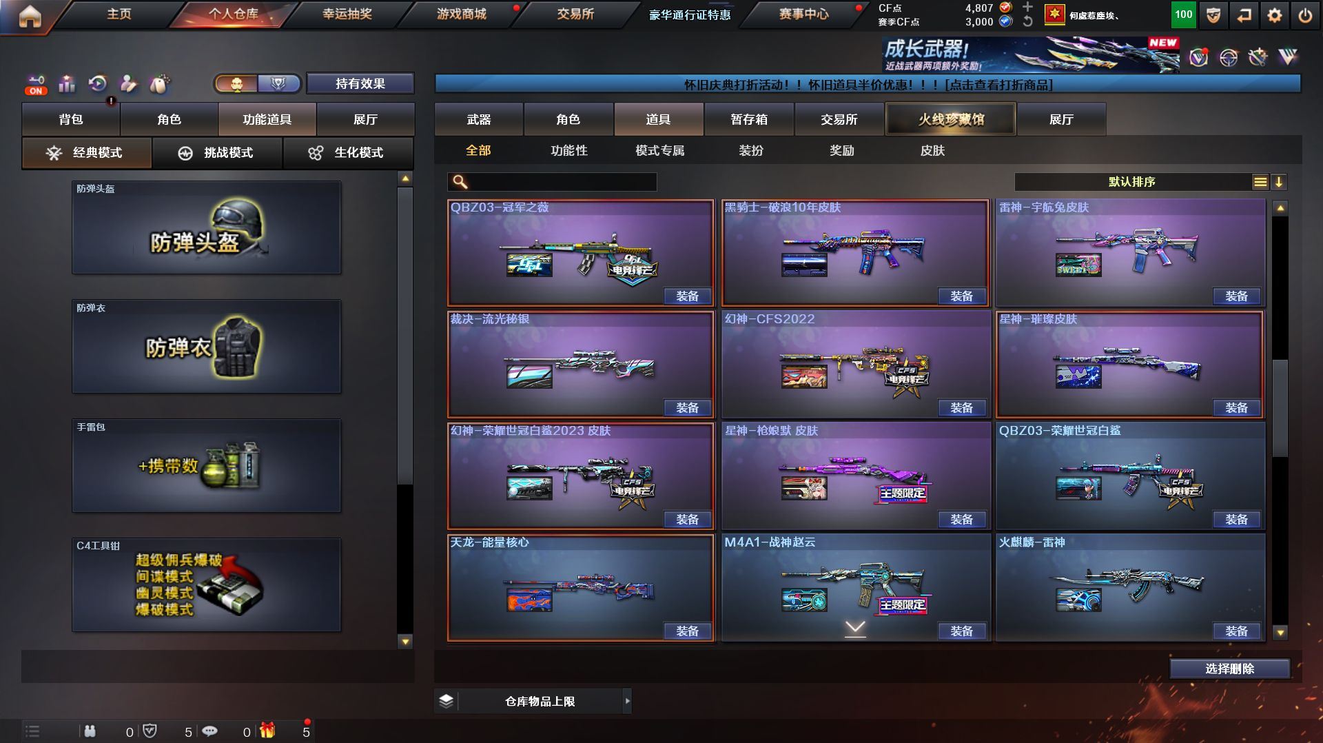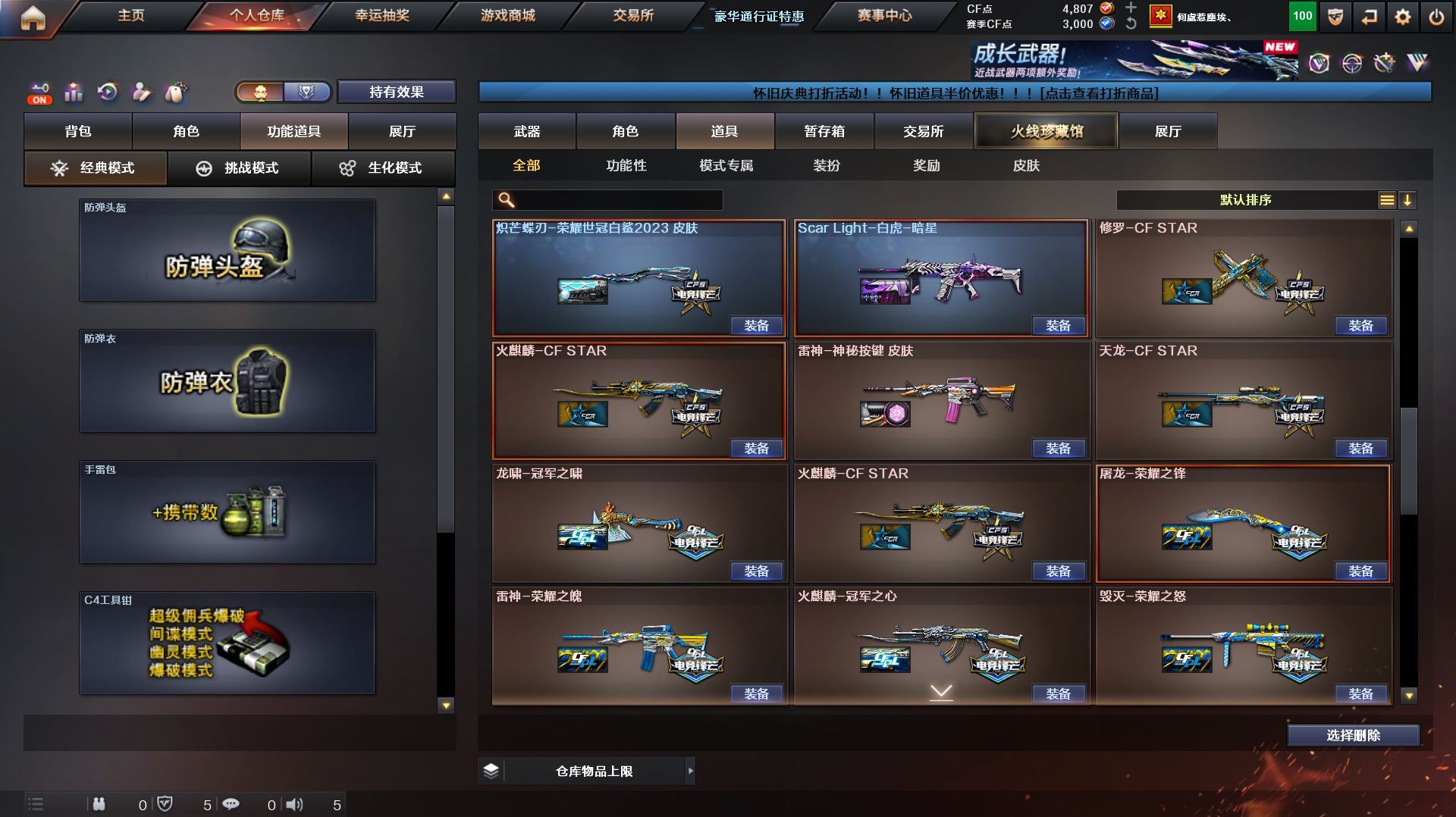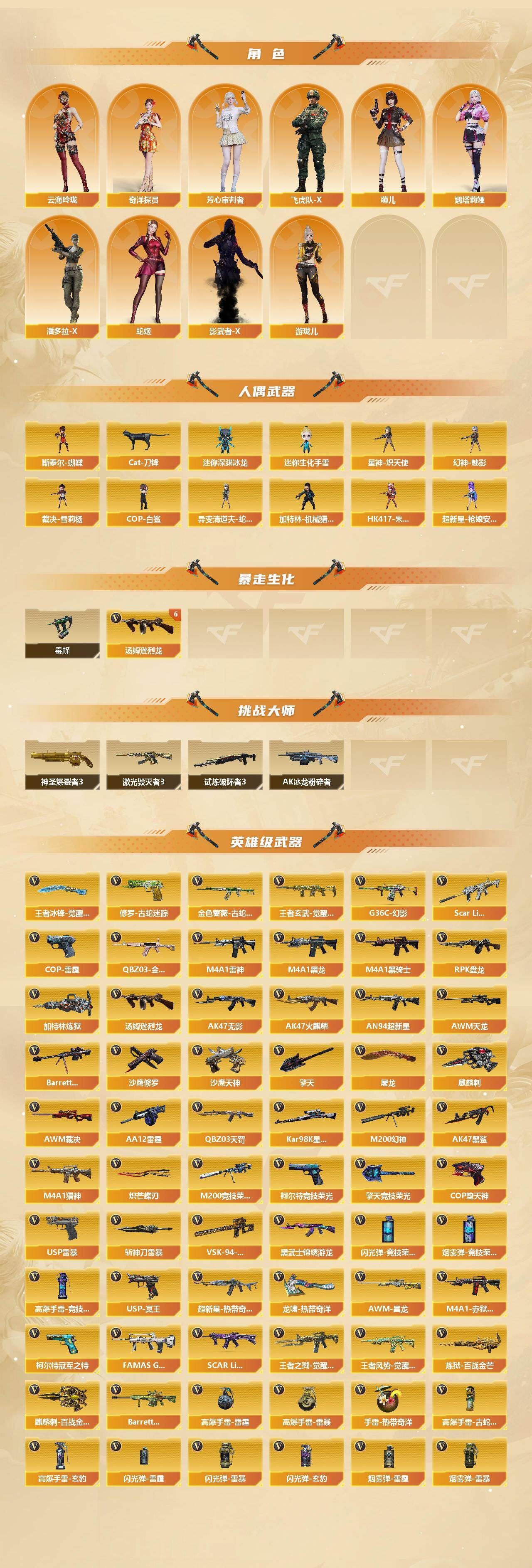 r49793 可二次 湖南一区 可排位【158V】【传说星骇,传说影煞】【传说圣谕,传说幽瞳,传说幽冥】【G36C-幻影,QBZ03-金色蔷薇,Scar Light-白虎,M200-幻神*2,柯尔特-荣耀世冠白鲨2023*2,金色蔷薇-古蛇迷踪,修罗-古蛇迷踪,M200-竞技荣光,凤吟之魄,柯尔特-冠军之特,Kar98K-星神,Cat-刀锋,毒蜂,M4A1-黑骑士*2,汤姆逊-烈龙*6,RPK-盘龙*4,加特林-炼狱,斯泰尔-蝴蝶,幻神-魅影,裁决-雪莉杨,COP-白鲨*2,USP-雷暴,COP-堕天神,沙鹰-修罗*4,炽芒蝶刃*2,炽芒蝶刃-荣耀世冠白鲨2023 皮肤,王者凤吟,凤吟之魄,王者凌虎】【AK47-火麒麟,M4A1-黑龙,M4A1-雷神,M4A1-黑骑士*2,Scar Light-白虎,QBZ03-天罚,G36C-幻影,FAMAS G2-天戎,SCAR Light-玄豹,QBZ03-金色蔷薇,M4A1-猎神,王者之戮-觉醒版,王者风势-觉醒版,王者玄武-觉醒版,AWM-天龙,Barrett-毁灭*2,AWM-裁决,M200-幻神*2,Kar98K-星神,M200-竞技荣光,VSK-94-金蚀,RPK-盘龙*4,加特林-炼狱,炼狱-百战金芒,汤姆逊-烈龙*6,USP-雷暴,COP-雷霆,COP-堕天神,柯尔特-冠军之特,柯尔特-荣耀世冠白鲨2023*2,柯尔特-无冕之王,柯尔特-竞技荣光,USP-冥王*2,修罗-古蛇迷踪,屠龙*2,擎天,麒麟刺,擎天-竞技荣光,炽芒蝶刃*2】【M200-幻神音效卡,M4A1-雷神音效卡,M4A1-黑骑士音效卡,Barrett-毁灭音效卡,AWM-裁决音效卡,Scar Light-白虎音效卡,Kar98K-星神音效卡,Barrett-碧霄极光音效卡,白虎-盛典舞曲音效卡,炼狱-百战金芒-庆典舞曲音效卡】【幻神-CFS2022,幻神-电流骇客 皮肤,幻神-荣耀世冠白鲨2023 皮肤,幻神-荣耀世冠EP 皮肤,Scar Light-白虎-暗星,QBZ03-冠军之薇,QBZ03-荣耀世冠白鲨,金色蔷薇-量子蔷薇 皮肤,QBZ03-荣耀世冠EP 皮肤,裁决-流光秘银,星神-璀璨皮肤,星神-枪娘默 皮肤,雷神-荣耀之魄,M4A1-战神赵云,雷神-宇航兔皮肤,M4A1-再燃火线,雷神-神秘按键 皮肤,火麒麟-冠军之心,毁灭-荣耀之怒,毁灭-CFS2020,炽芒蝶刃-荣耀世冠白鲨2023 】【零,炫,雨棠,电竞教官-云悠悠,月兔特工,研,荆棘,战地猎狐,蛇隐宗,奇洋探员,乔伊教练,云海玲珑】【人偶武器:幻神-魅影,COP-白鲨*2,裁决-雪莉杨,星神-炽天使,HK417-朱雀-枪娘菲,超新星-枪娘安琪儿,异变清道夫-蛇影双骄,斯泰尔-蝴蝶】【BS战队炫彩背包,云山科技背包,亚洲杯纪念炫彩背包,古蛇迷踪炫彩背包,奇洋探员-海龟背包,女皇终结者-背包,热带奇洋炫彩背包,百战金芒炫彩背包,裂空之翼背包-金色,超级背包,超核名片,女皇终结者-魔龙之吻,救世主-黑桃战神,黄金生化钩,绿色巨人,灵魂忍者,迷雾幽灵,生化弹匣,夺命之镰,防化服*3,星辰流光-枪王排位,流光-鎏金之域,枪王排位28赛季金色流光,枪王排位29赛季金色流光,语音特效-盛典烟火,古蛇迷踪打击特效,蛇隐宗表情,萌萌小葵表情,热带奇洋表情,循环实验表情,EP战队击杀图标,C4-黑曜,防弹头盔*5,防弹衣*5,C4工具钳*4,手雷包*4】各种道具详情看截图、低价出售找回包 赔、截图展示段位不代 表实际段位,如赛季更新等不可抗拒因素发生变化、时限道具不保证所剩时间、标题未写送点劵默认不送【卖号买号首选亿梦】