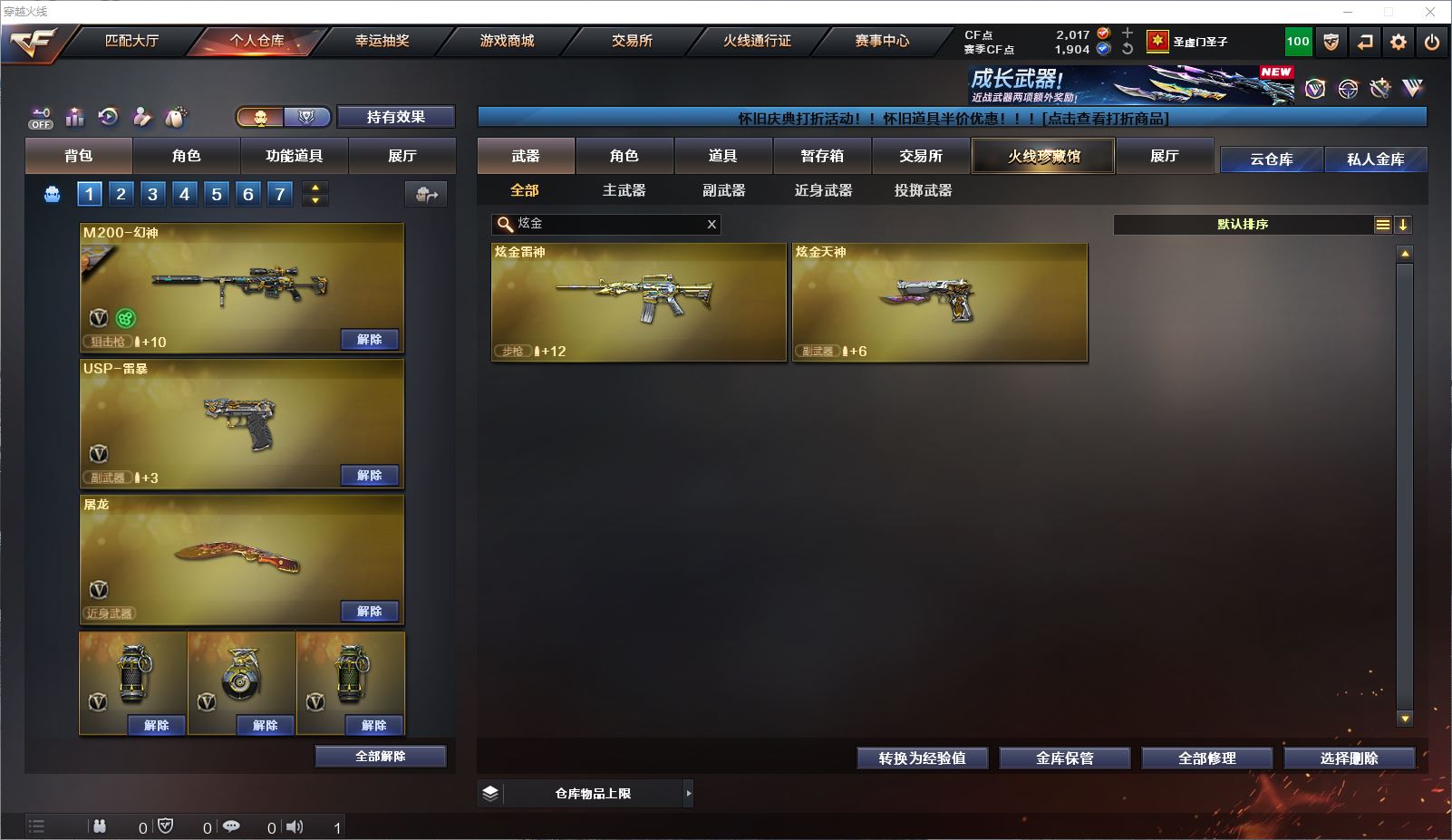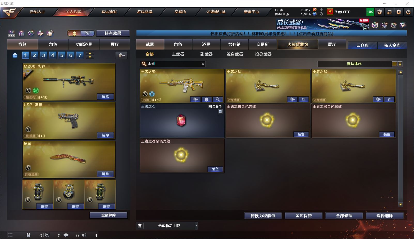 077CF4339 【广东一区】【可二次】【可排位】 76v 3王者 2炫金 【重要角色】审判者/幻面灵狐/葵-阿尔法武装/铁扇公主/乔伊教练/空 【英雄武器】M200-幻神(3)/Barrett-毁灭(2)/Kar98K-星神/AWM-天龙/M4A1-雷神/M4A1-死神/M4A1-黑龙/M4A1-龙血(4)/M4A1-黑骑士/王者之势-觉醒版/AK47-火麒麟/AK47-黑鲨(3)/AK47-黑武士(3)/RPK-盘龙(4)/汤姆逊-烈龙(6)/加特林-炼狱(6)/沙鹰-天神/沙鹰-修罗(3)/USP-雷暴/麒麟刺/龙啸(6)/擎天/屠龙(5)/斩神刀-雷暴/高爆手雷-雷暴(4)/烟雾弹-雷暴(4)/闪光弹-雷暴(4)/HK417-朱雀-电竞之星/QBZ03-独角-III/机械迷城-穹宇/Barrett-碧霄极光/屠龙-电竞之星/麒麟刺-百战金芒 【王者武器】独角之刃/王者之啸(2) 【小人枪】火麒麟-零·纪元/天龙-曼陀罗/M82A1-水枪-不败狙神/AWM-灵狐-15周年嘉年华/巴雷特-赏金猎人/斯泰尔-蝴蝶/迷你地狱终结者 【其他重要武器】炫金雷神/炫金天神【重要武器皮肤】M200-幻神-黄忠皮肤/毁灭-英雄计划 皮肤/毁灭-虹光风暴 皮肤/毁灭-百城浙江 皮肤/天龙-CFSTAR/火麒麟-CFSTAR/火麒麟-轻羽皮肤/雷神-荣耀之魄/炼狱- 迷彩 皮肤/修罗-CFSTAR/修罗-能量核心 【重要音效卡】M4A1-雷神音效卡/Barrett-毁灭音效卡/Barrett-碧霄极光音效卡 等等装备和皮肤~ 截图展示段位不代表实际段位,如赛季更新等不可抗拒因素发生变化、时限道具不保证所剩时间,其余道具看截图或咨询客服 【小述账号 安全无忧】
