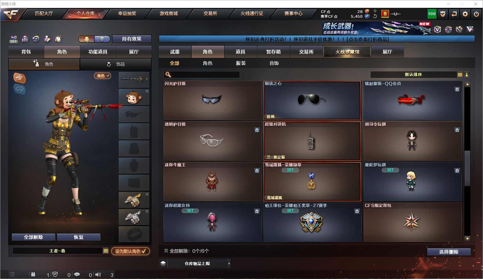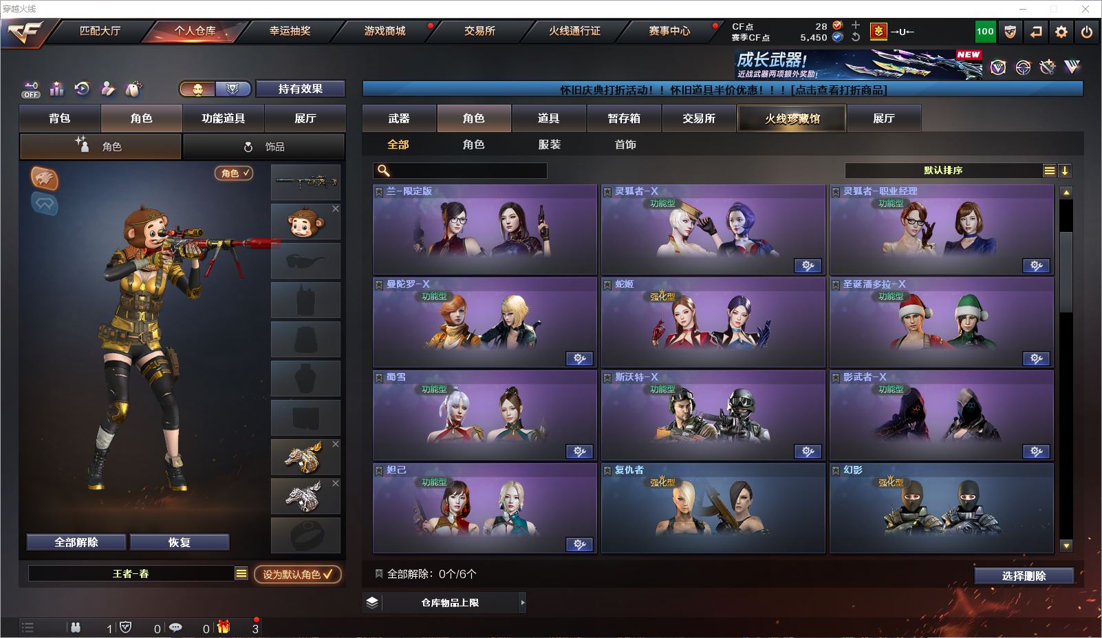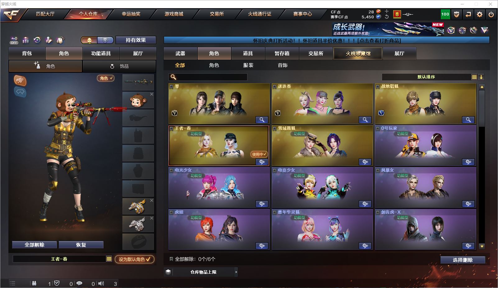 077CF4345 【四川一区】【可二次】【可排位】 46v 7王者 1炫金 【西部精品小号】【幻神带皮+星神+裁决三件套】【生化6烈+蝴蝶】 【重要角色】零/迷迭香/战地猎狐/王者春/雪域霜狐/电竞少女/灵狐者-职业经理 【英雄武器】M200-幻神/Barrett-毁灭/Barrett-极光/Barrett-暗月传说/Kar98K-星神/AWM-天龙(2)/AWM-裁决/王者之决-觉醒版/M4A1-雷神/M4A1-黑龙/M4A1-龙血(3)/M4A1-黑骑士/黑骑士-海王(2)/王者之戮-觉醒版/AK12-天启/AK47-黑鲨/AK-47-猩红传说/AK47-B-身先士卒/AK47-B-常胜将军/AK47-B-战士/QBZ-03-王者蔷薇-觉醒版/汤姆逊-烈龙(6)/沙鹰-修罗/麒麟刺/龙啸(3)/屠龙/高爆手雷-幻灵/烟雾弹-竞技荣光/烟雾弹-雷霆王者-觉醒版/闪光弹-竞技荣光/闪光弹-雷霆王者-觉醒版/死神-雪域霜狐 【王者武器】王者冰魄/王者之心/王者之势/高爆手雷-雷霆王者 【小人枪】AWM-灵狐-15周年嘉年华/KAC锯式机枪-黑桃战神/斯泰尔-蝴蝶/魔能飞环-曼陀罗(2)/迷你牛牛/冰火魔兽 【其他重要武器】炫金武士【重要武器皮肤】幻神-AG-CFPLS17冠军/天龙-CFSTAR/裁决-巅峰荣耀 皮肤/火麒麟-CFSTAR/火麒麟-华夏之心/AK47-B-常胜将军-刘备/AK47-B-常胜将军-孙权/AK47-B-常胜将军-曹操/M4A1-千变-孔明皮肤/雷神-虎将/雷神-暗月/雷神-烈虎皮肤/黑骑士-地狱火/黑龙-暗月/QBZ03-AG-CFPLS19冠军/战神-流金岁月皮肤/战神-紫绶金章皮肤 【重要音效卡】M4A1-雷神音效卡/M4A1-黑骑士音效卡/死神-雪域霜狐-怀旧音效卡/AWM-裁决音效卡/Barrett-极光音效卡 等等装备和皮肤~ 截图展示段位不代表实际段位,如赛季更新等不可抗拒因素发生变化、时限道具不保证所剩时间,其余道具看截图或咨询客服 【小述账号 安全无忧】