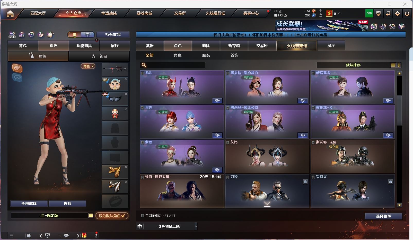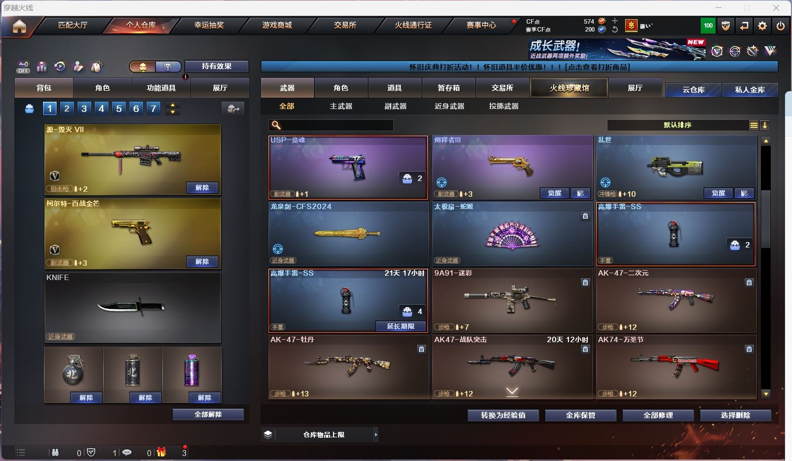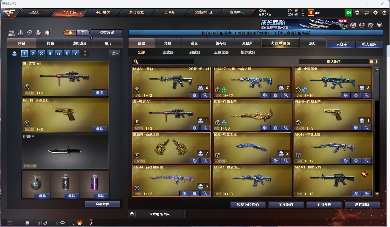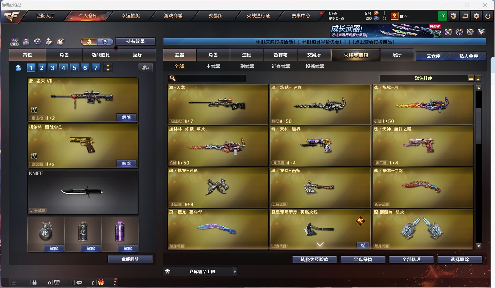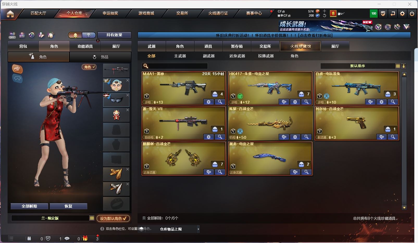 hmc AK030587山西一区7v【白虎电玩 】【武器:朱雀 炼狱 】【手枪:柯尔特百战金芒】【刀具:麒麟刺 屠龙】【角色:不败狙神 零纪元 幻面灵狐 】----更多炫彩背包/光效/名片/武器具体看图!截图展示段位不代实际段位,赛季更新等不可抗拒因素发生变化、时限道具不保证所剩时间、标题未写送点券默认不送】【主播担保+安全至上+性价比 买号卖号只选金牌商家一左友】
